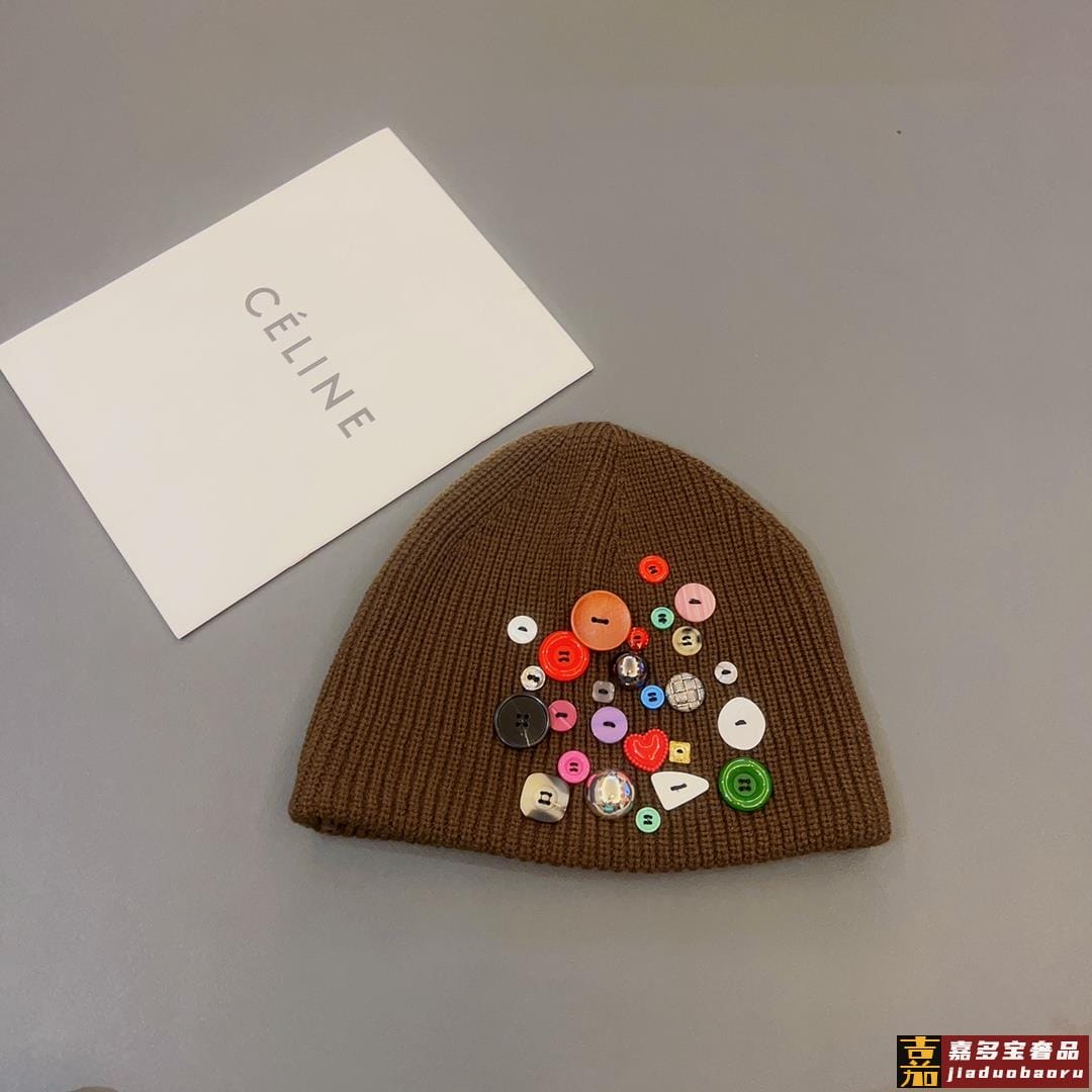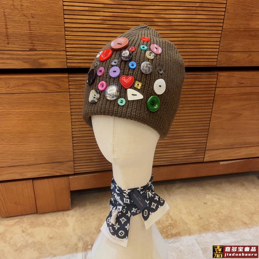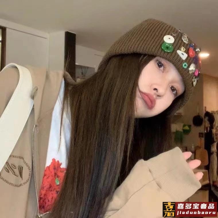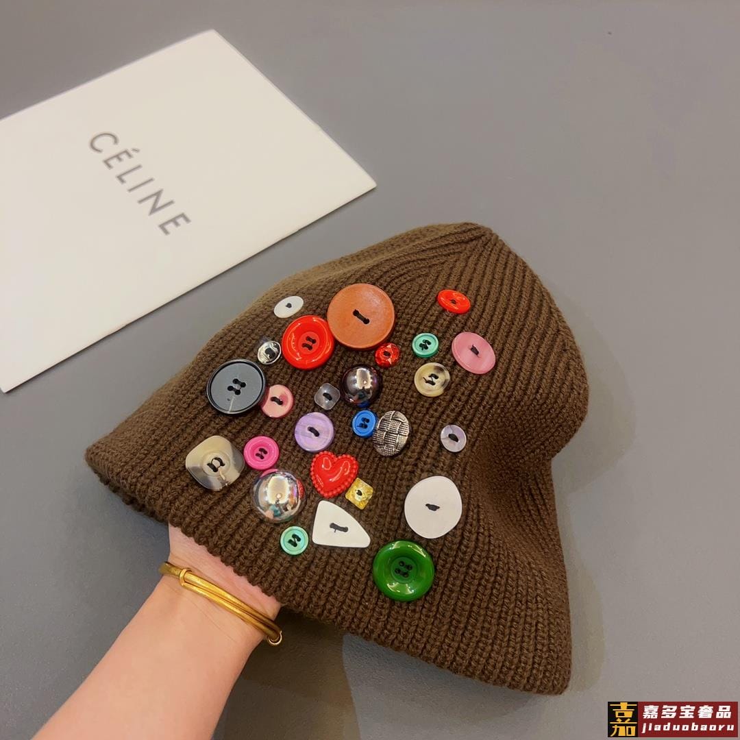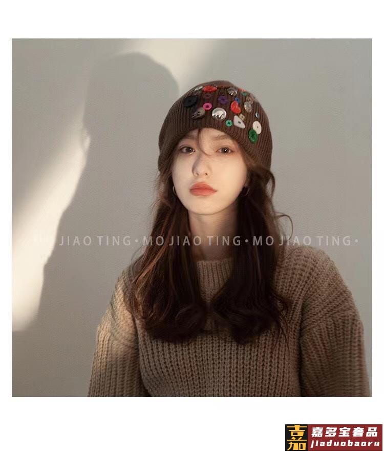 香奈儿纯手工五彩纽扣缝制针织帽秋冬必备帽子之一设计感十足每个