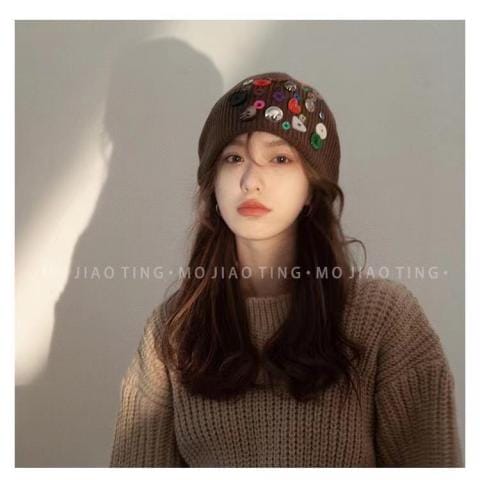 香奈儿纯手工五彩纽扣缝制针织帽秋冬必备帽子之一设计感十足每个