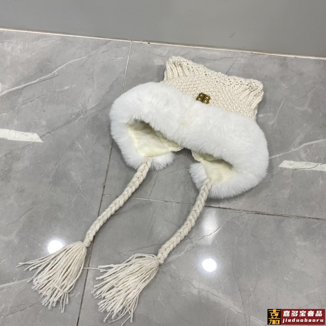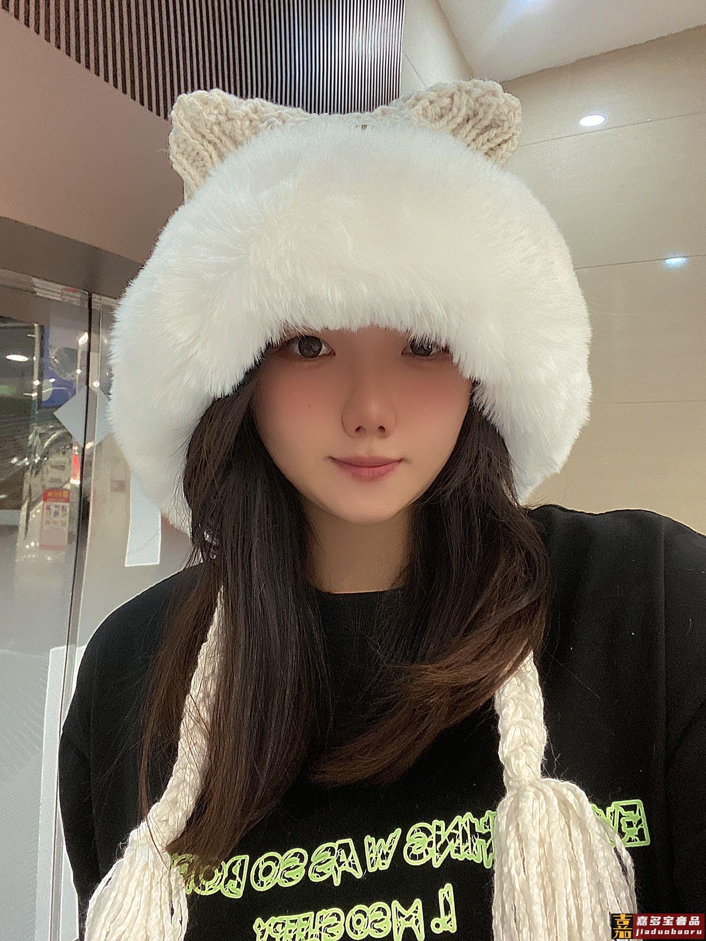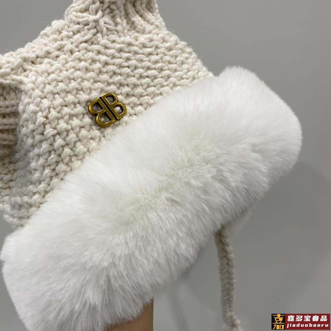 巴黎世家年秋冬针织冷帽护耳帽超嗲超百搭黑米两色