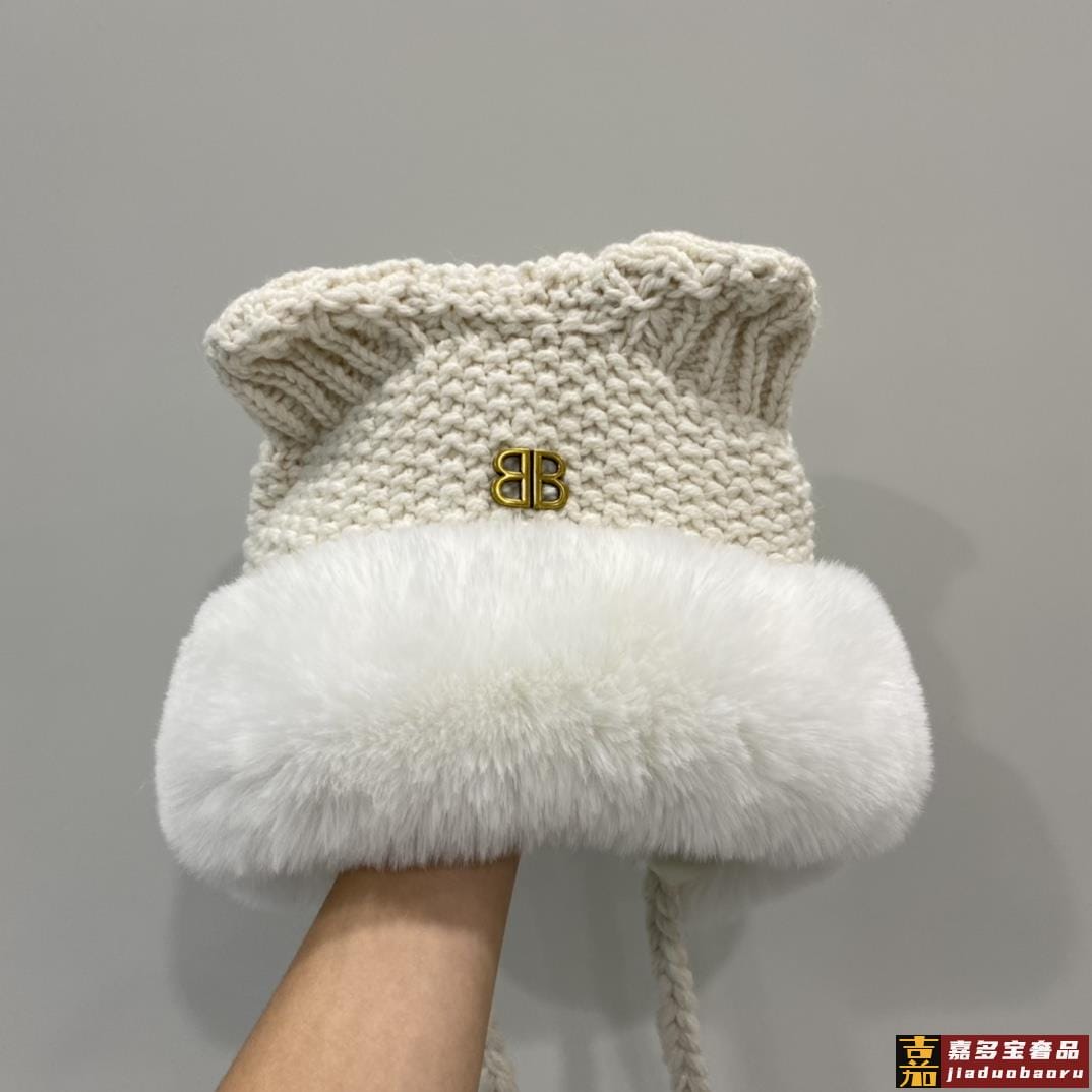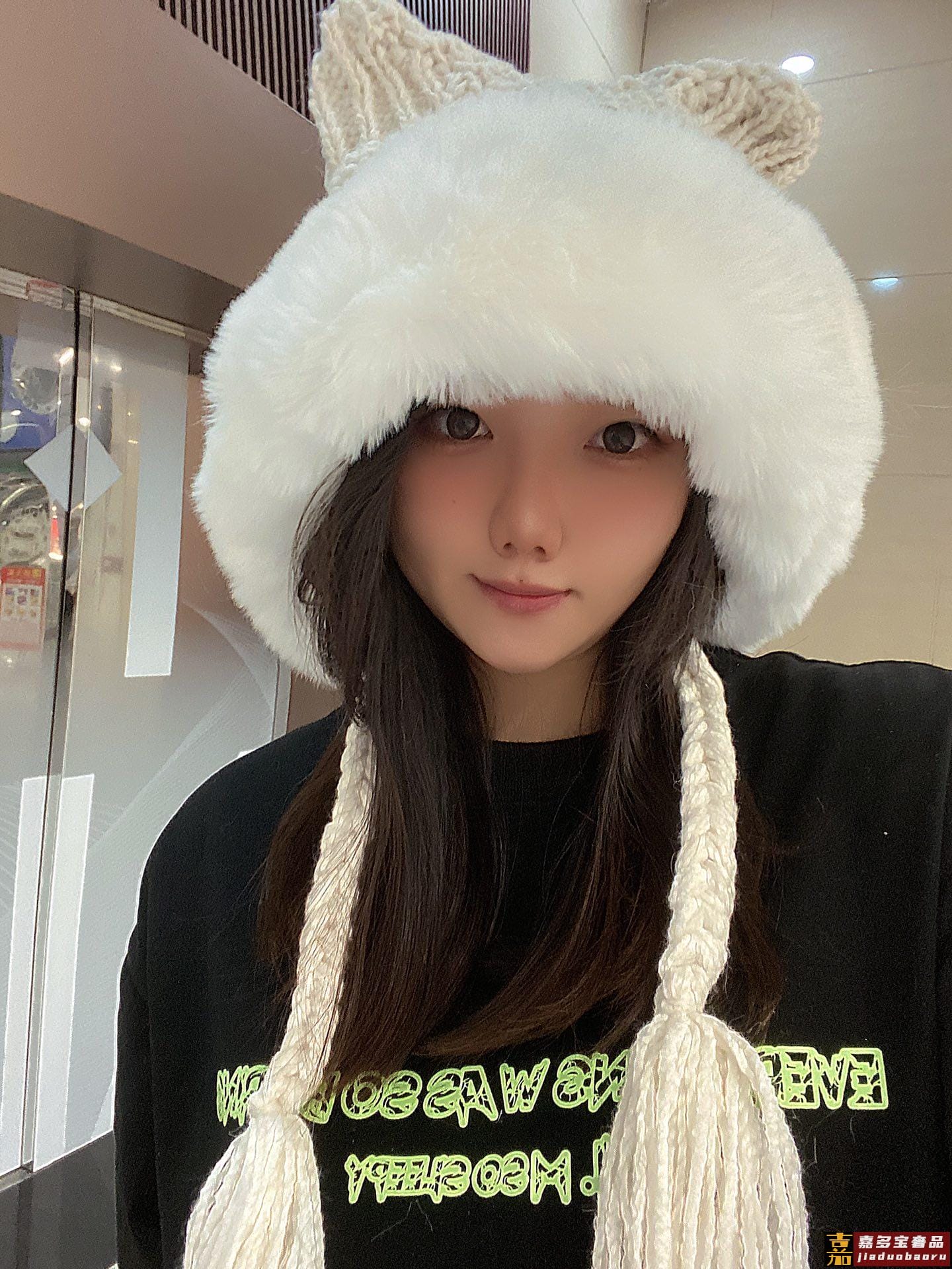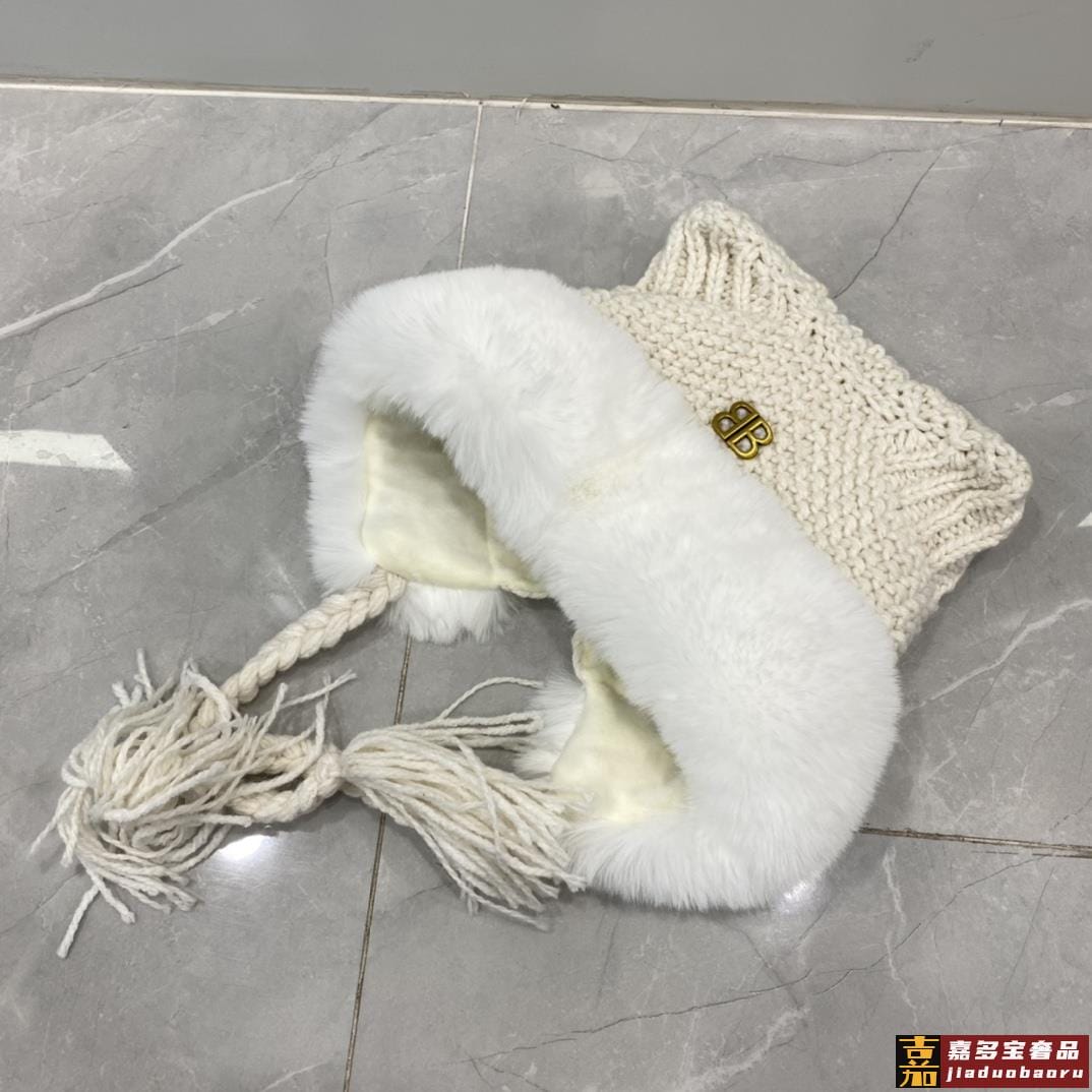 巴黎世家年秋冬针织冷帽护耳帽超嗲超百搭黑米两色