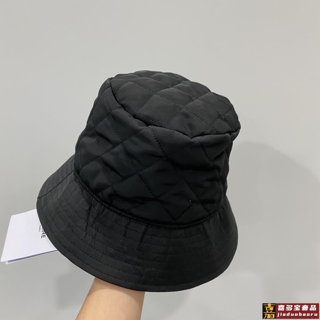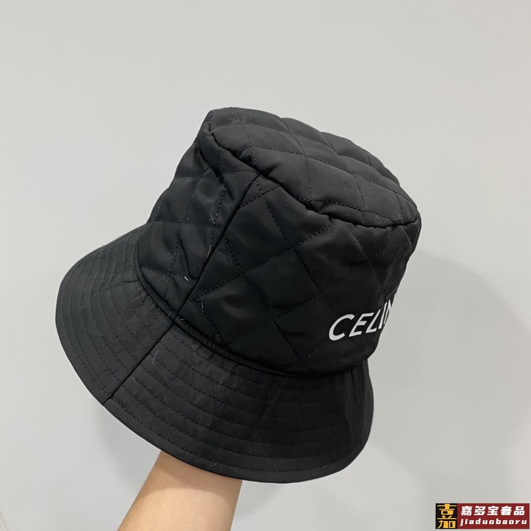 赛琳秋季新款桶帽菱格渔夫帽简约百搭白色黑色头围