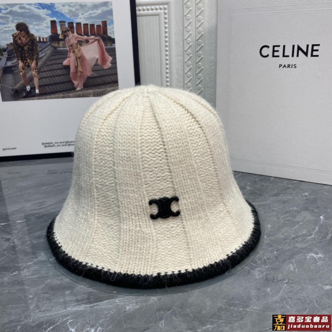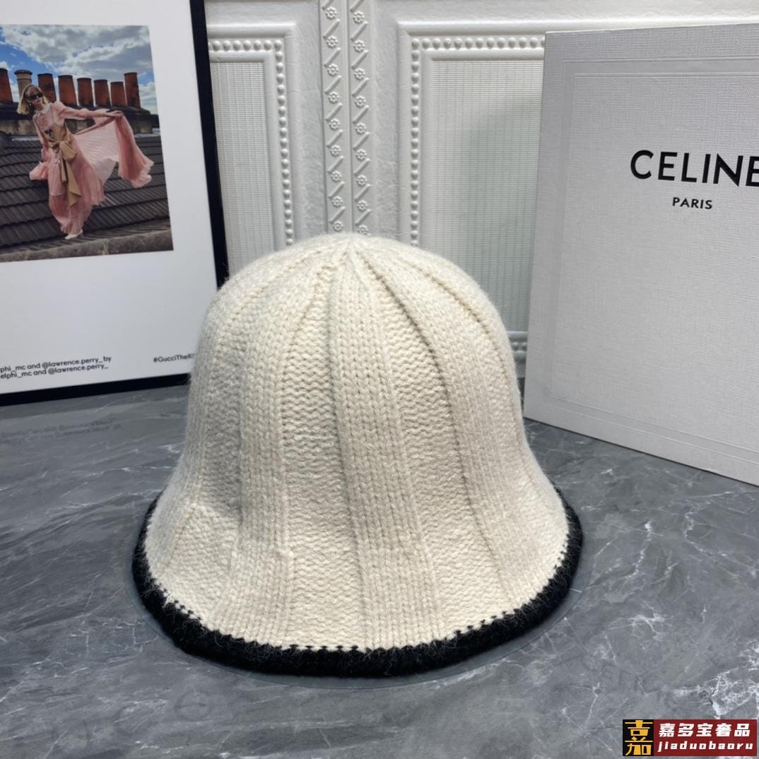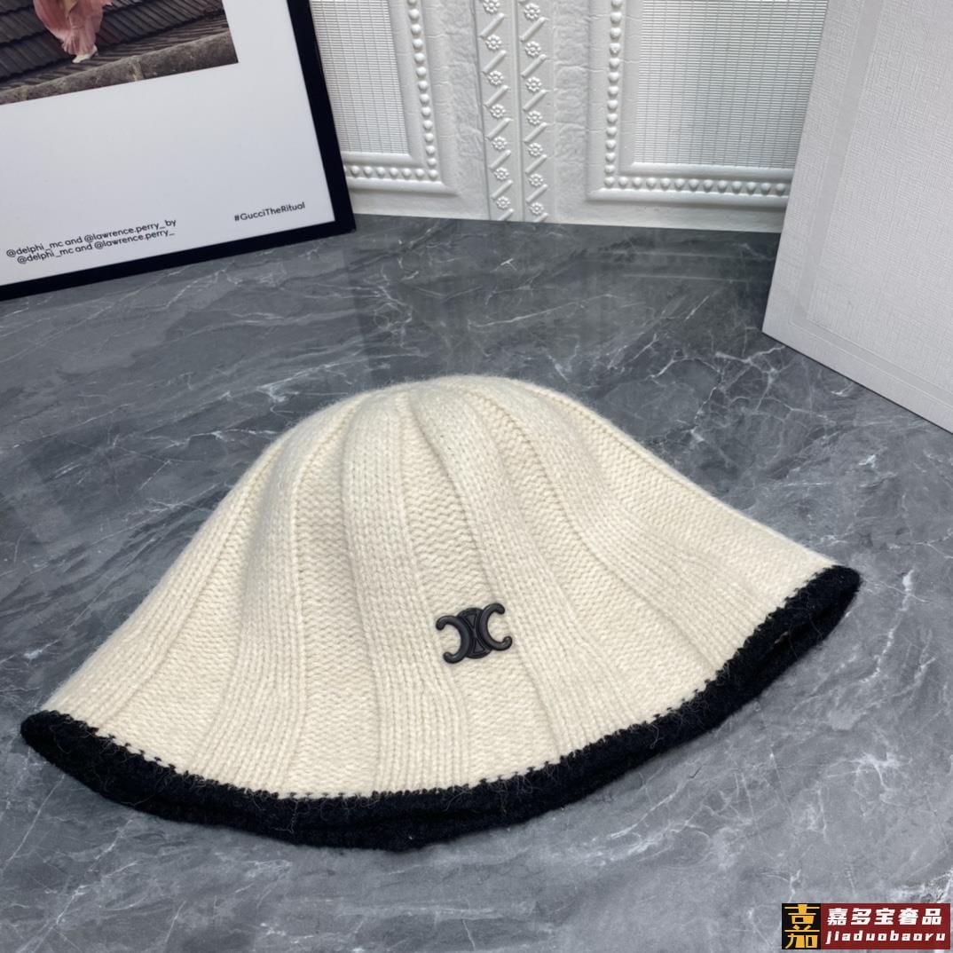 赛琳秋季新款桶帽菱格渔夫帽简约百搭白色黑色头围