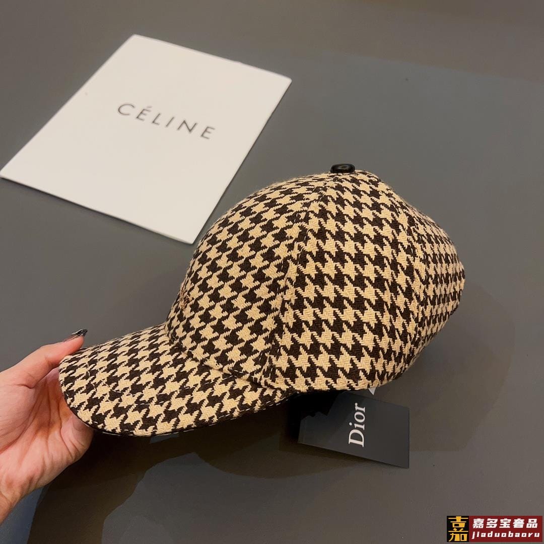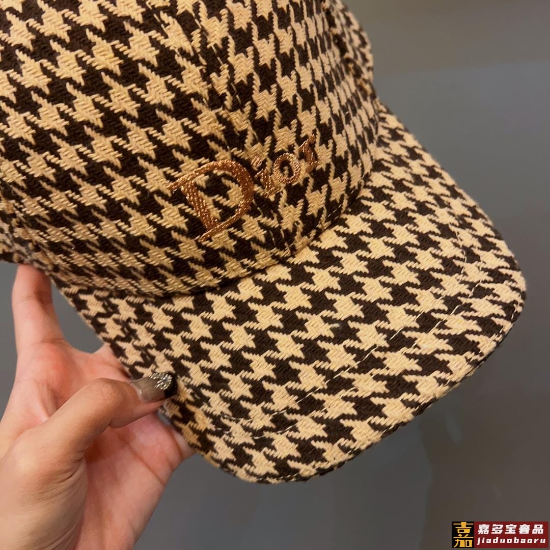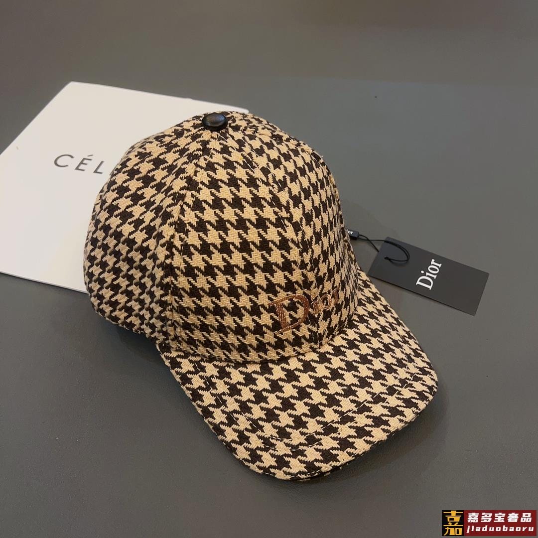 迪奥秋冬新款高级千鸟格粗纺呢子棒球帽法式名媛品质绝对高级超百搭