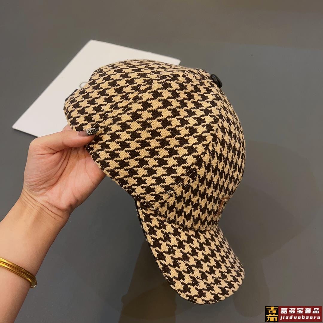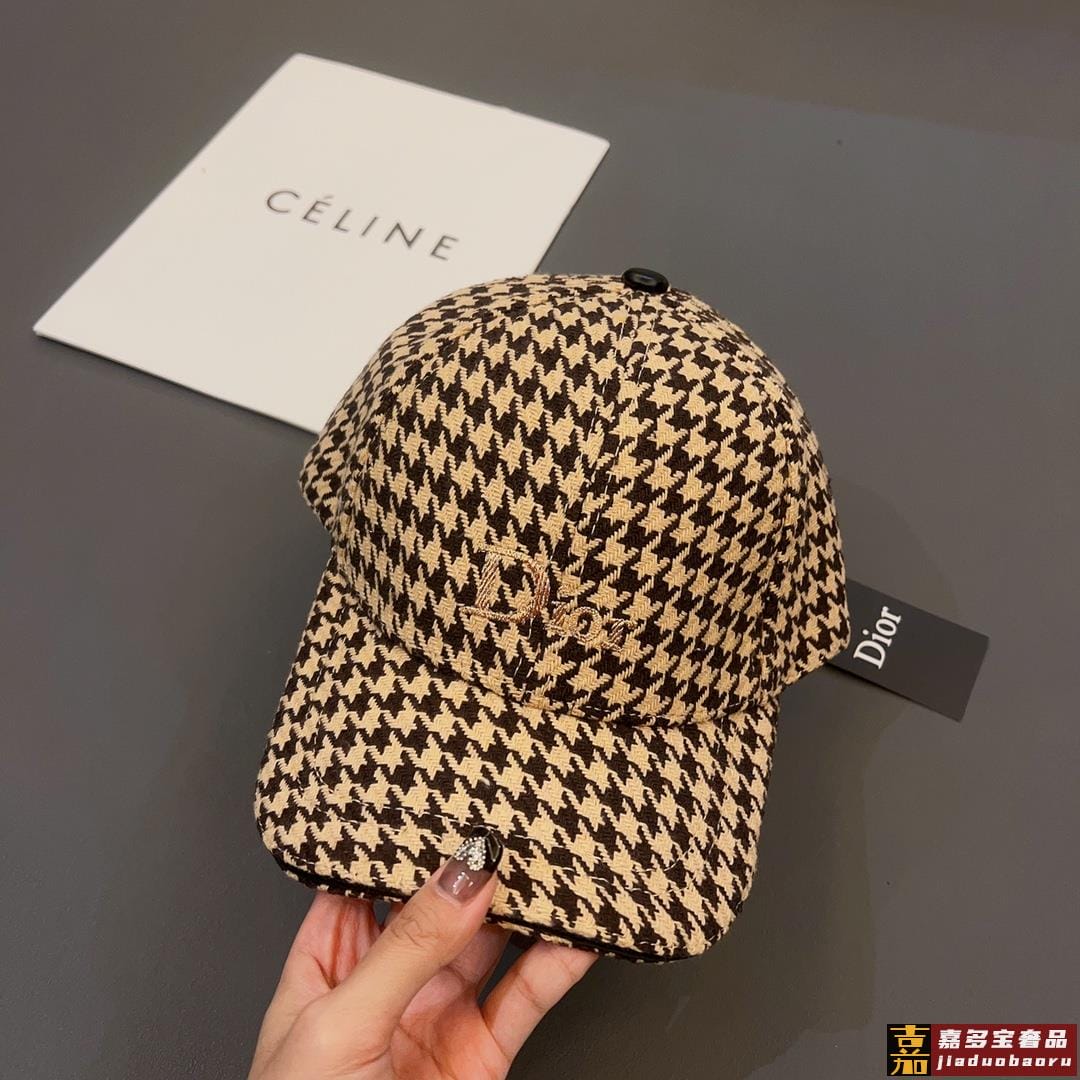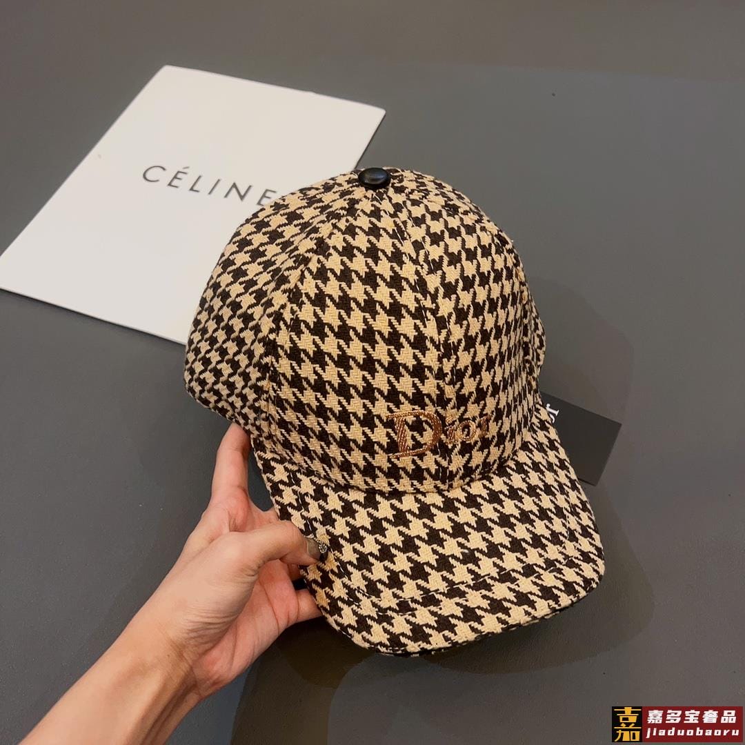 迪奥秋冬新款高级千鸟格粗纺呢子棒球帽法式名媛品质绝对高级超百搭