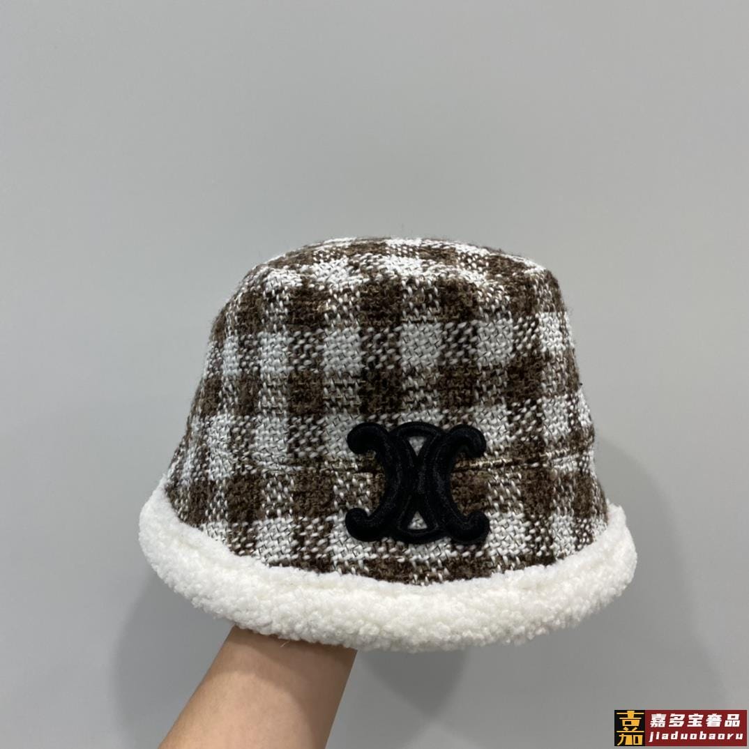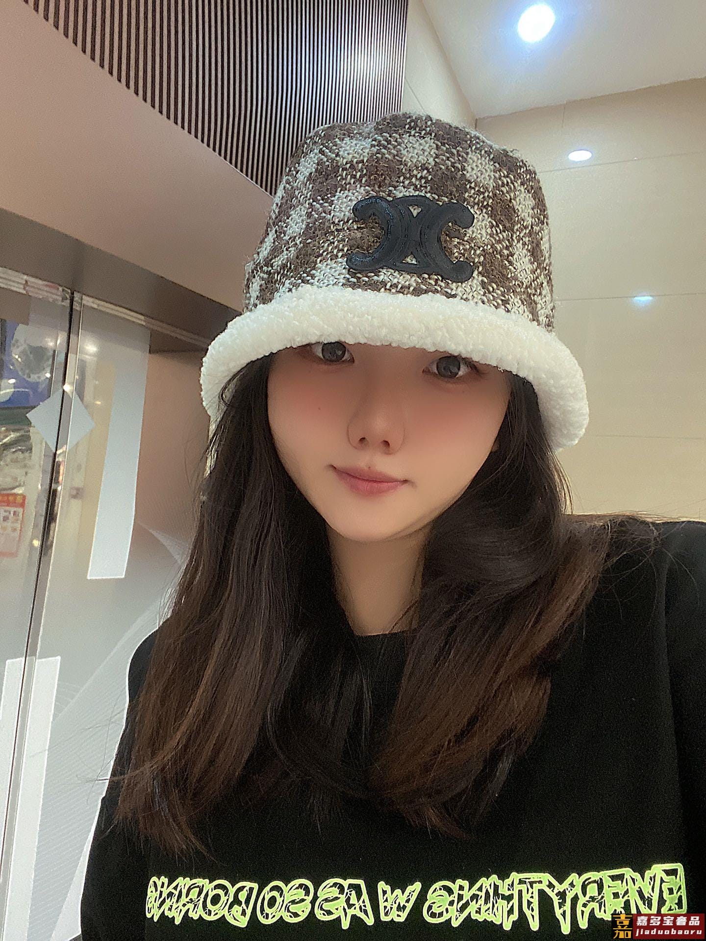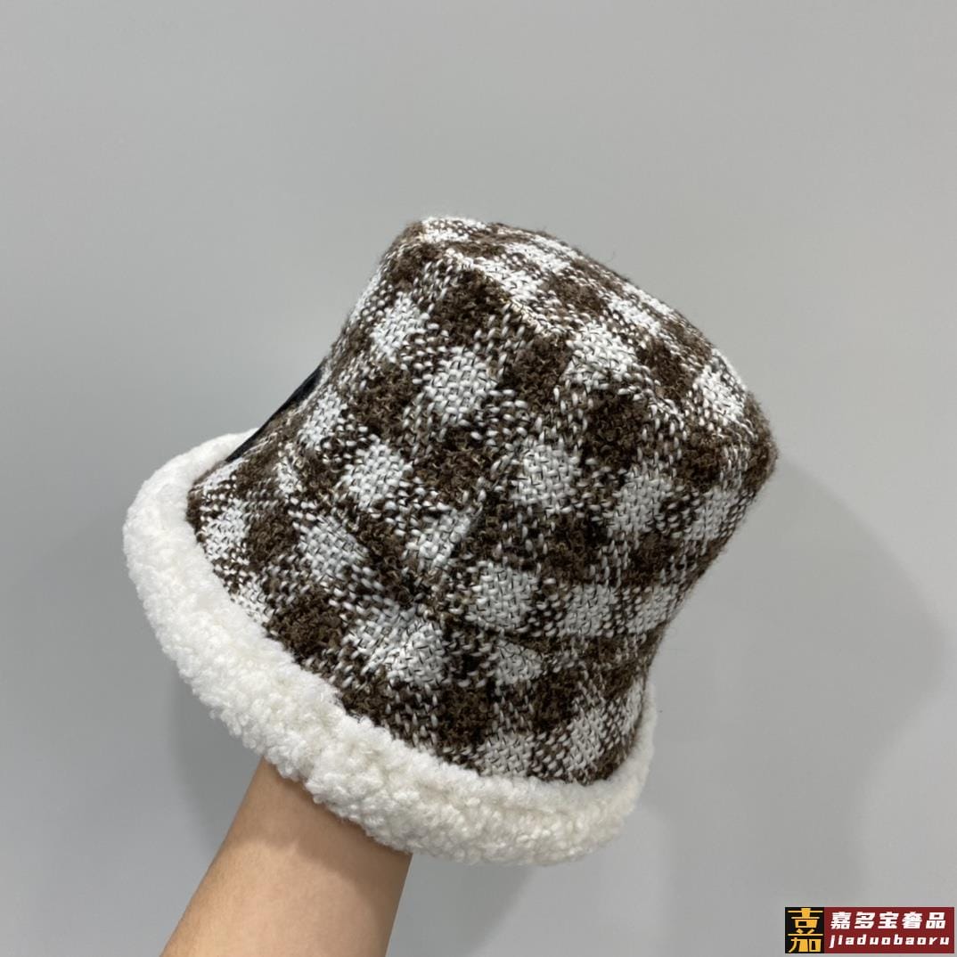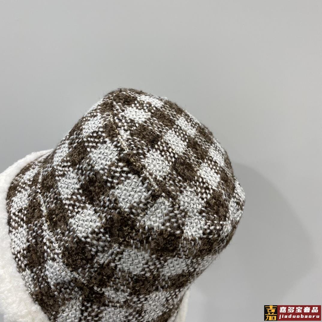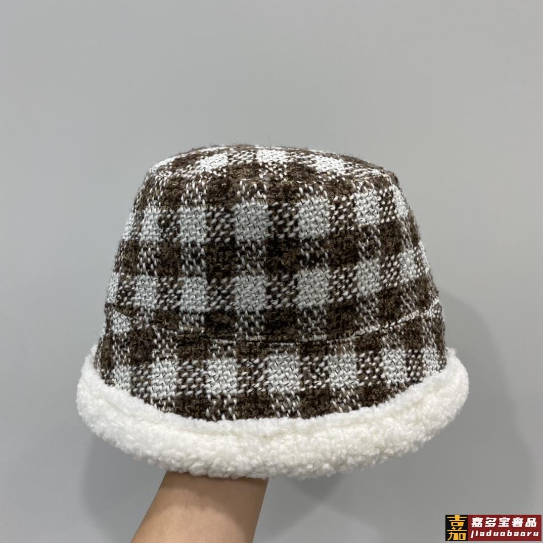 思琳秋冬新款羊羔毛渔夫帽格子冷帽跑量三个色品质性价比超高双面