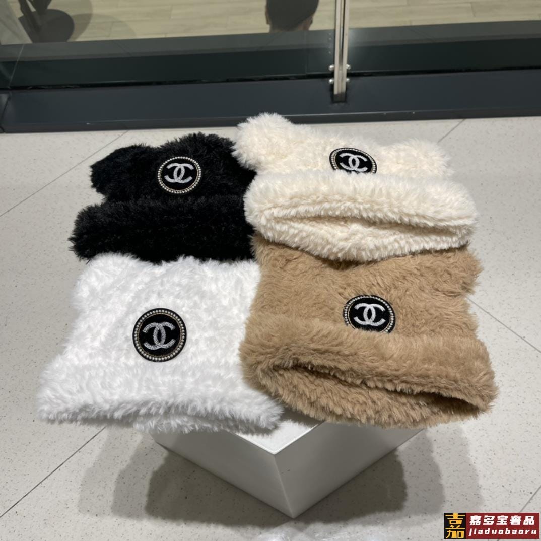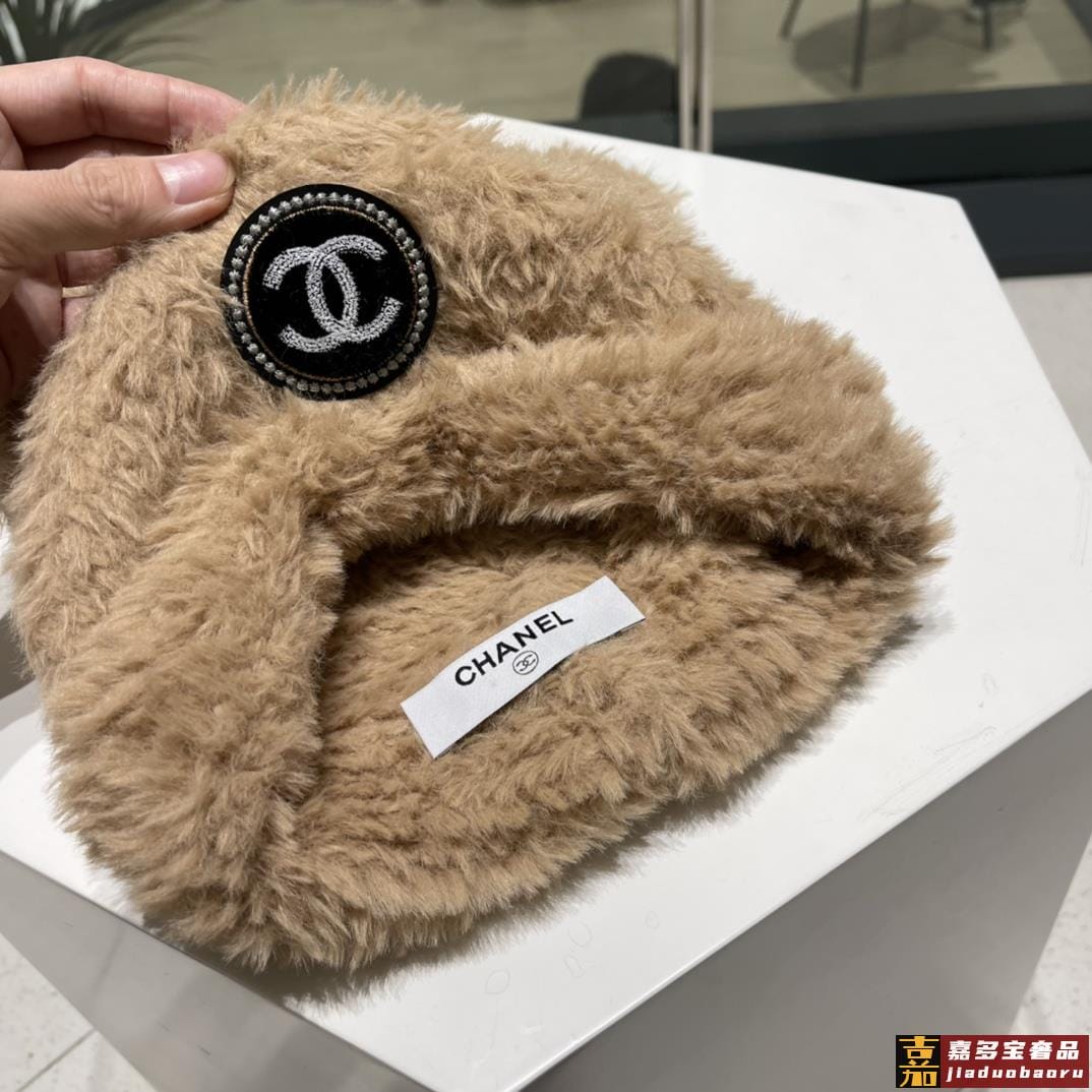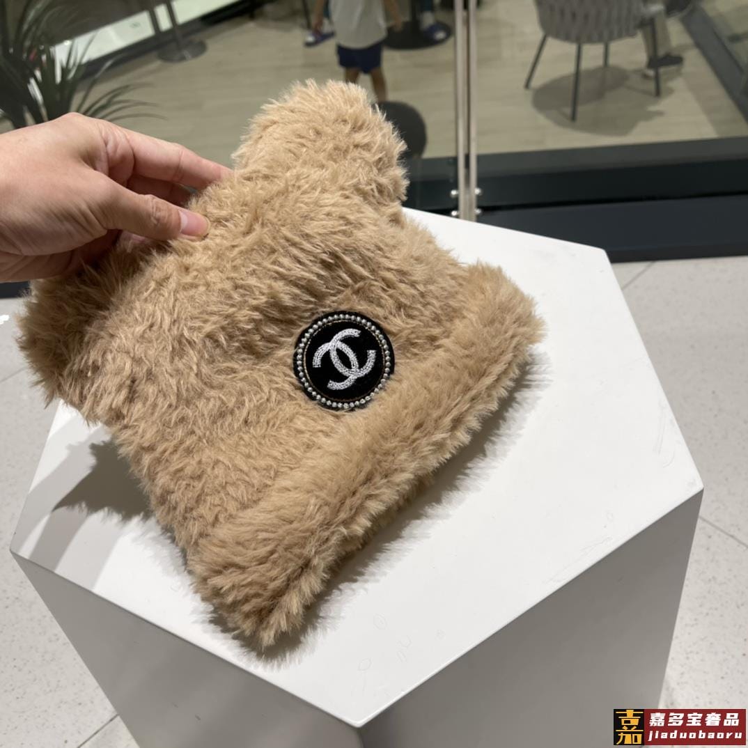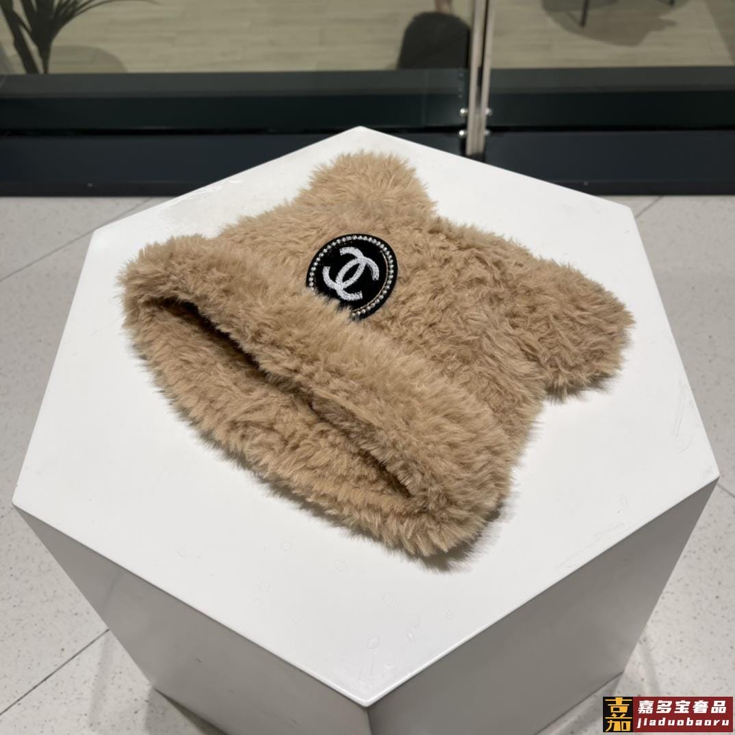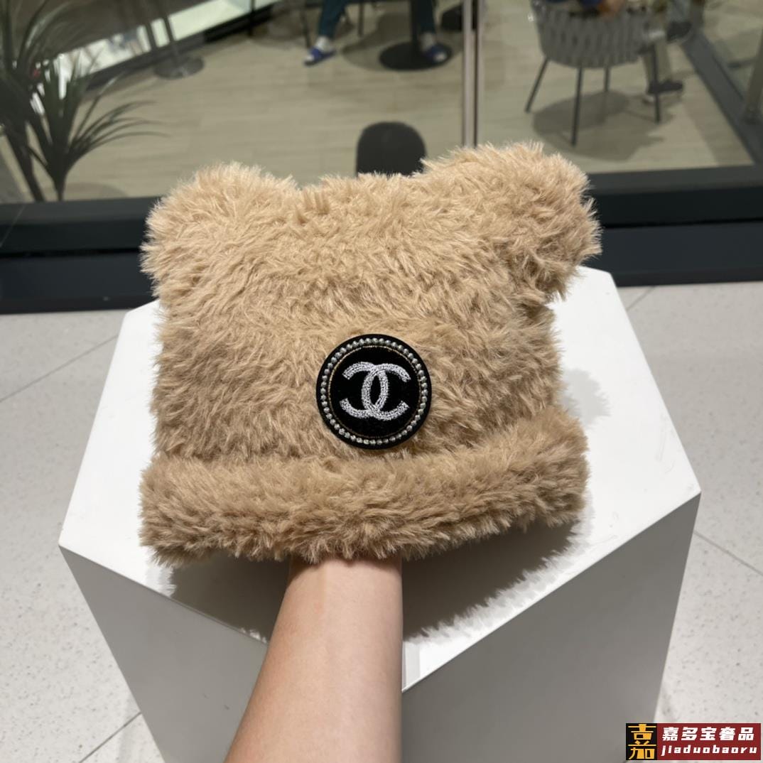 香奈儿年秋冬潮可爱毛毛小熊保暖套头帽子女网红护耳防寒针织毛线帽