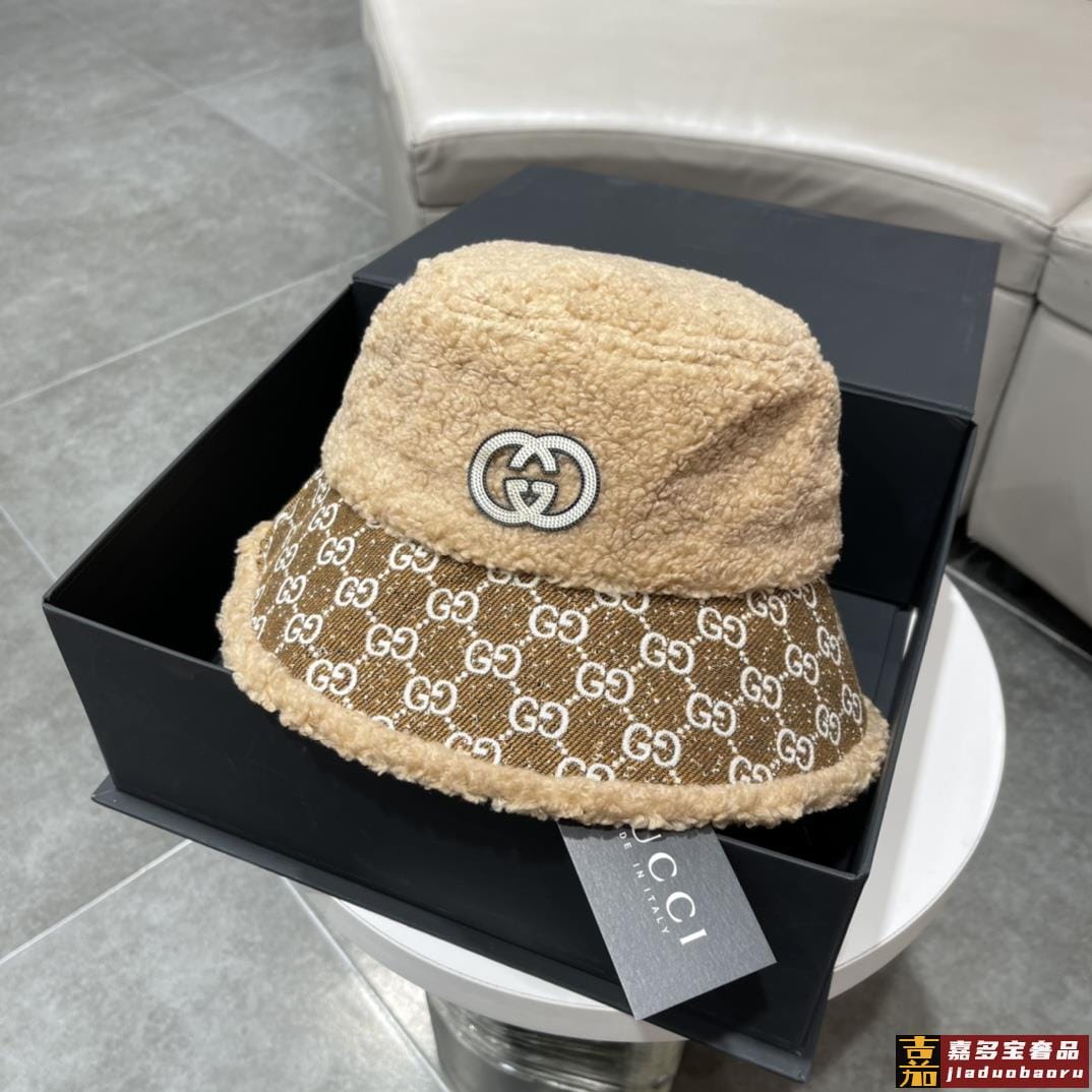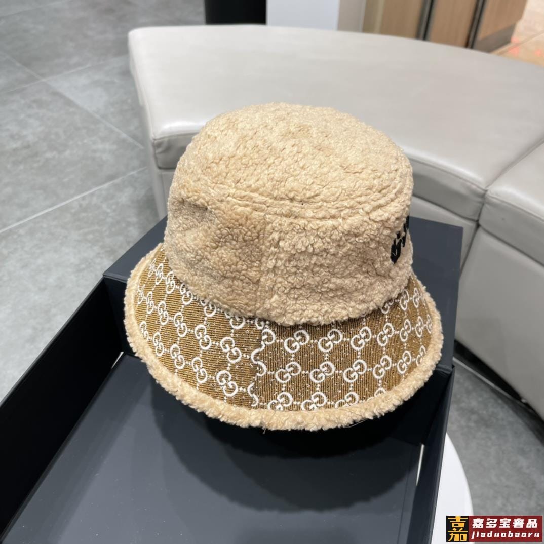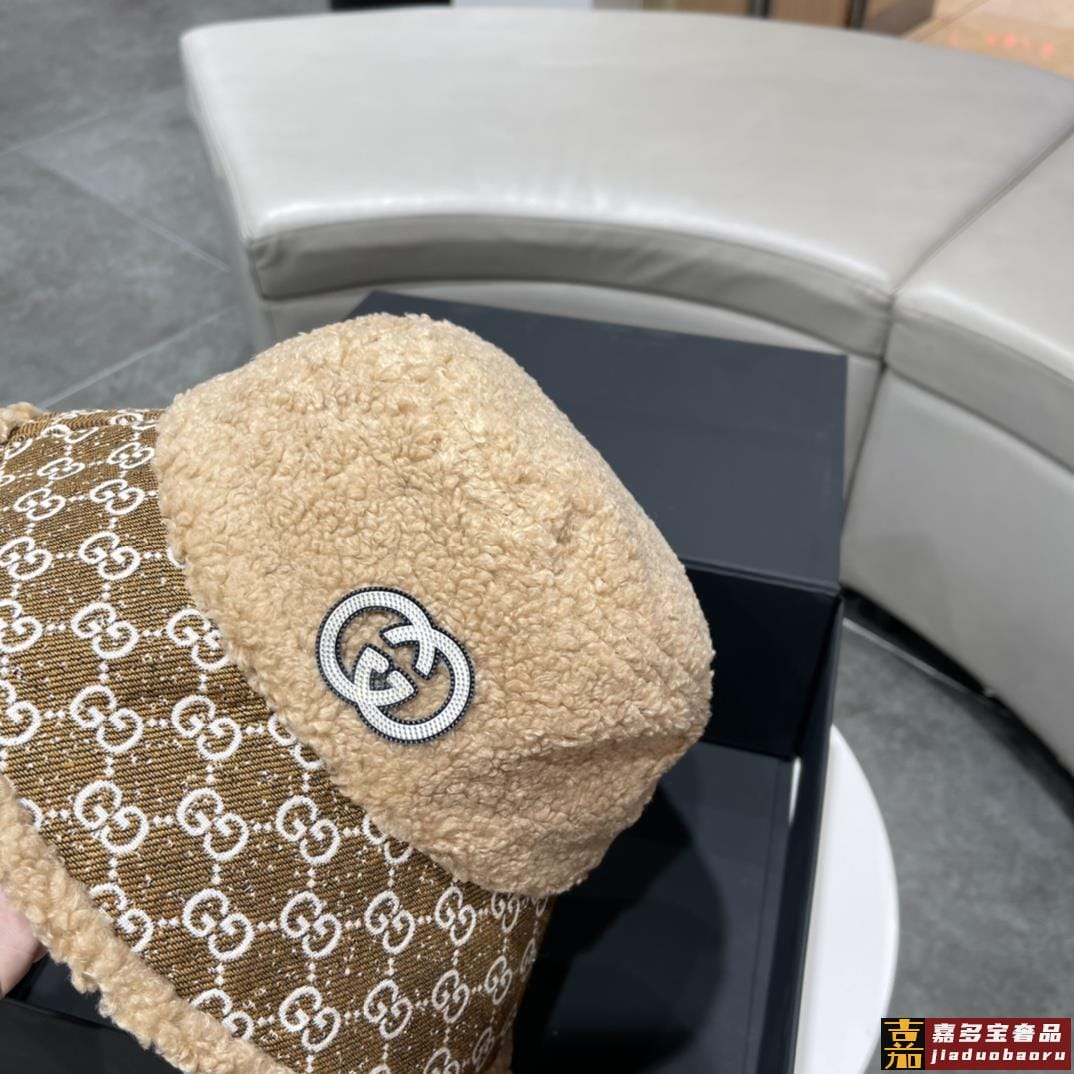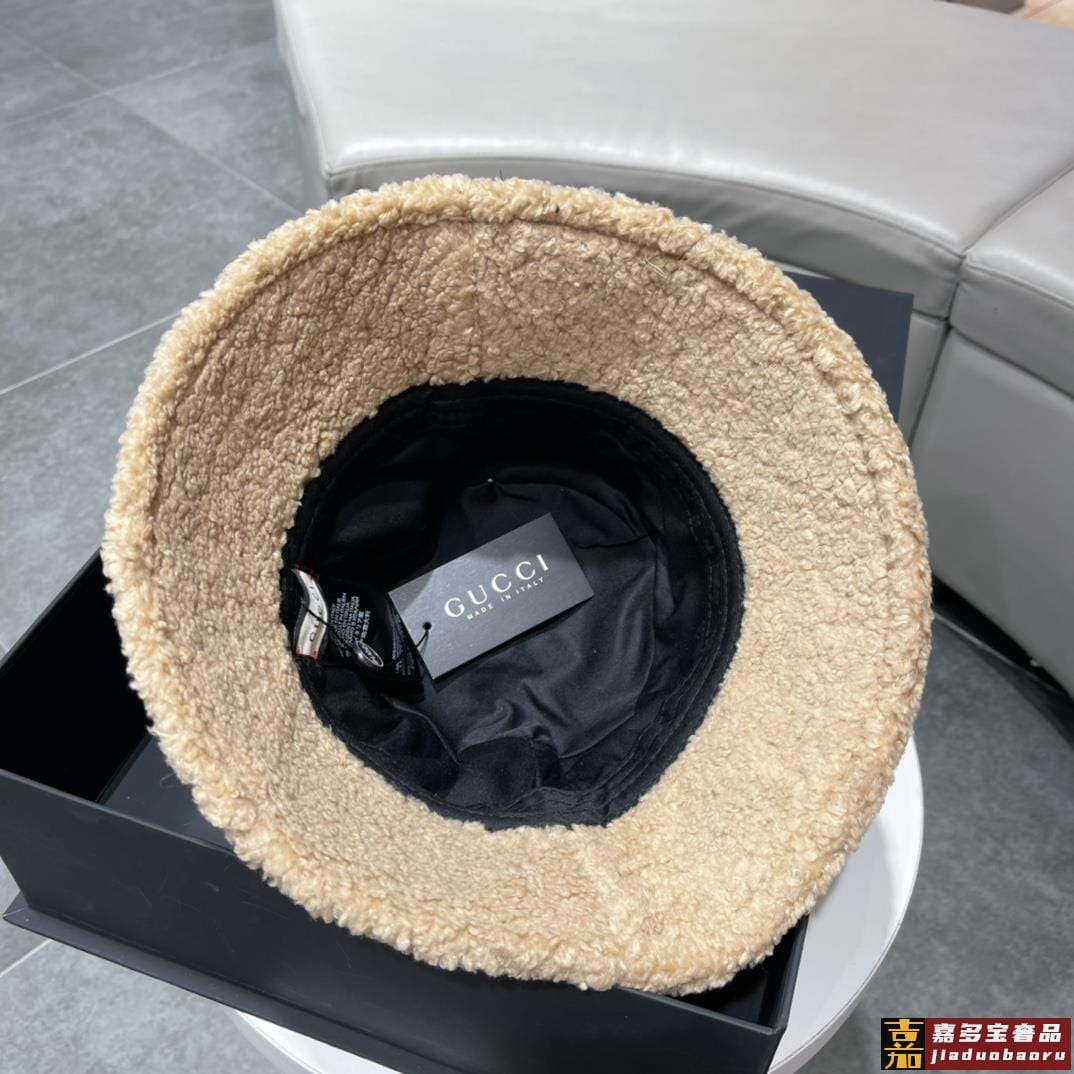 古奇秋冬新款官网最新双面原单渔夫帽羊羔毛大边帽檐特别显脸小有