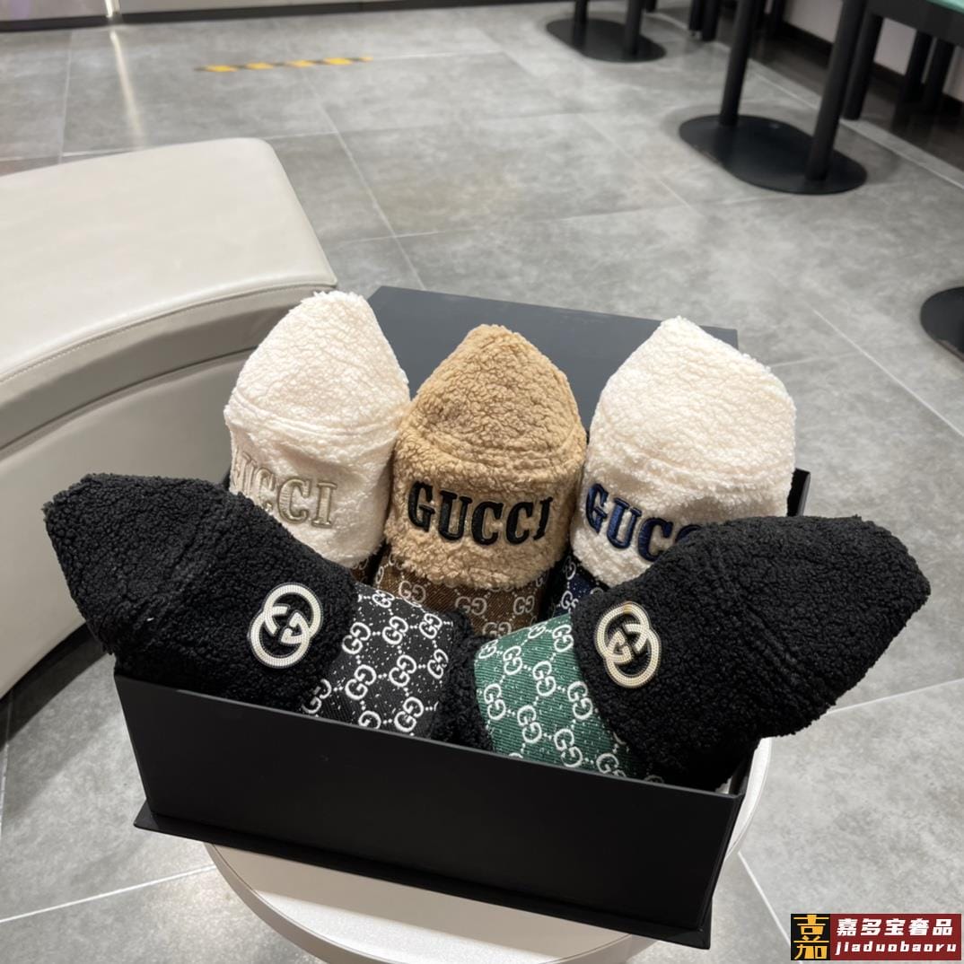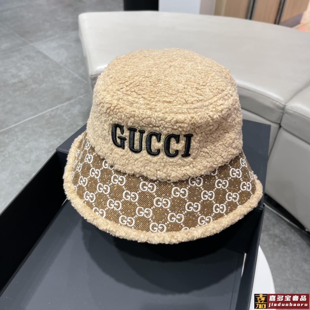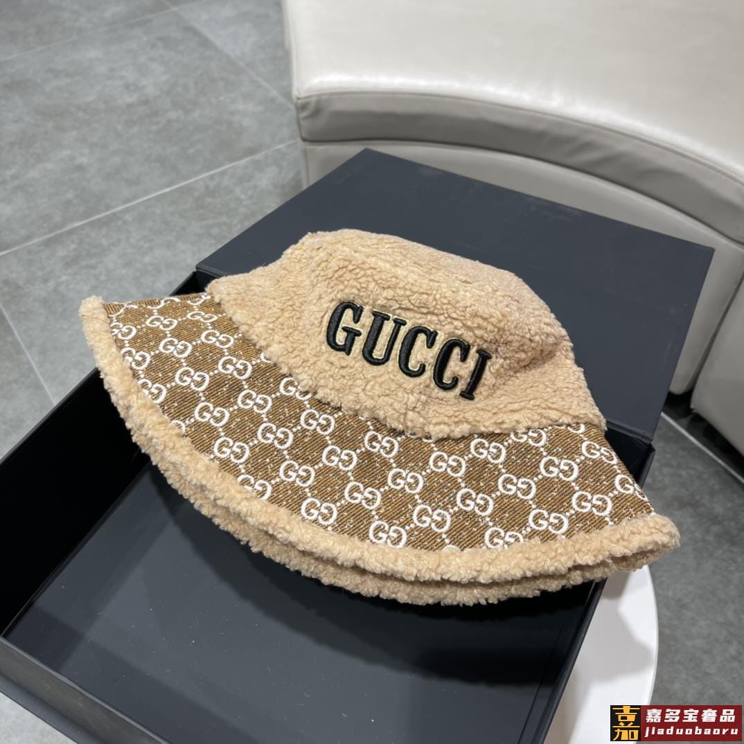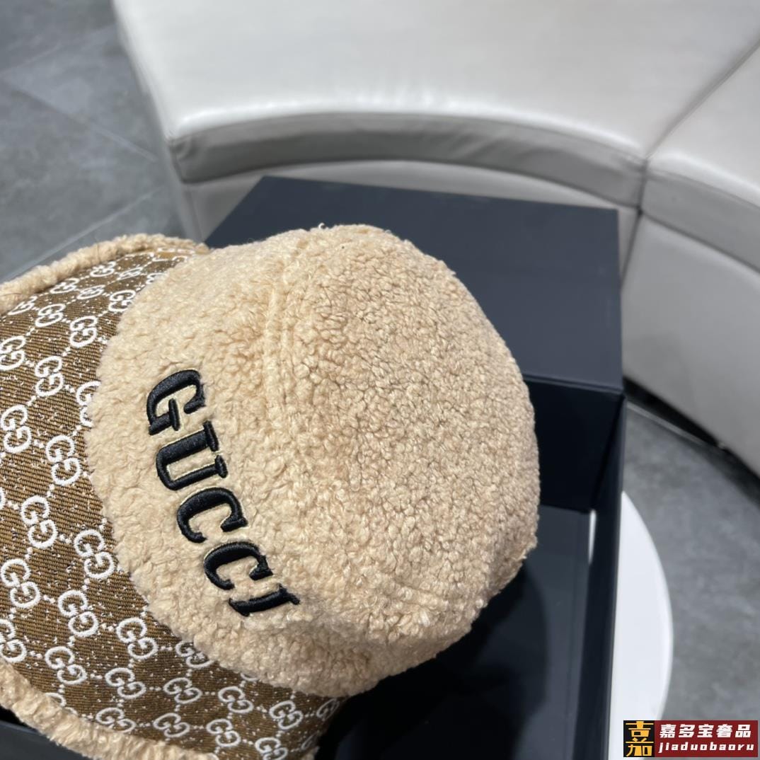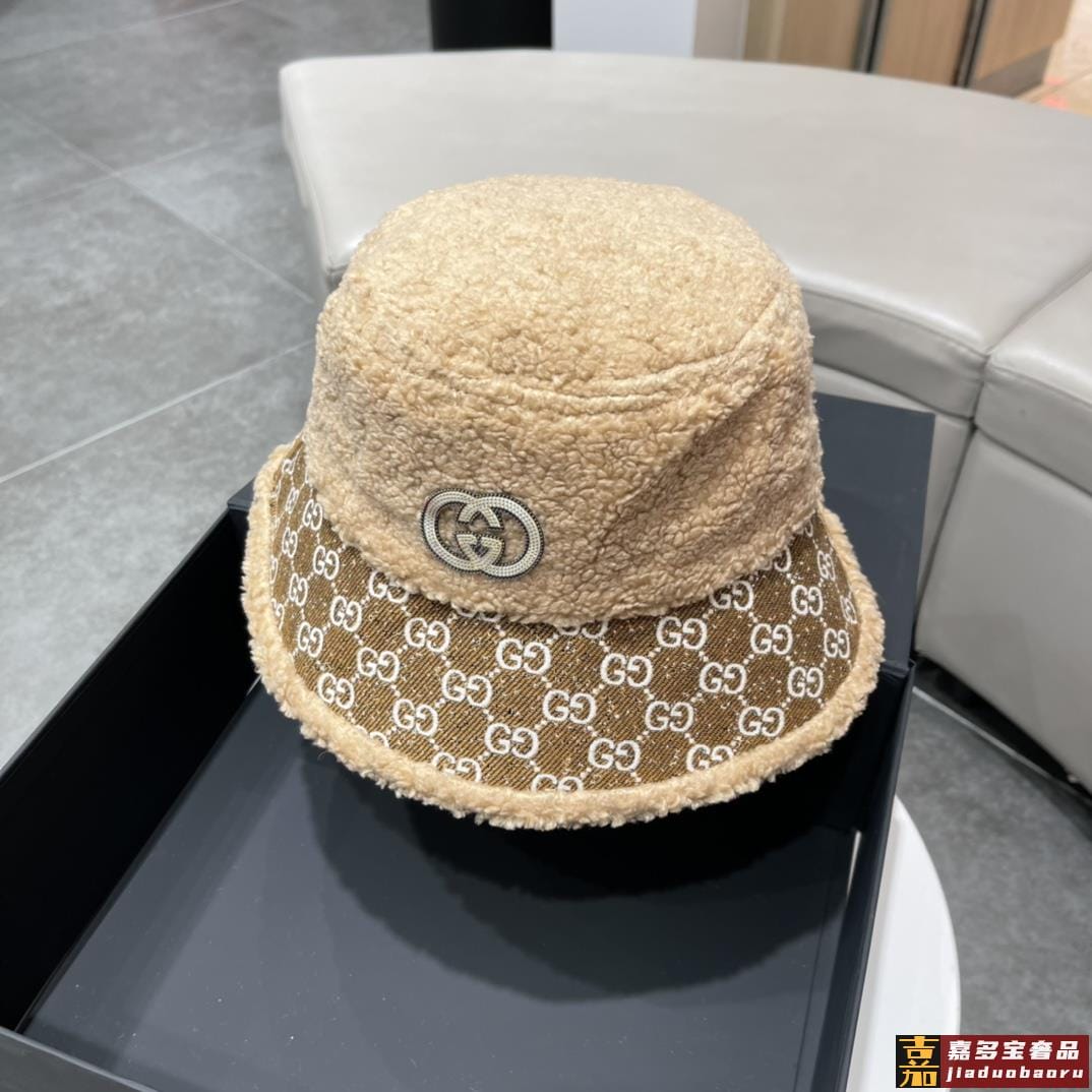 古奇秋冬新款官网最新双面原单渔夫帽羊羔毛大边帽檐特别显脸小有