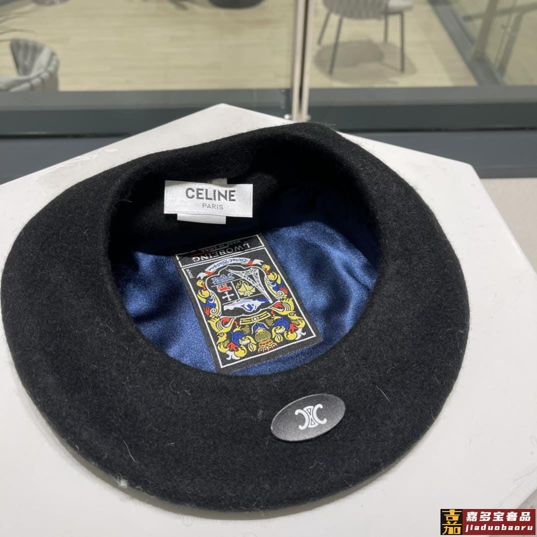 赛琳秋冬新款贝雷帽百分百羊毛面料头围蓝