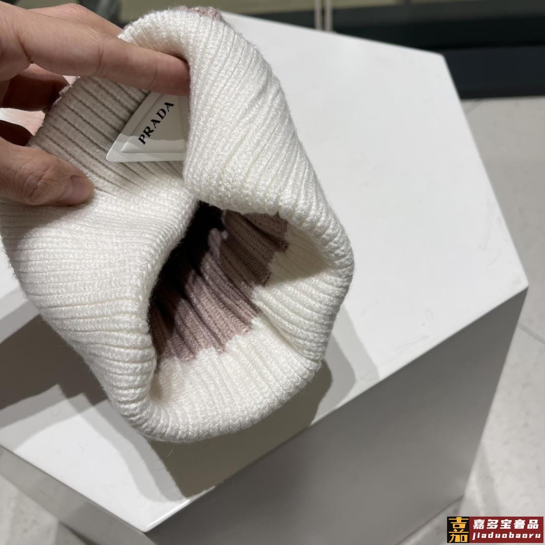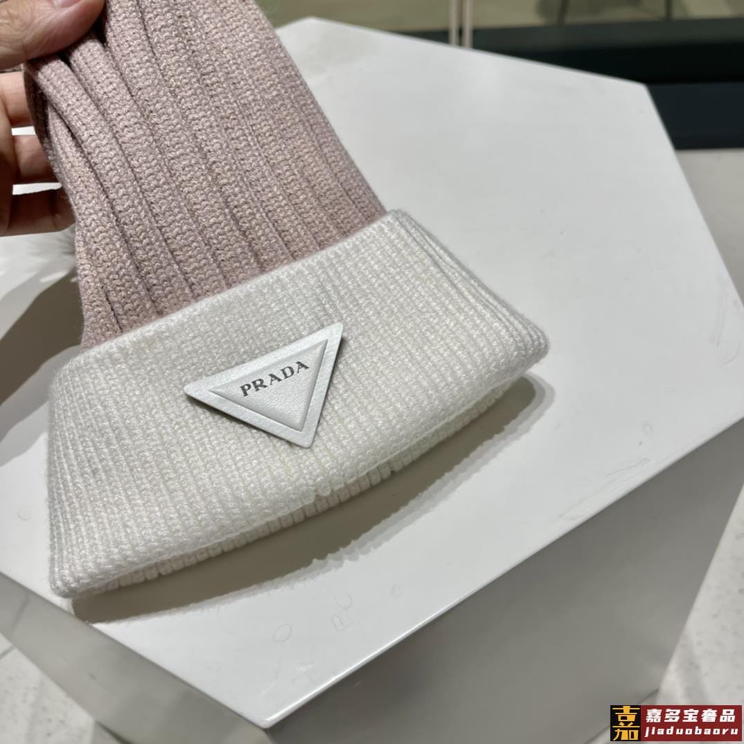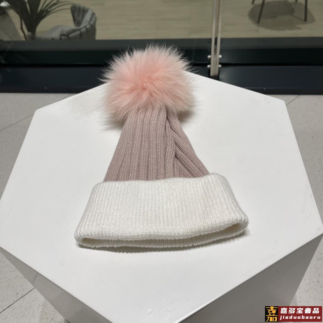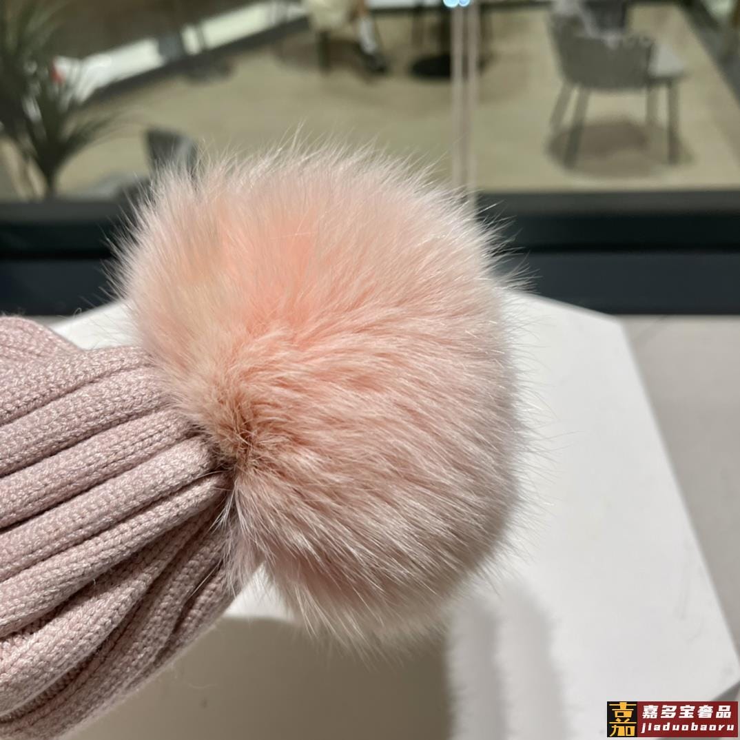 普拉达秋冬配狐狸毛球专柜针织毛线帽超火爆质感一流出街超好搭配