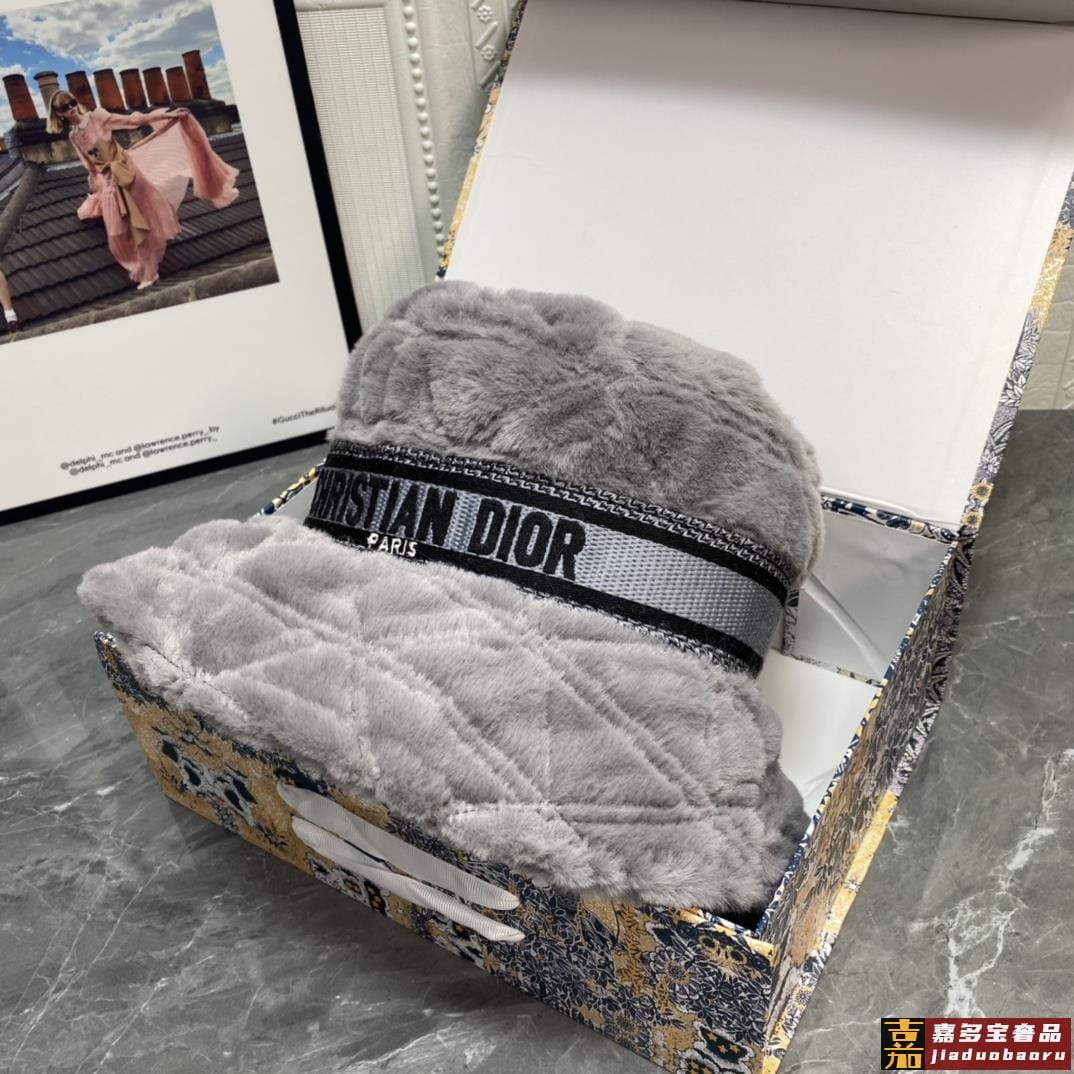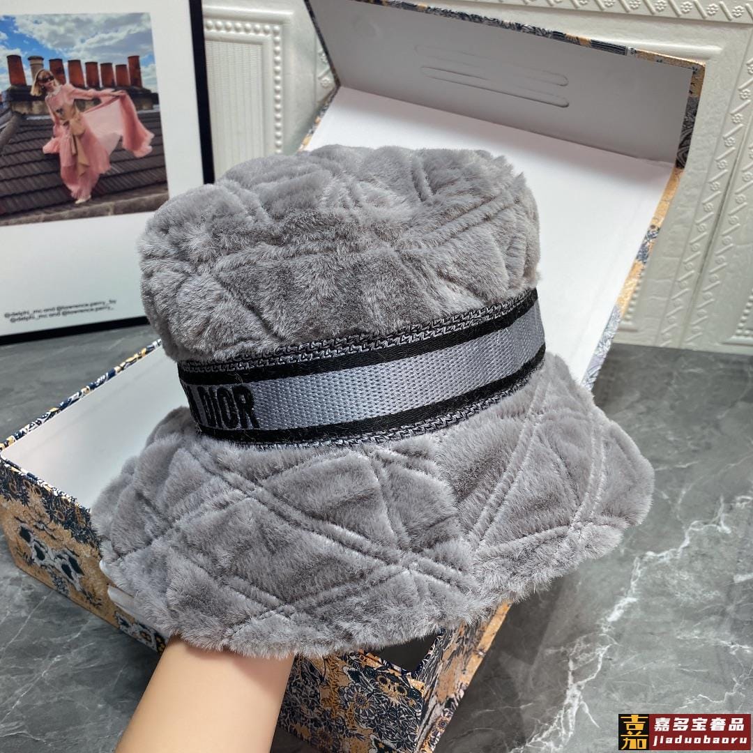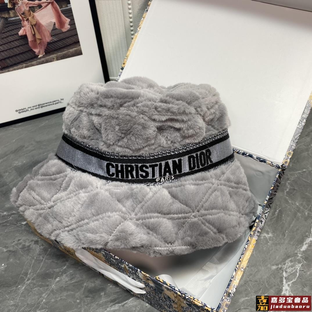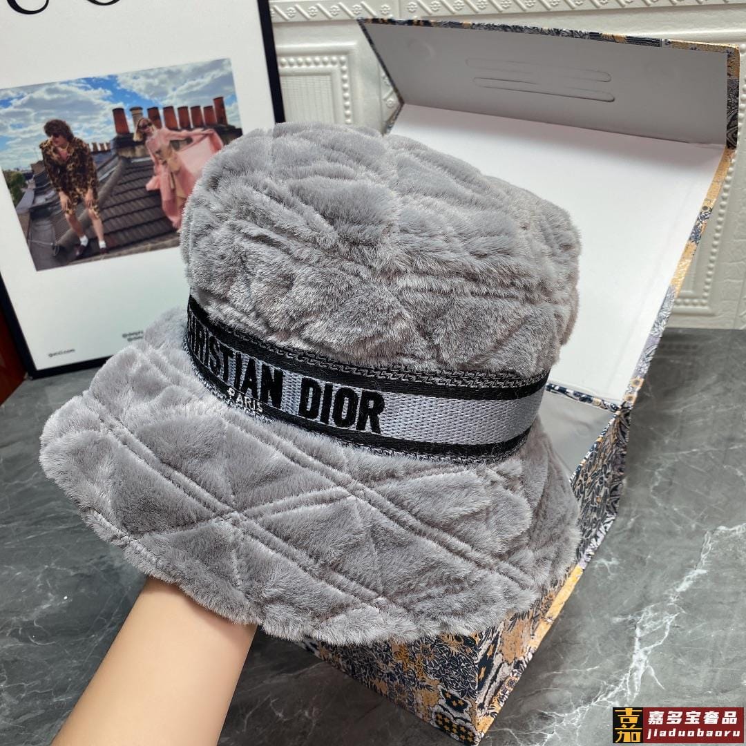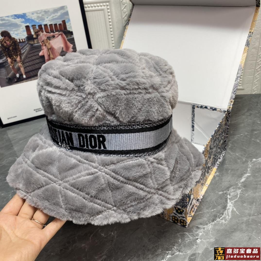 迪奥秋冬新款兔绒渔夫帽简约百搭秋冬搭衣必备头围
