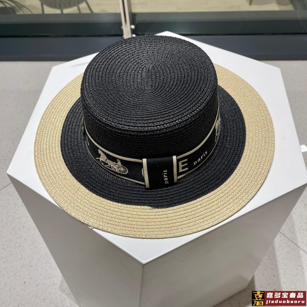 香奈儿新款简约草编草帽礼帽细节控简约大方巴拿马风格欧美时尚休