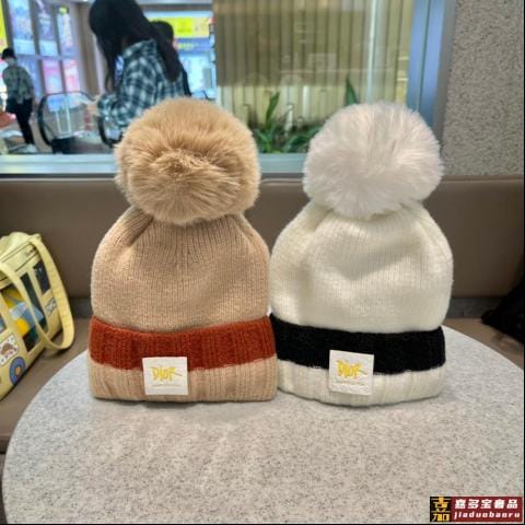 迪奥秋冬新款迪奥针织兔毛毛线帽韩版潮流套头加厚保暖毛球针织帽