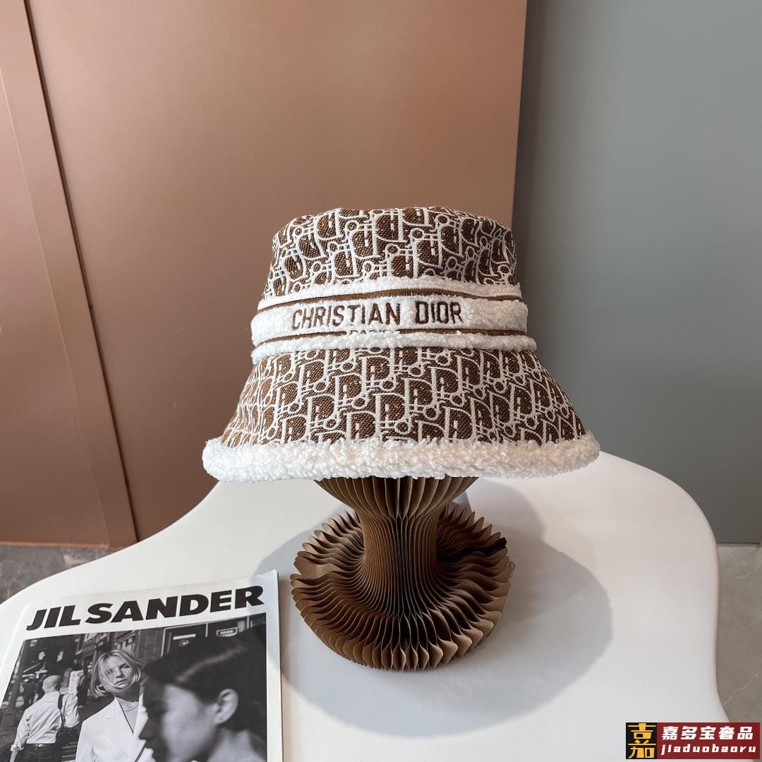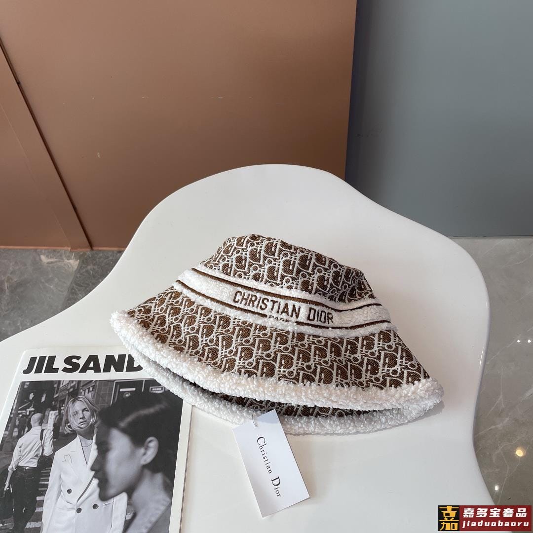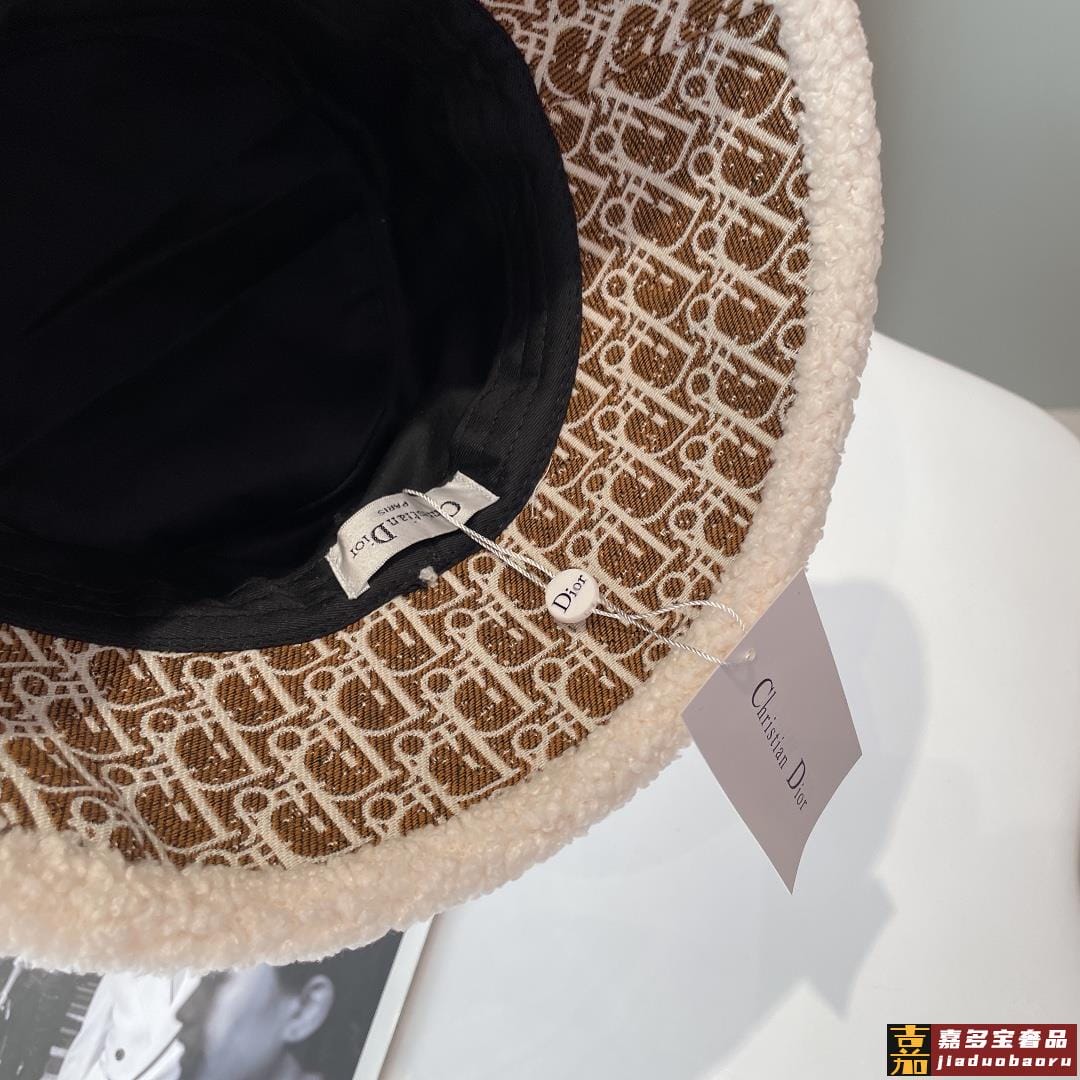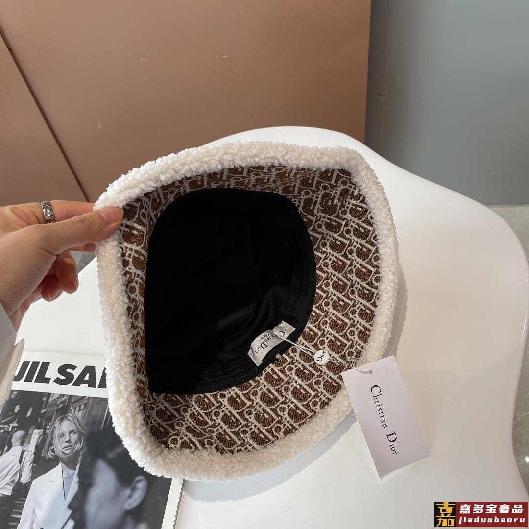 迪奥秋冬新款官网最新双面原单迪奥渔夫帽羊羔大边帽檐特别显脸小