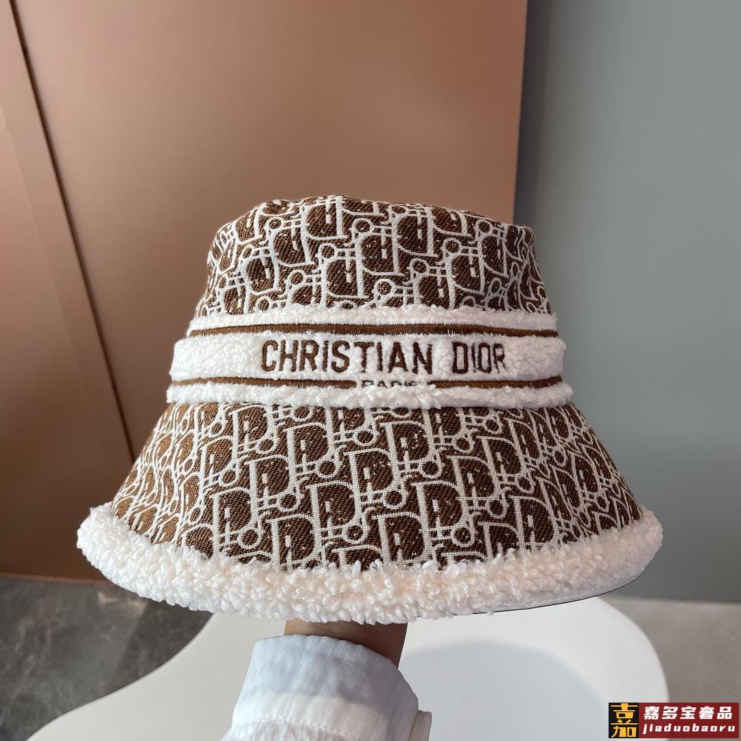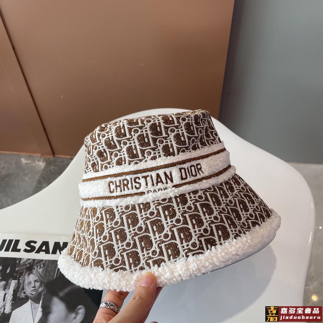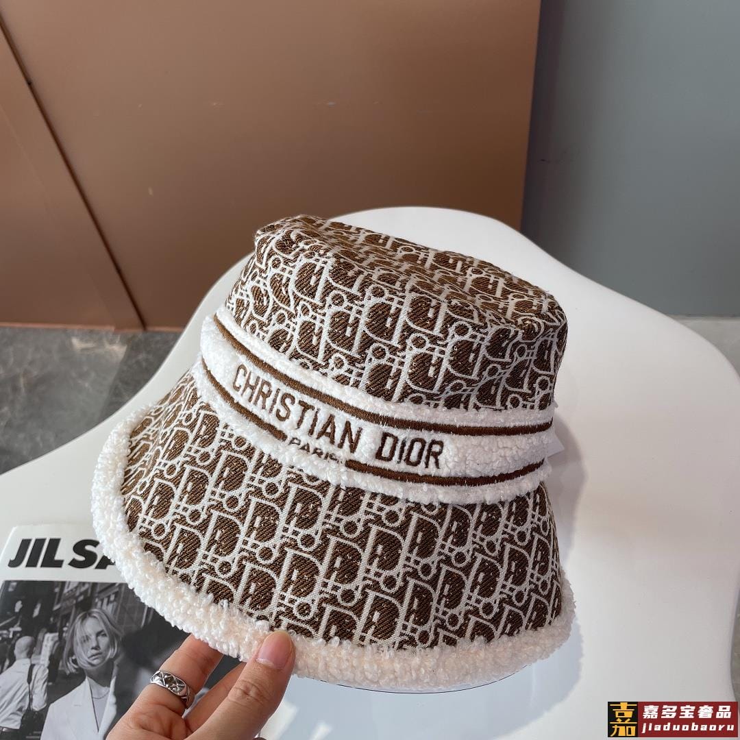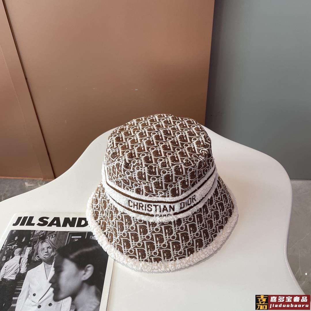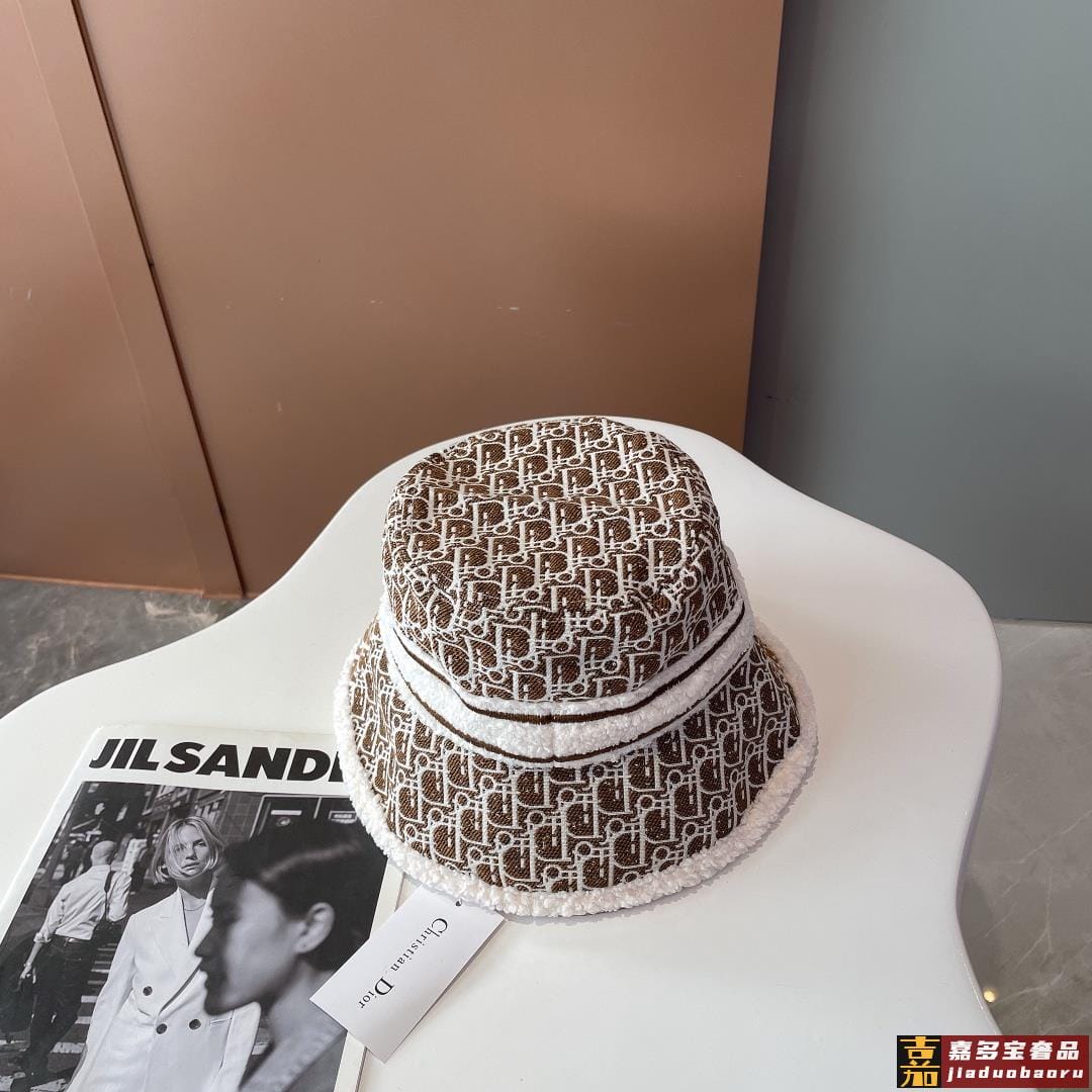 迪奥秋冬新款官网最新双面原单迪奥渔夫帽羊羔大边帽檐特别显脸小