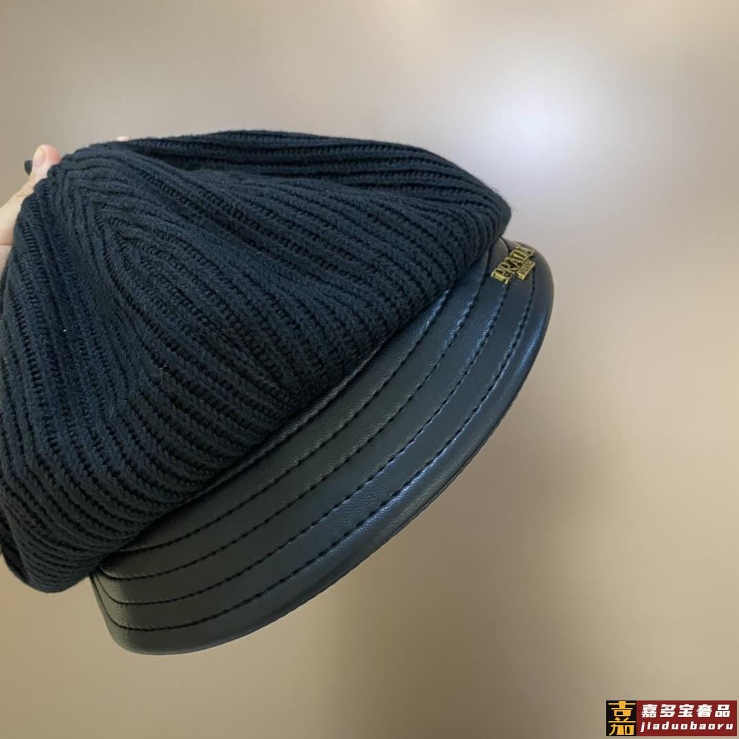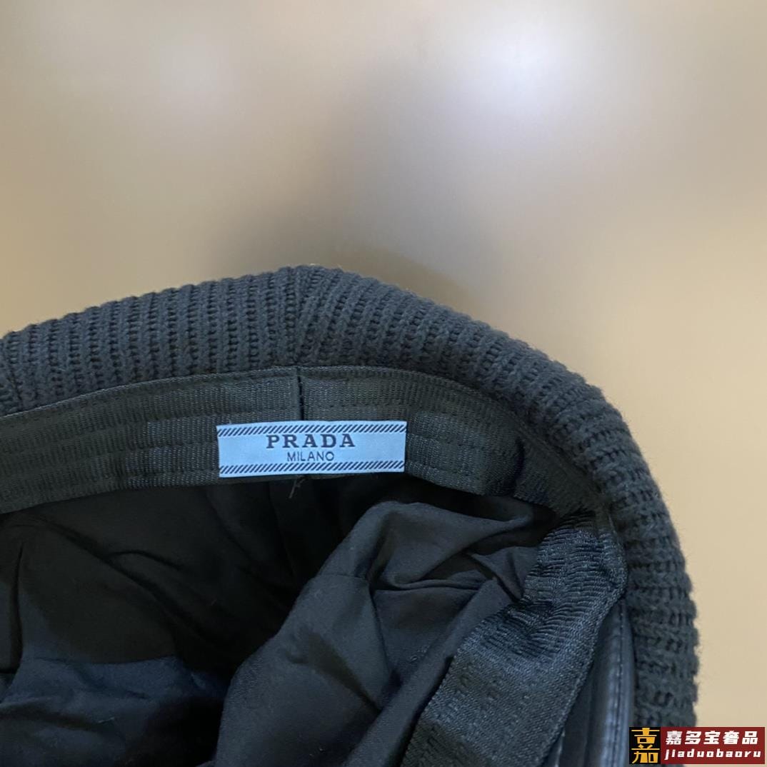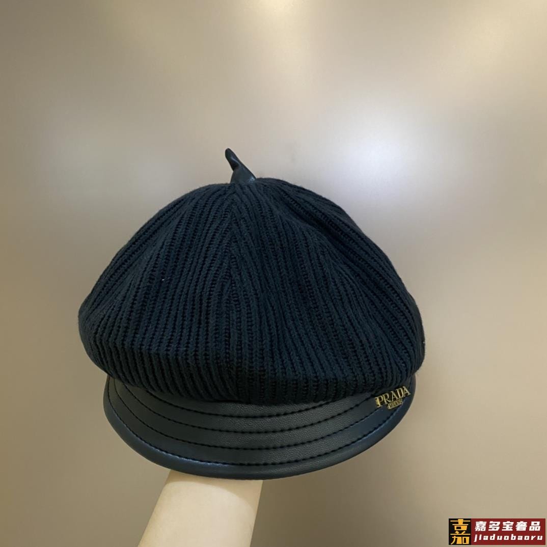普拉达鸭舌帽军帽秋季针织鸭舌帽黑卡其两个色头围