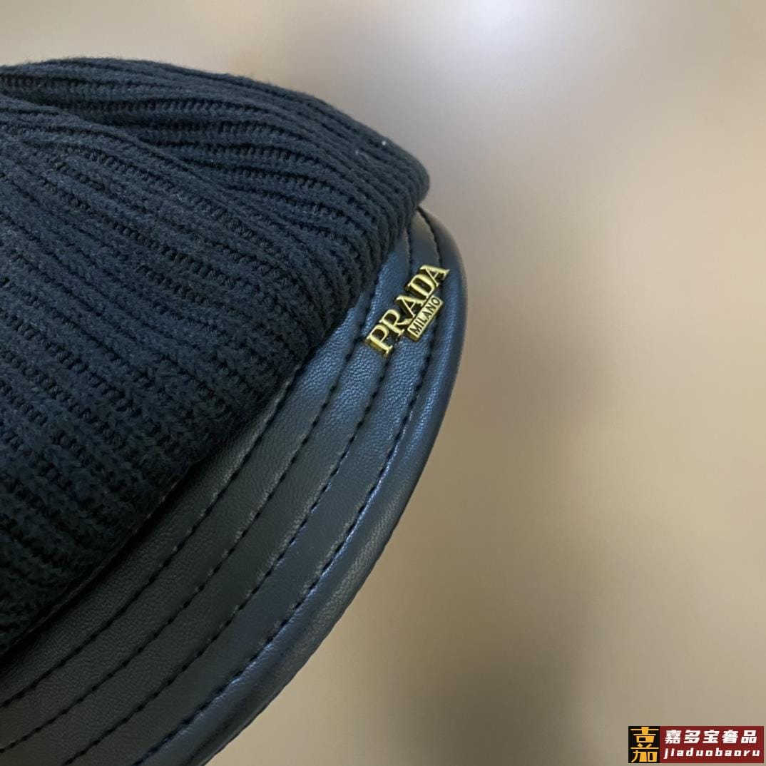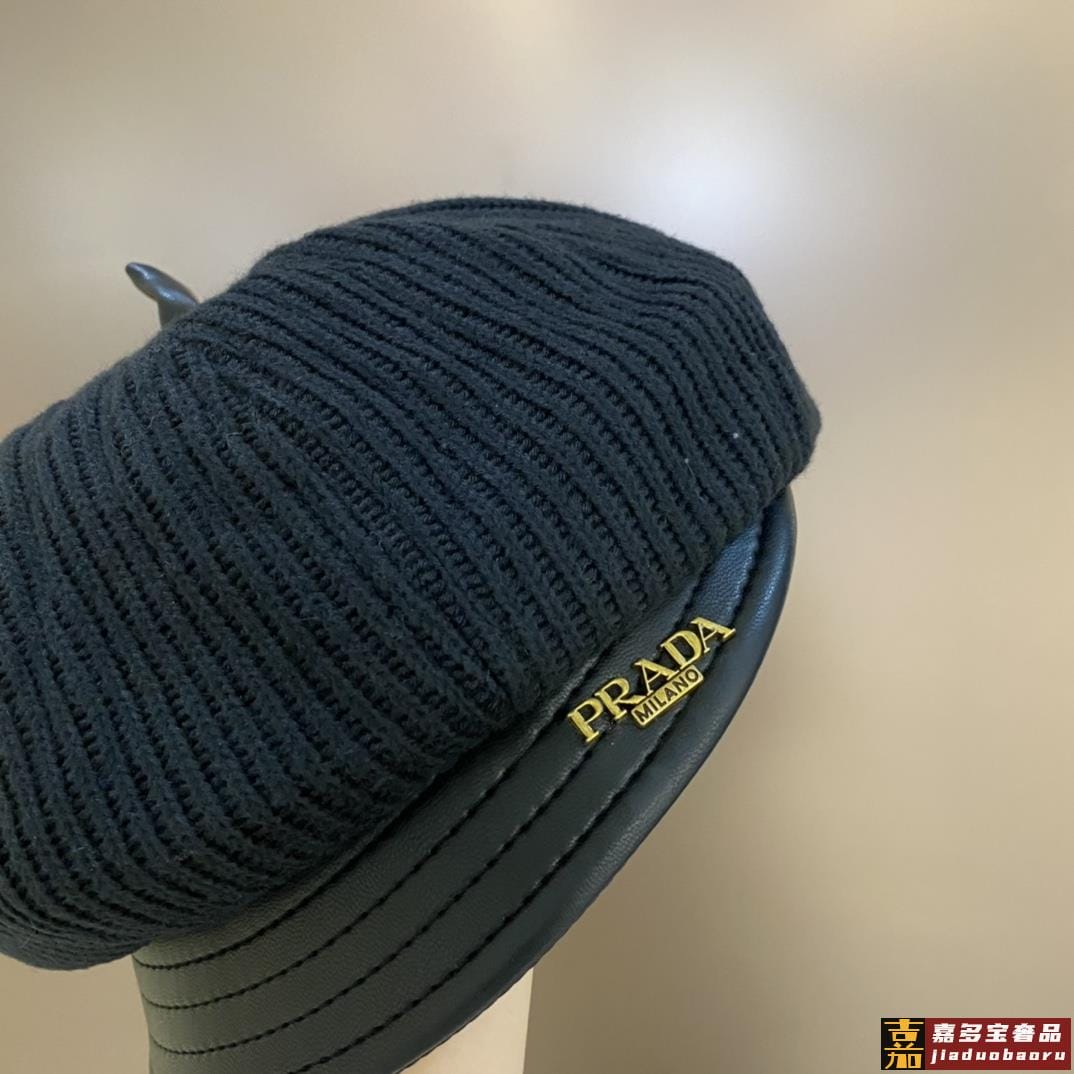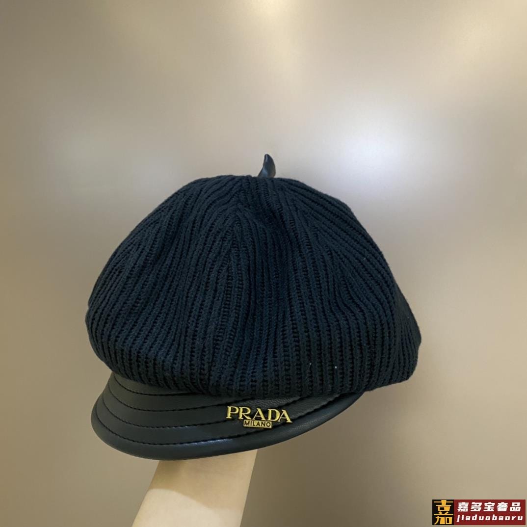 普拉达鸭舌帽军帽秋季针织鸭舌帽黑卡其两个色头围