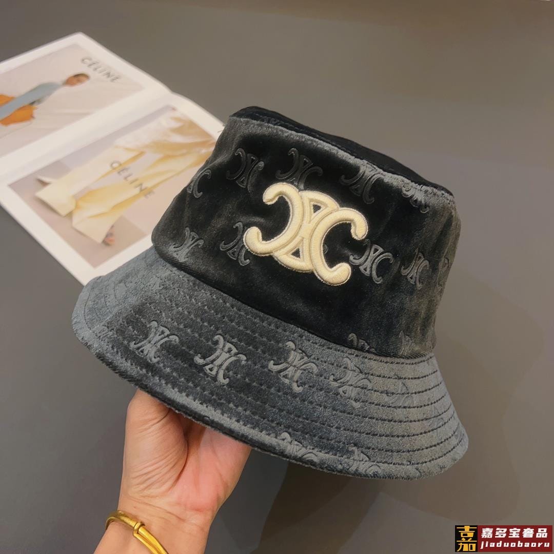 香奈儿秋款渔夫帽暗纹桶帽简约百搭款黑灰米两色