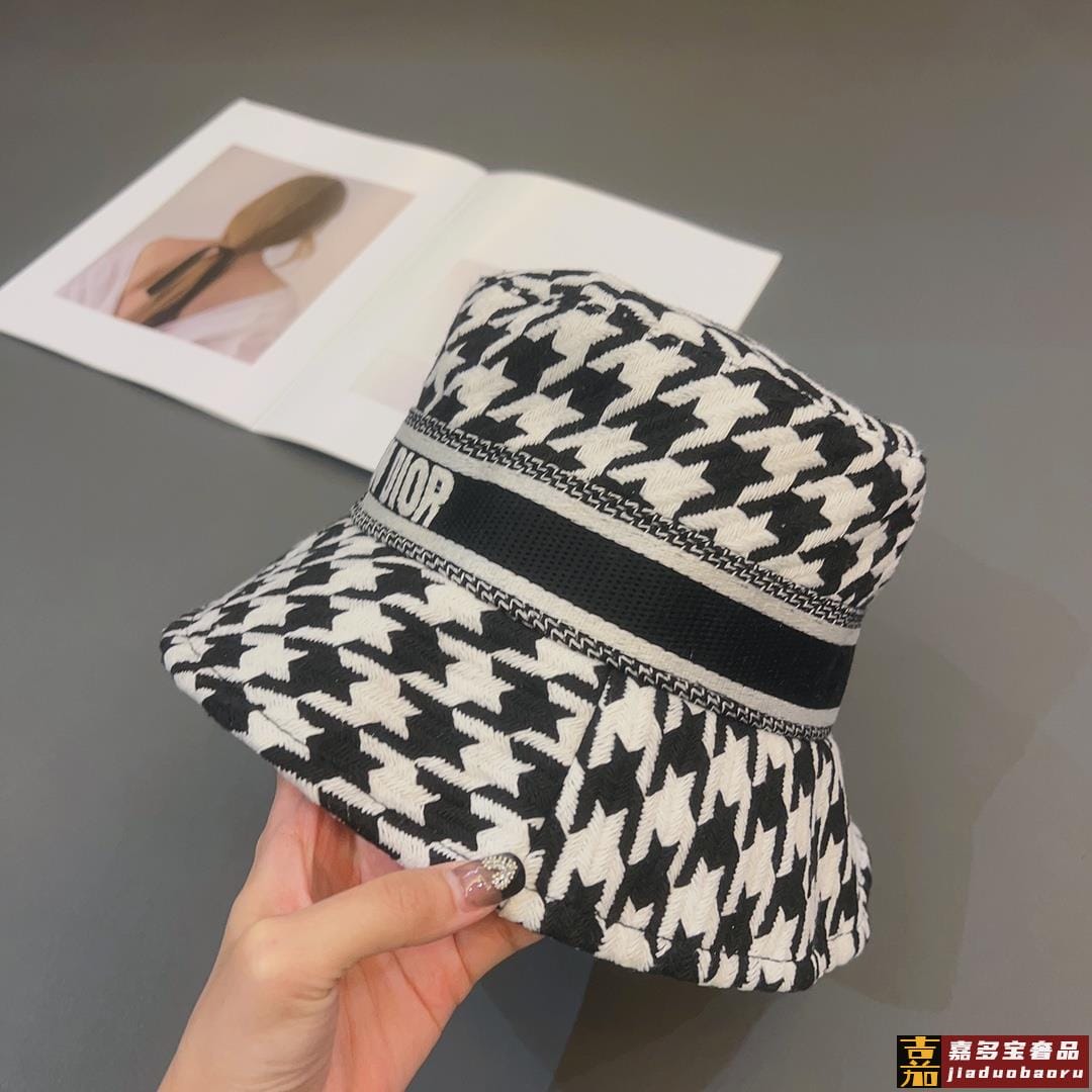 迪奥新款发布高版本老花家千鸟格渔夫帽水洗标吊牌齐全超级爆款时