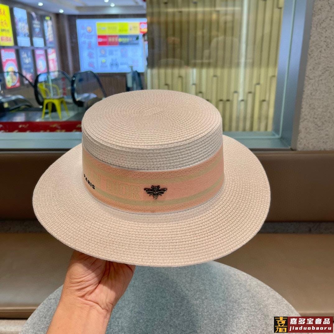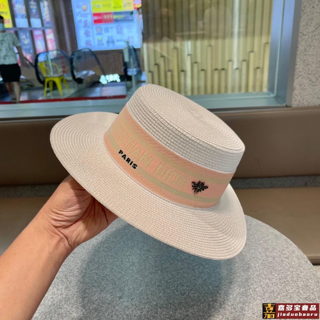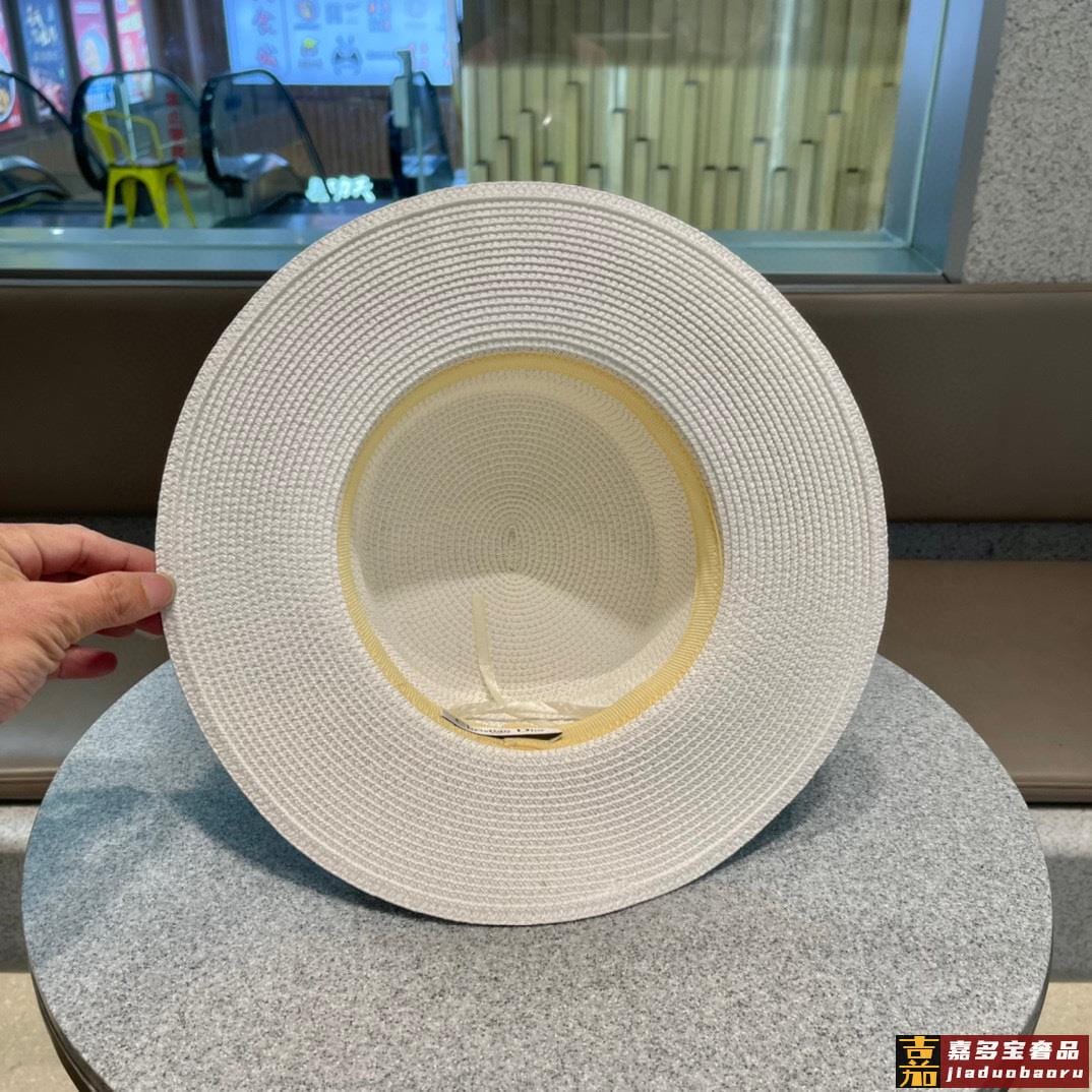 迪奥早春新款原单韩版休闲大帽檐草编遮阳草帽沙滩风简约大方百搭
