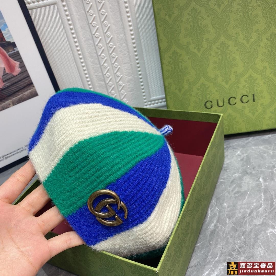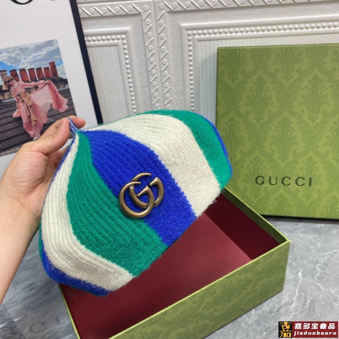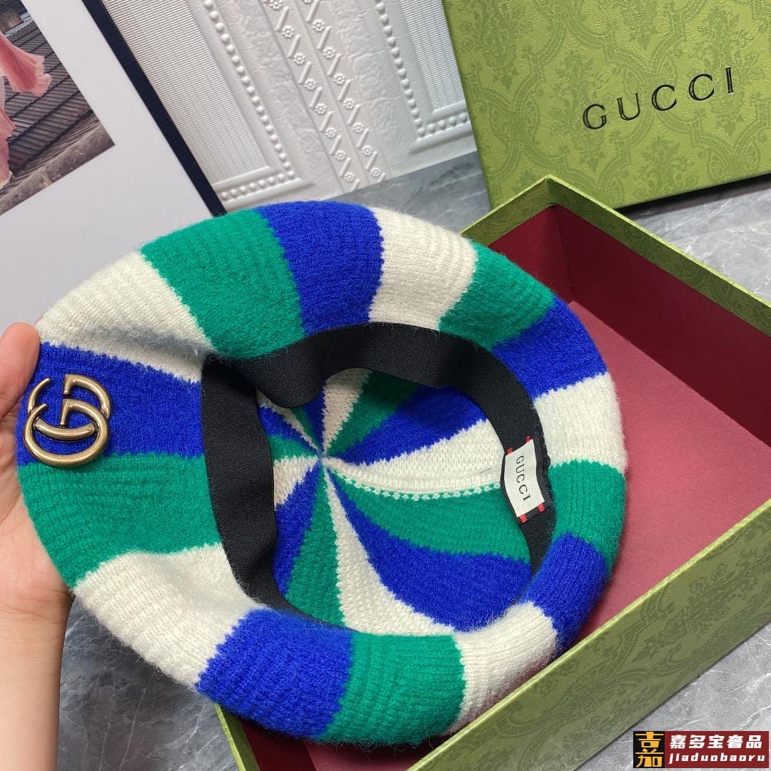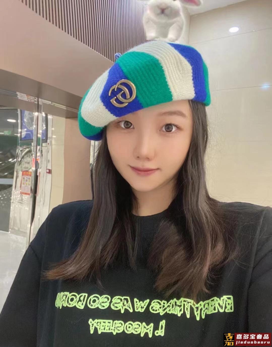 古奇秋冬新款拼色贝雷帽针织毛线帽贝雷帽秋冬时尚新款