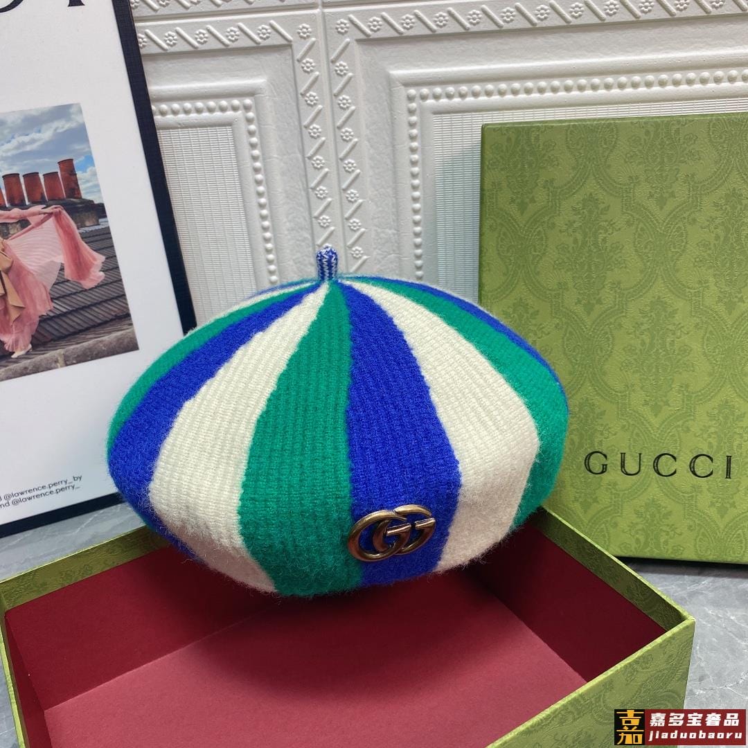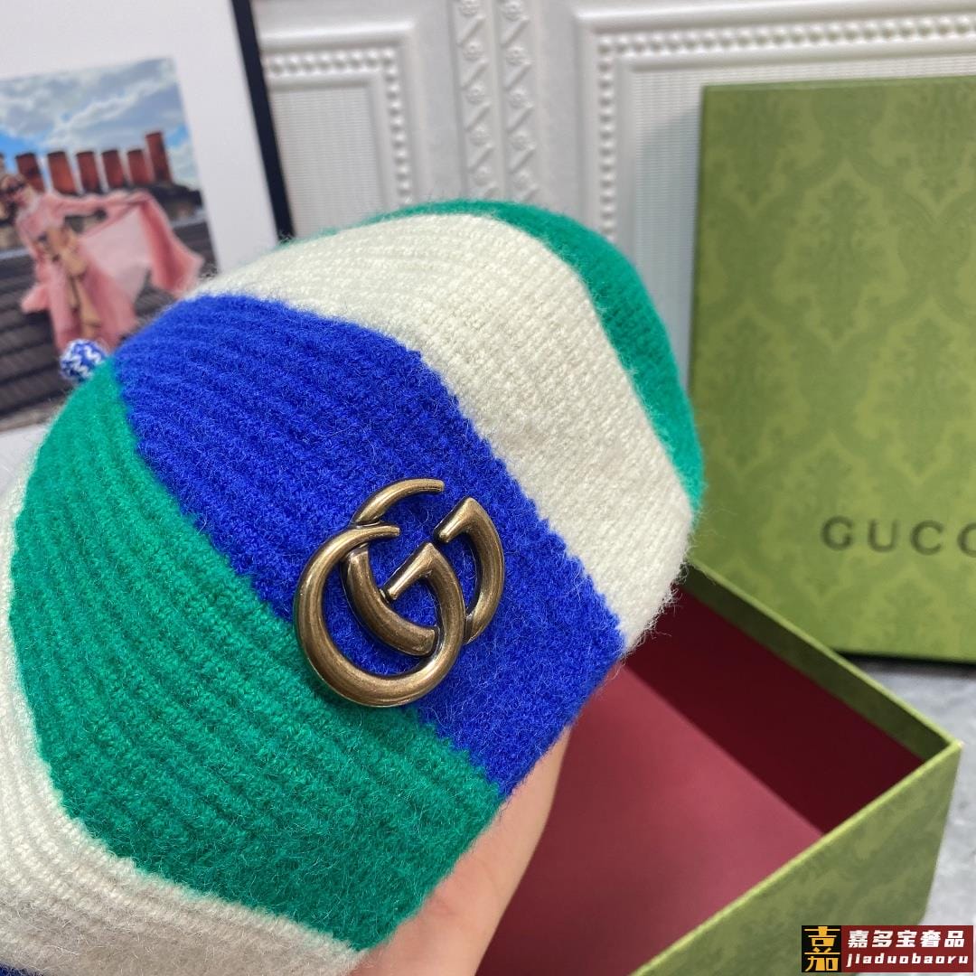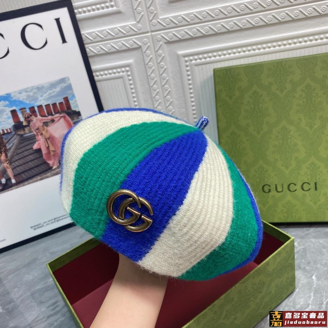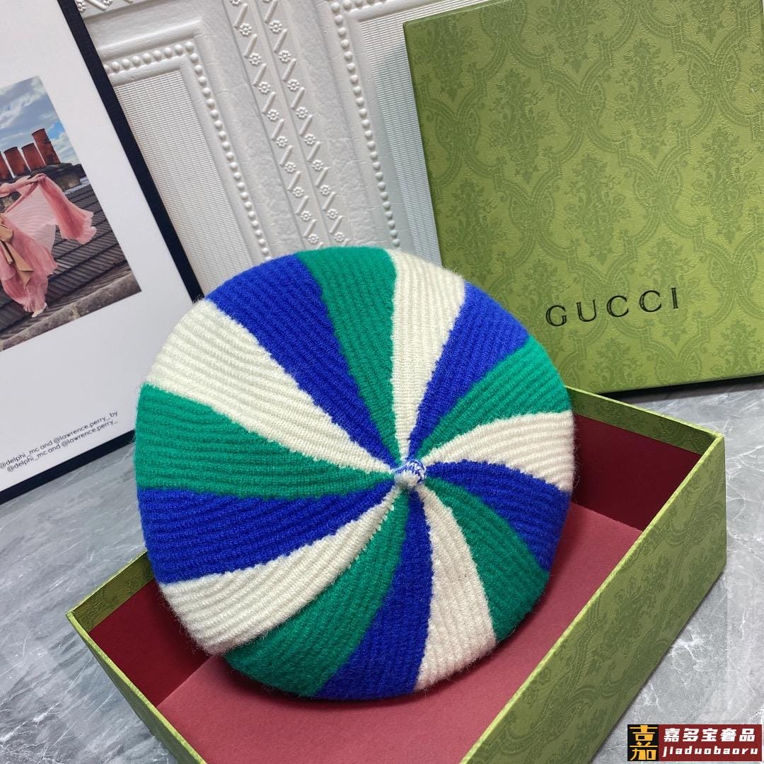 古奇秋冬新款拼色贝雷帽针织毛线帽贝雷帽秋冬时尚新款