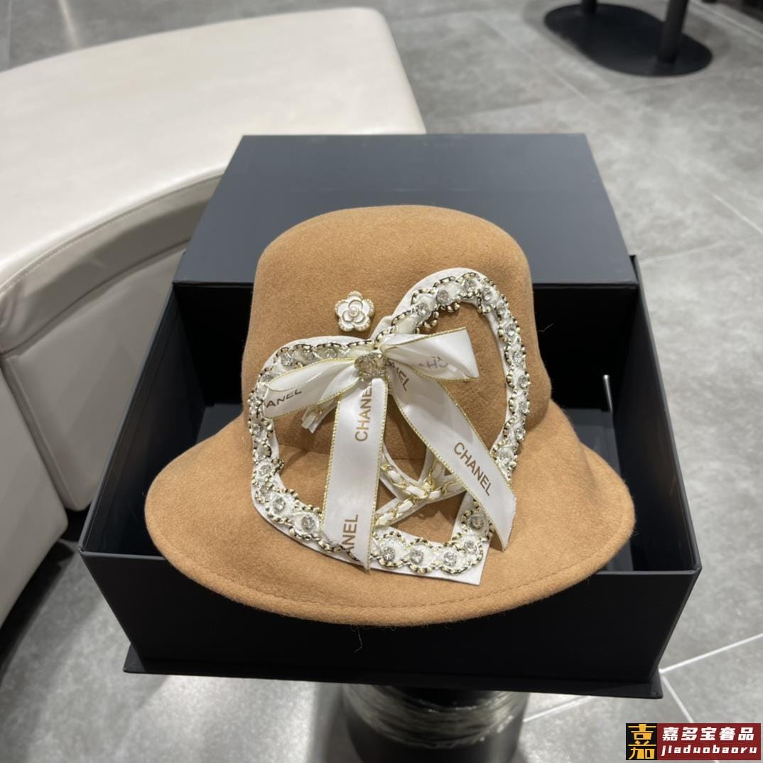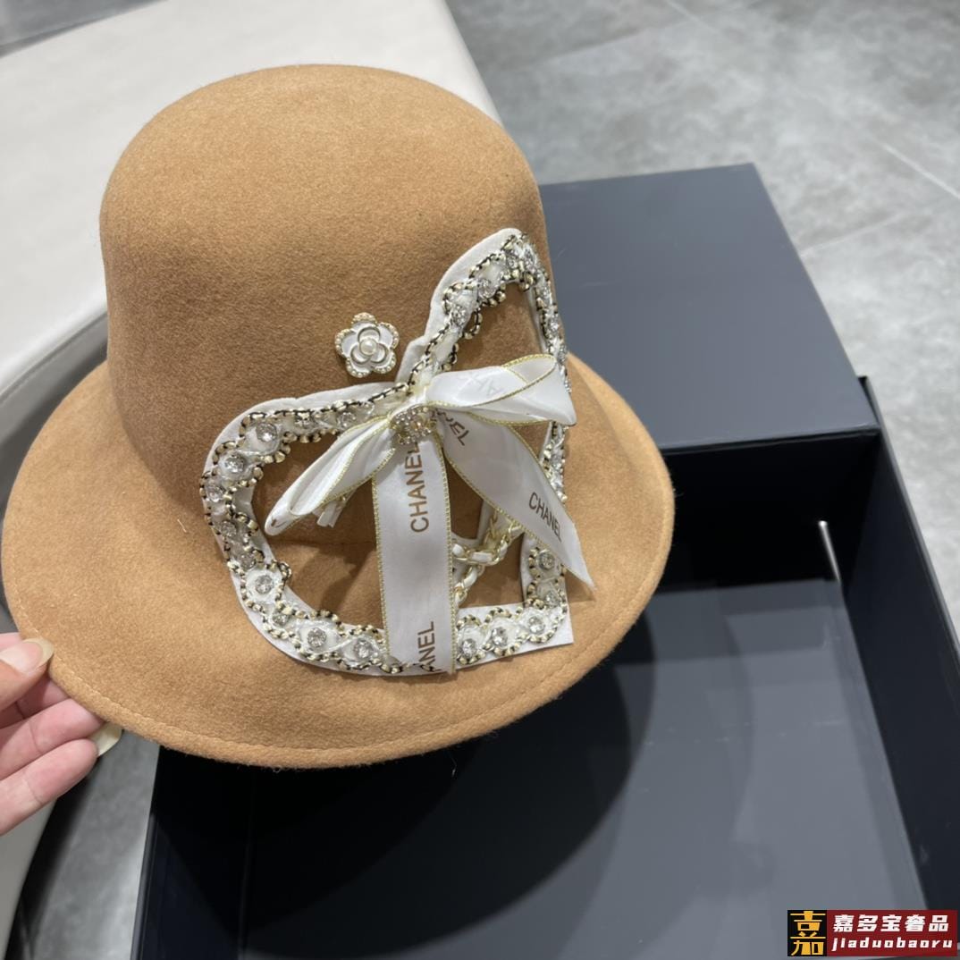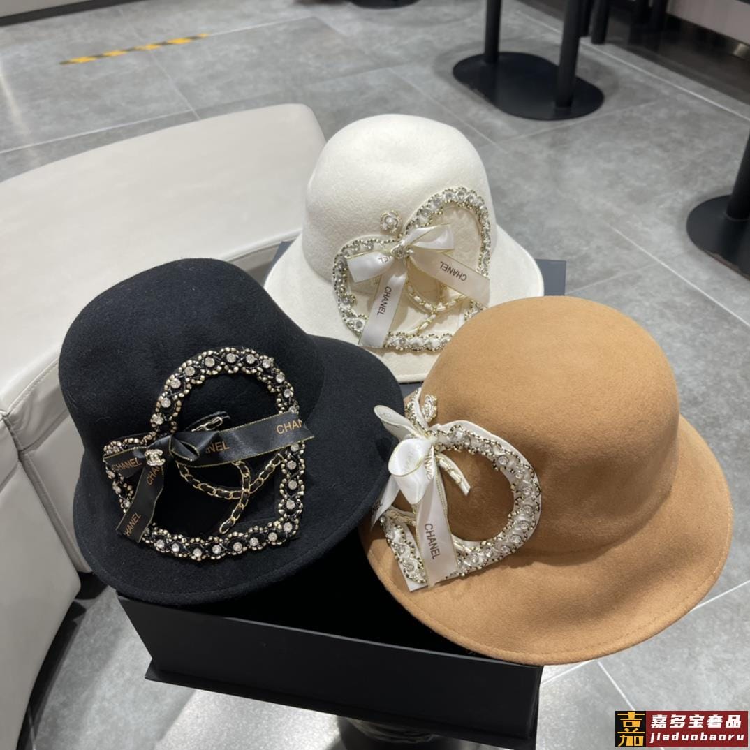香奈儿秋冬新款韩版爱心羊绒毛盆帽大帽檐遮阳帽草帽细节控简约大