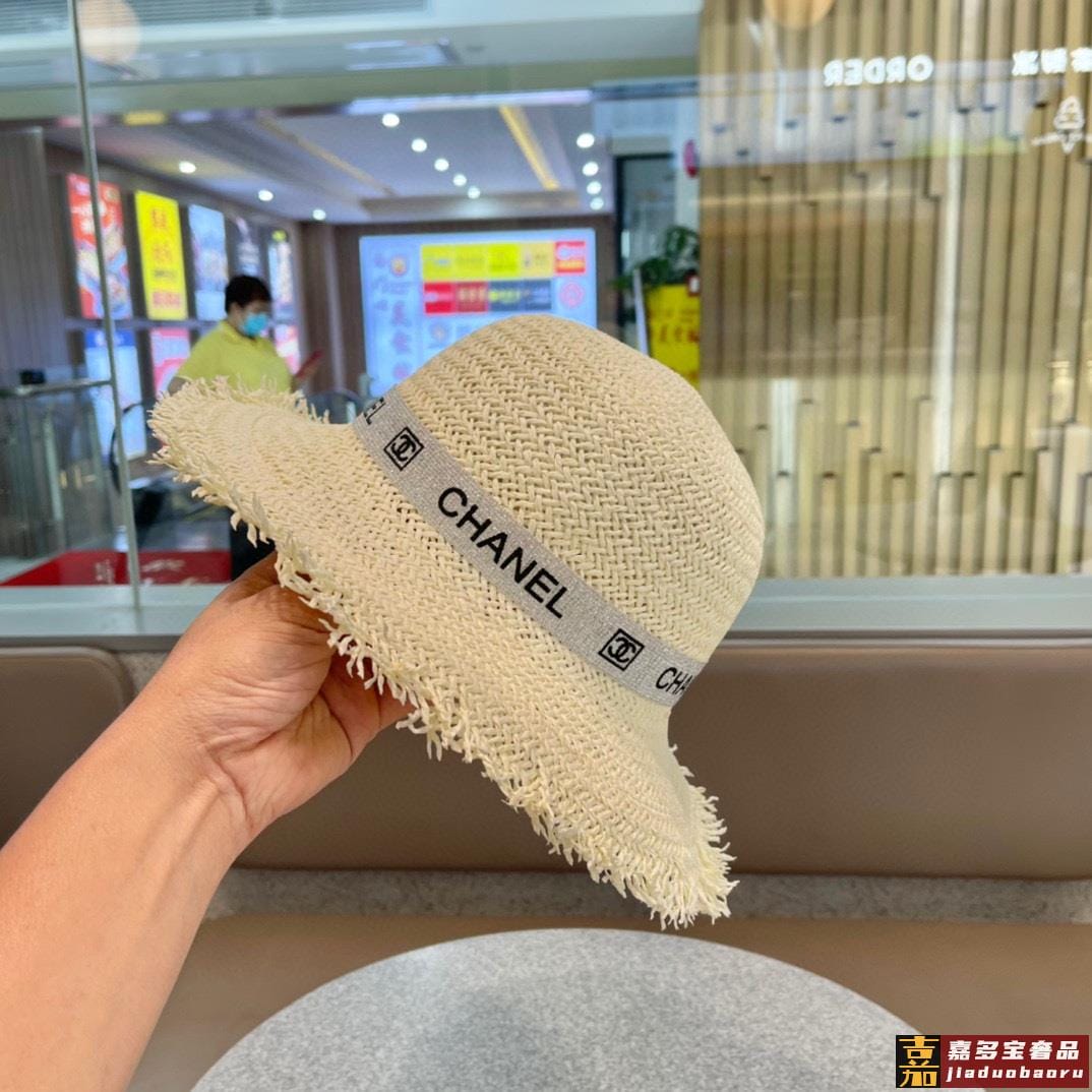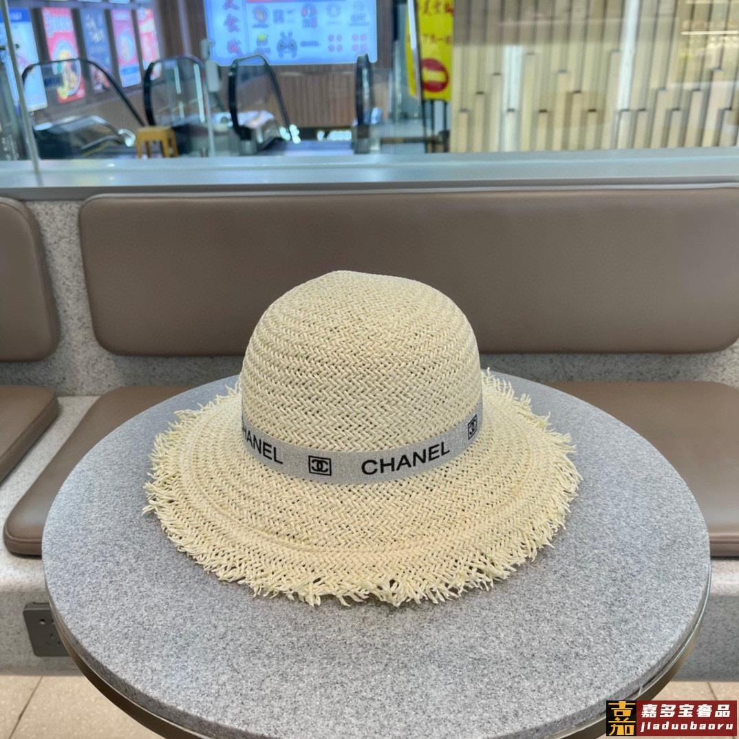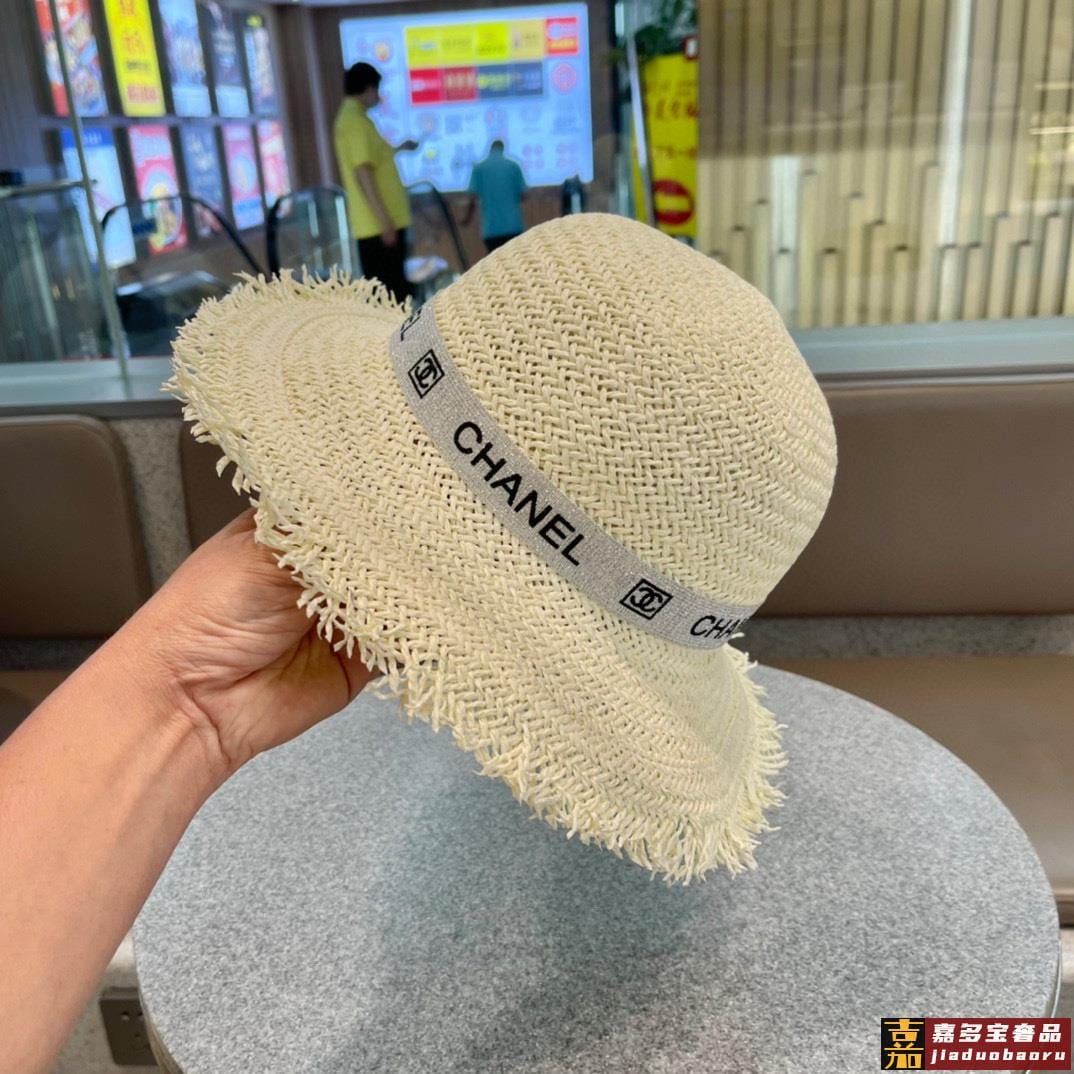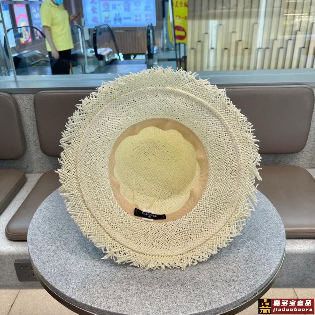 香奈儿新款韩版手勾拉菲草须大帽檐遮阳帽草帽细节控简约大方百搭
