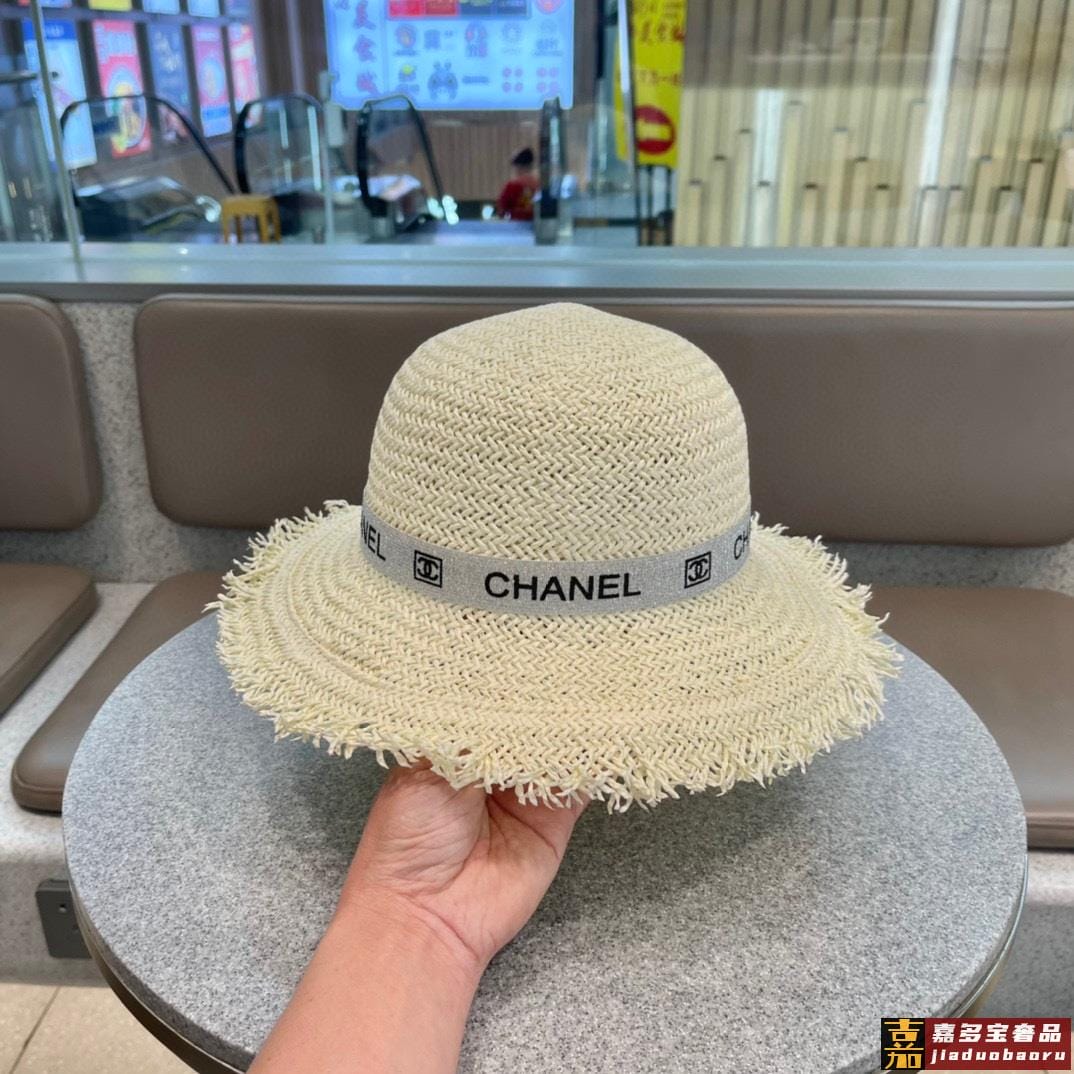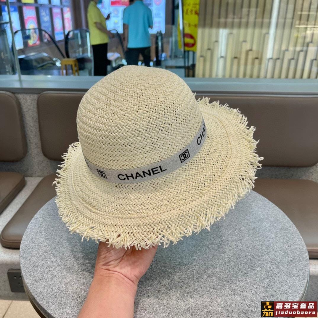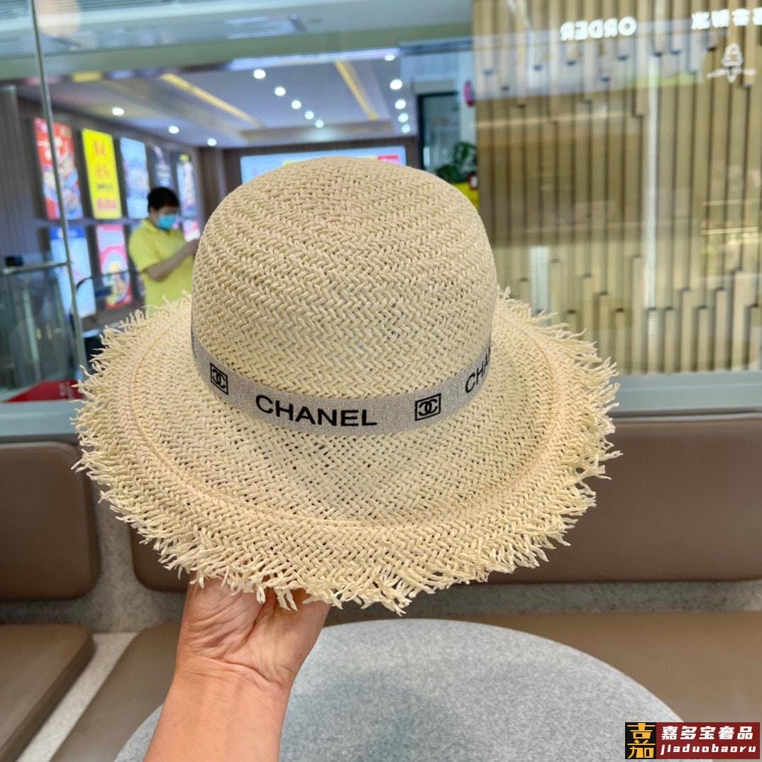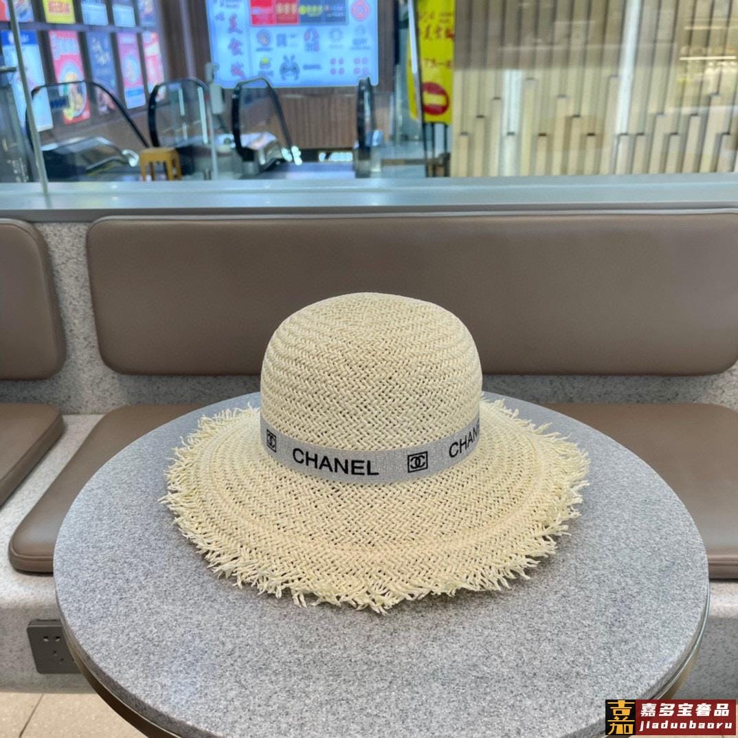 香奈儿新款韩版手勾拉菲草须大帽檐遮阳帽草帽细节控简约大方百搭