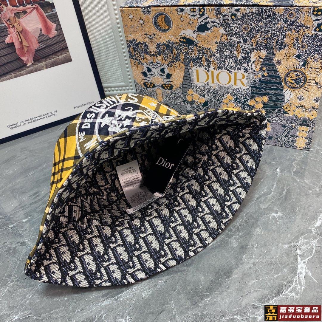 迪奥官网最新双面满印迪奥渔夫帽特别显脸小有型不软塌可随意折叠