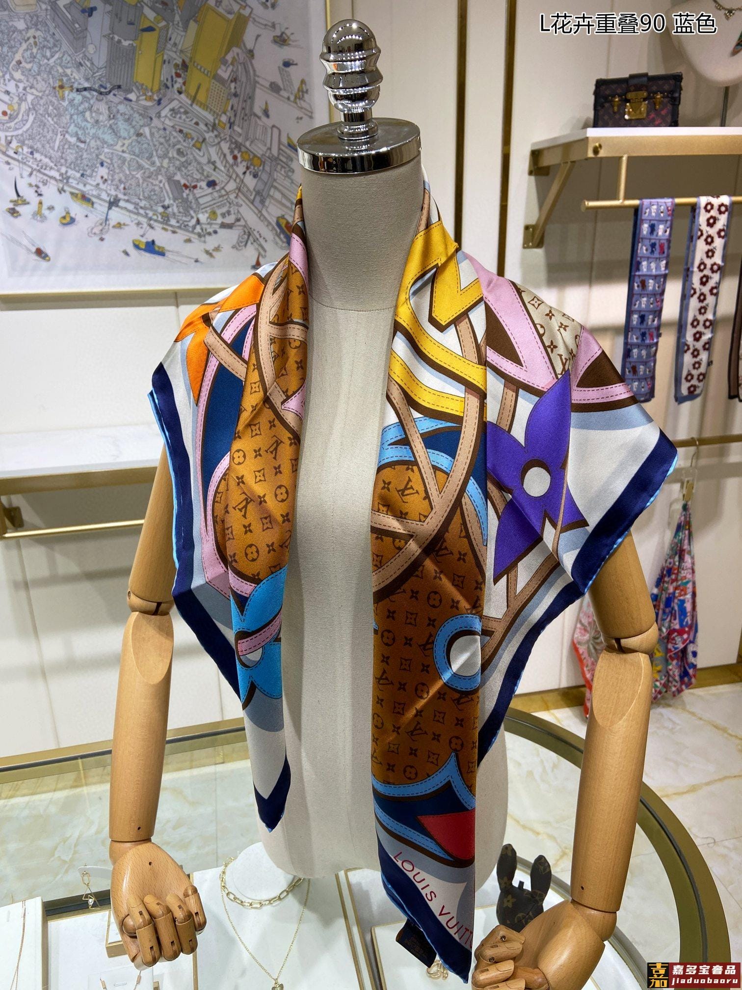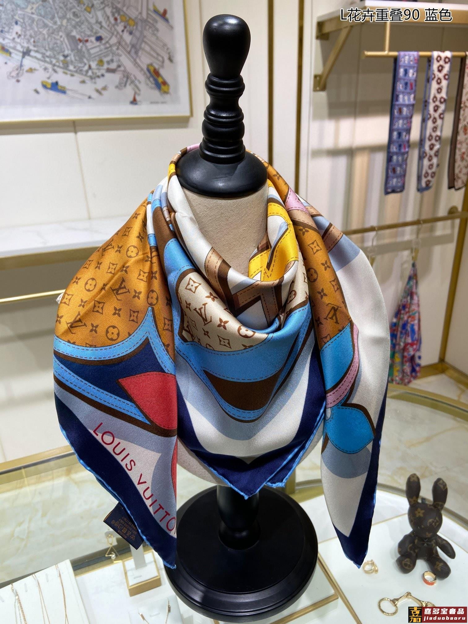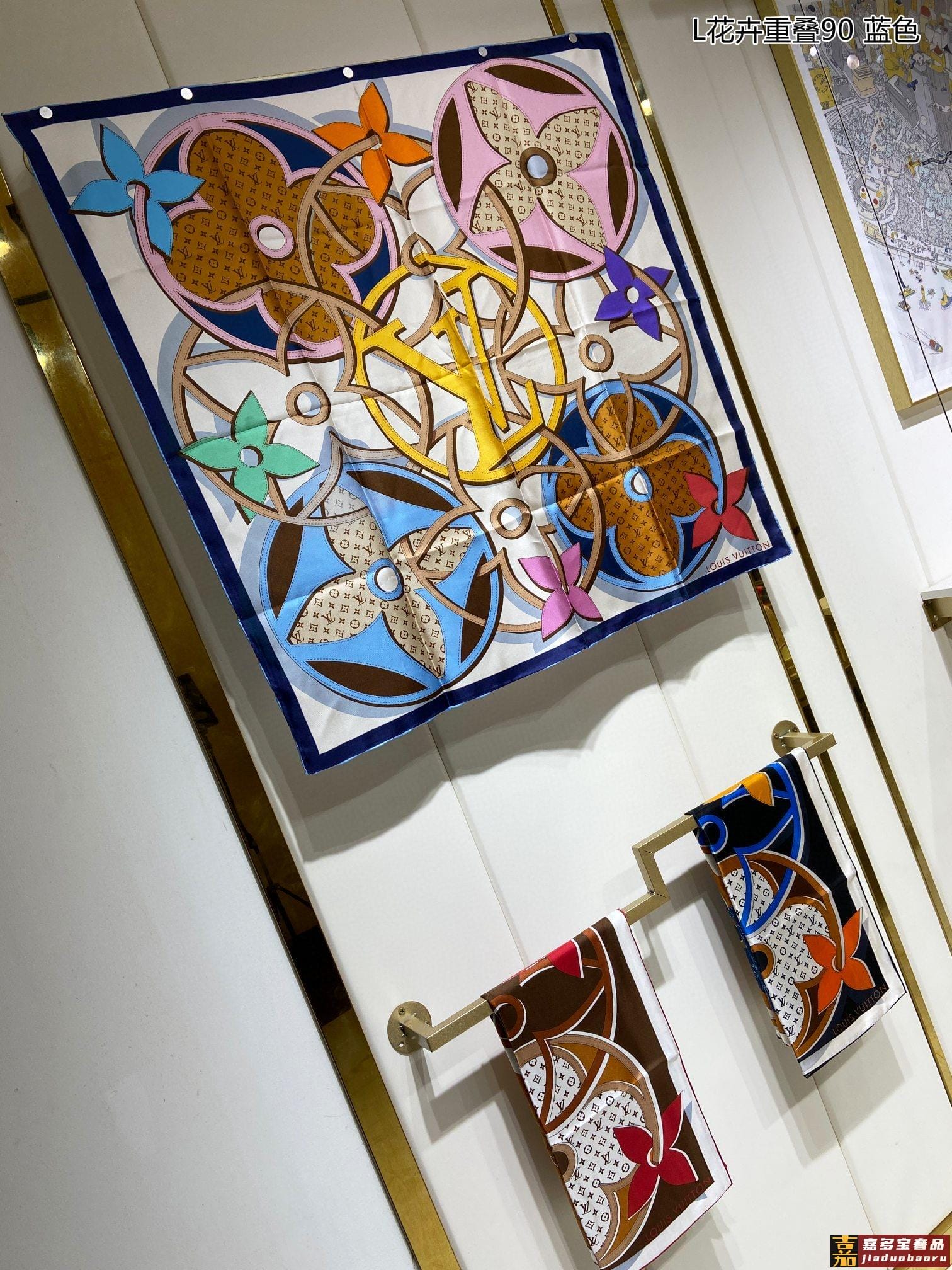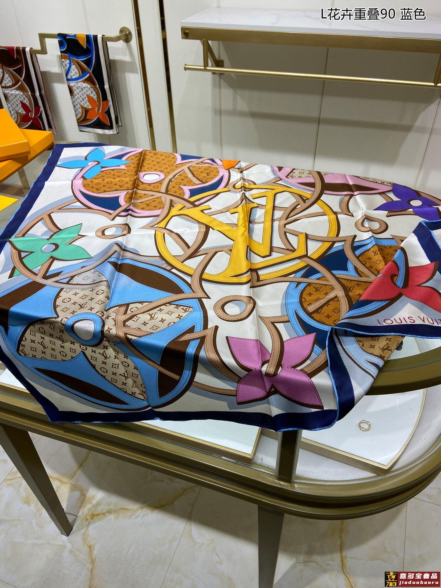 真丝新品专柜同步真心赞驴家花卉重叠真丝方巾中央标识与缤纷花卉