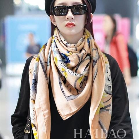 真丝新品专柜同步真心赞驴家花卉重叠真丝方巾中央标识与缤纷花卉