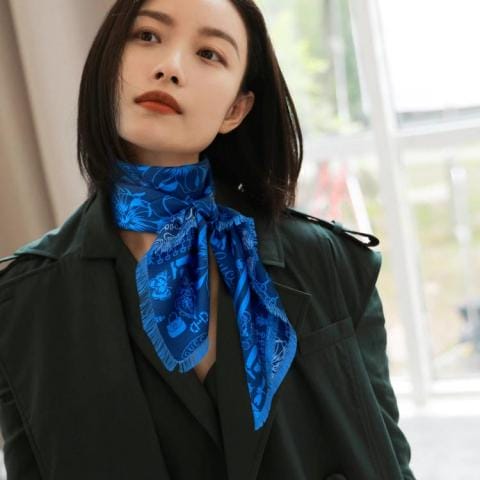 上新家最最新的专柜主打品牌小图标真丝方巾花卉系列度假及日常都