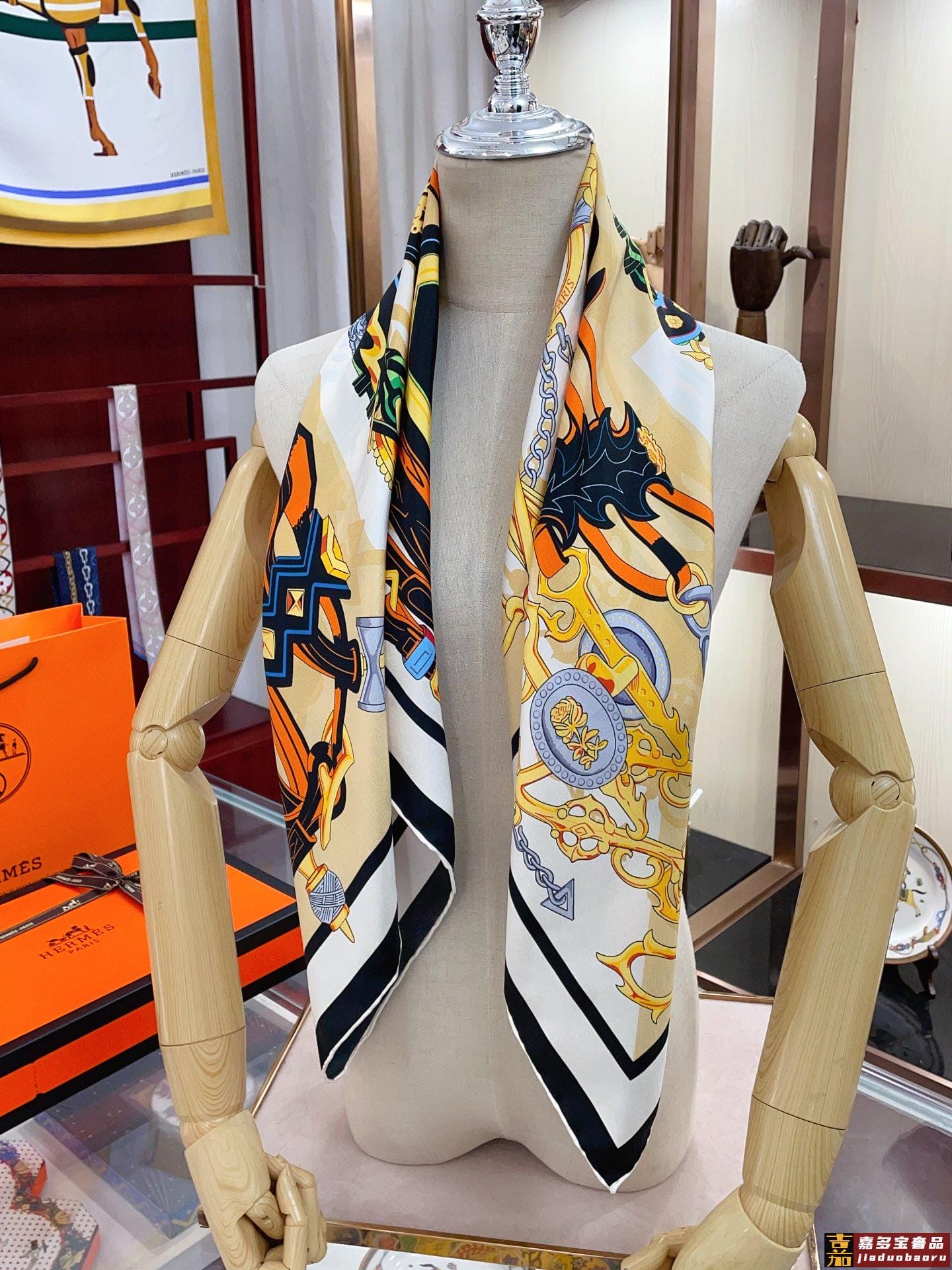皮带方巾顶级真丝专柜品质此款丝质斜纹方巾以花纹为背景印有标志