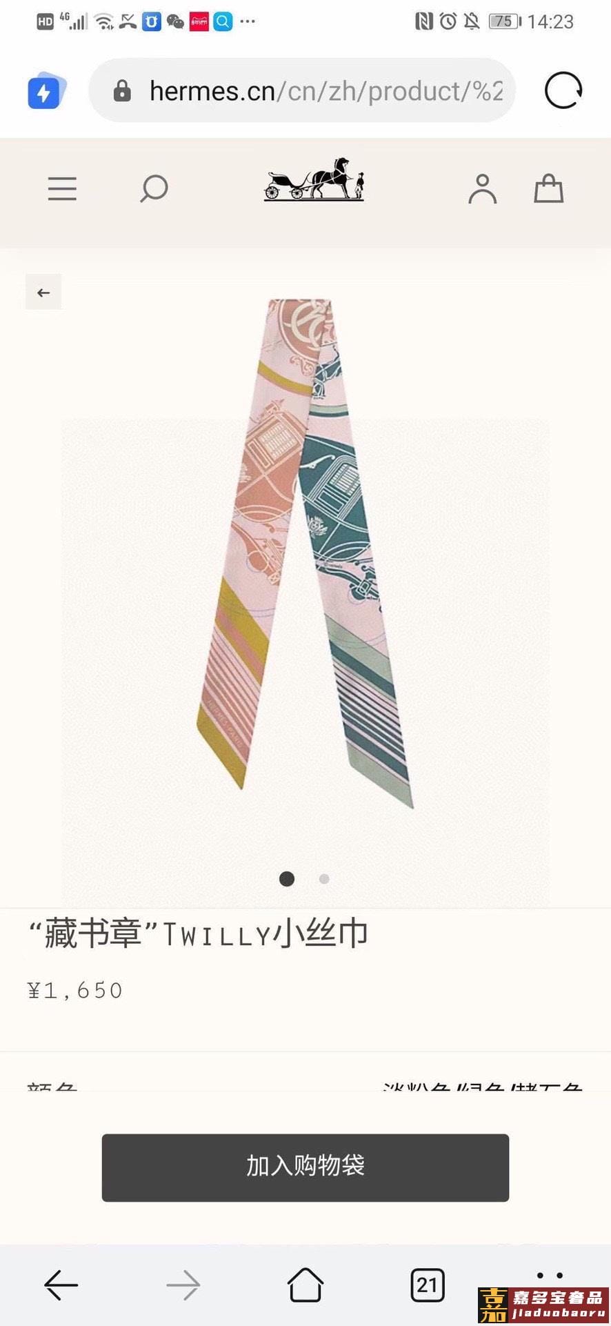 爱马仕藏书章斜纹真丝桑蚕丝这款必备配饰可以多种方式佩戴与任何
