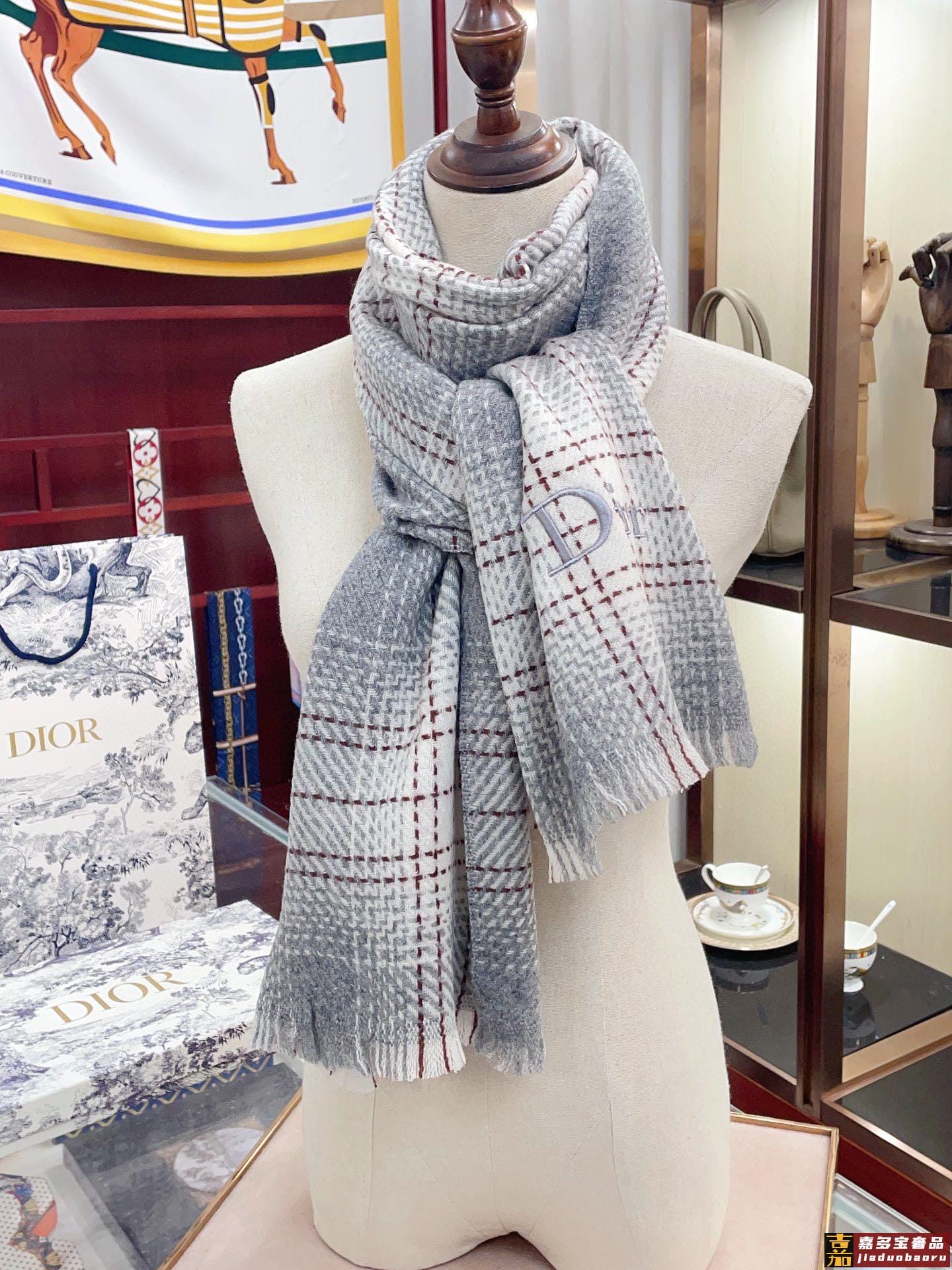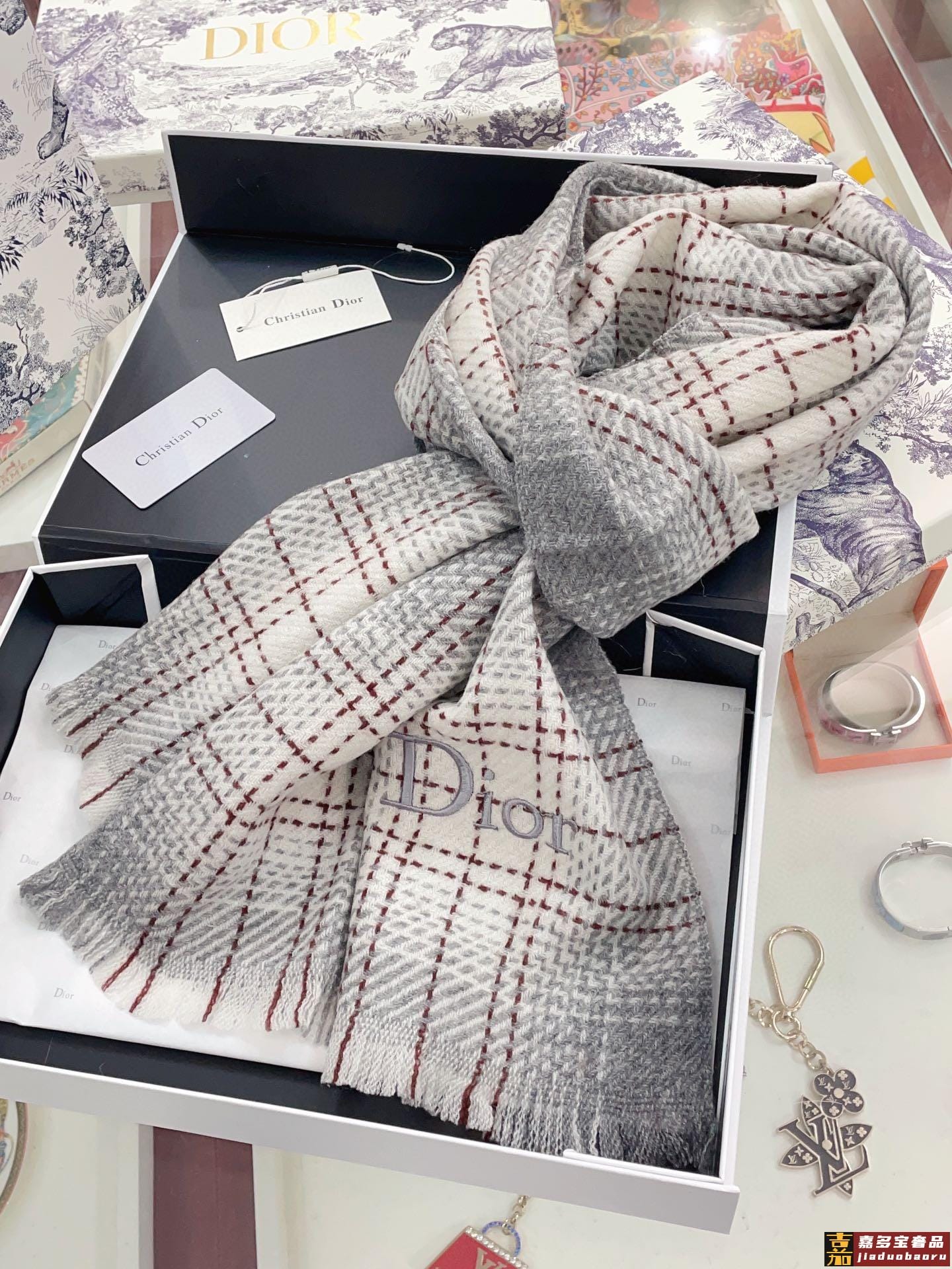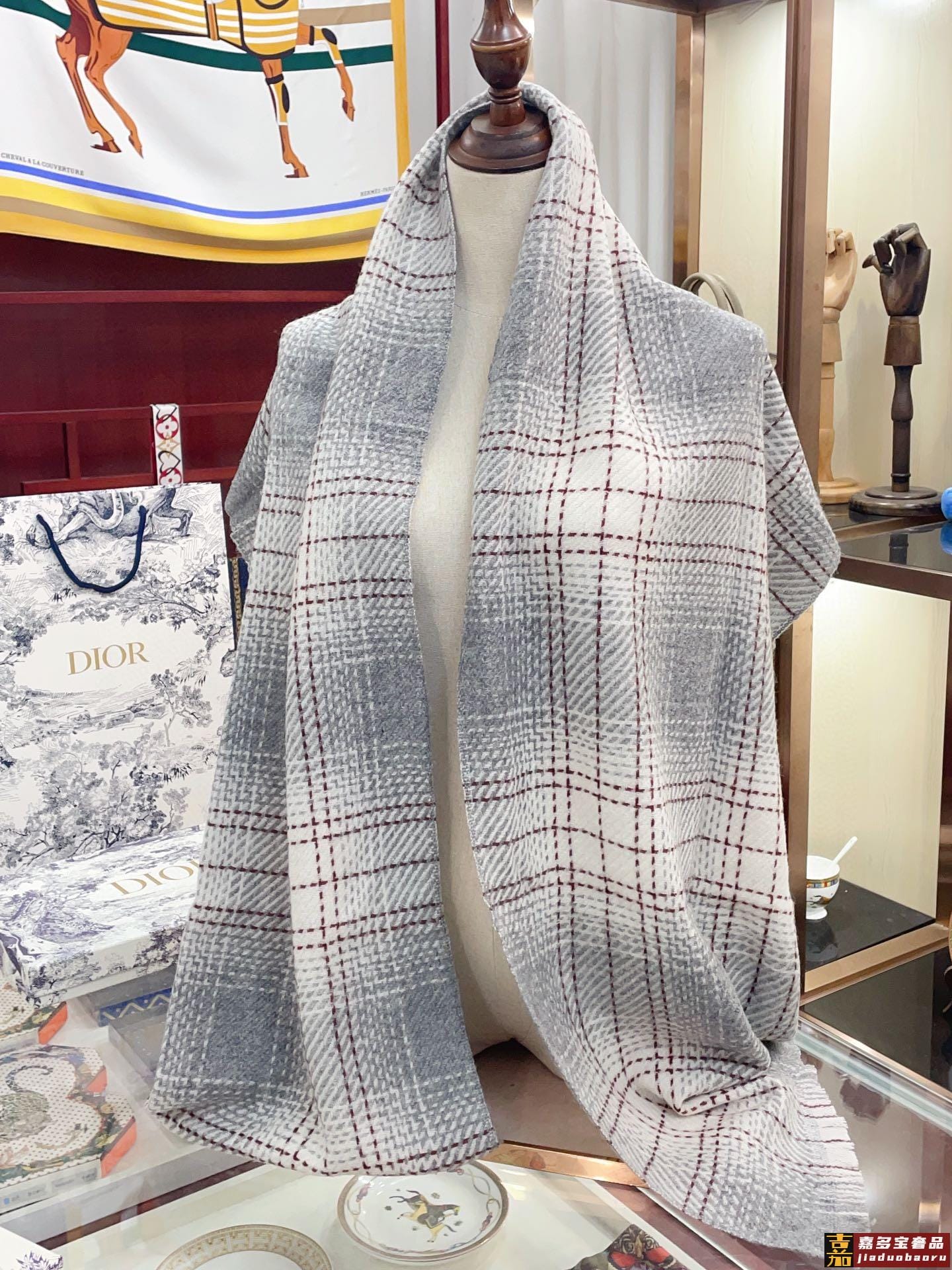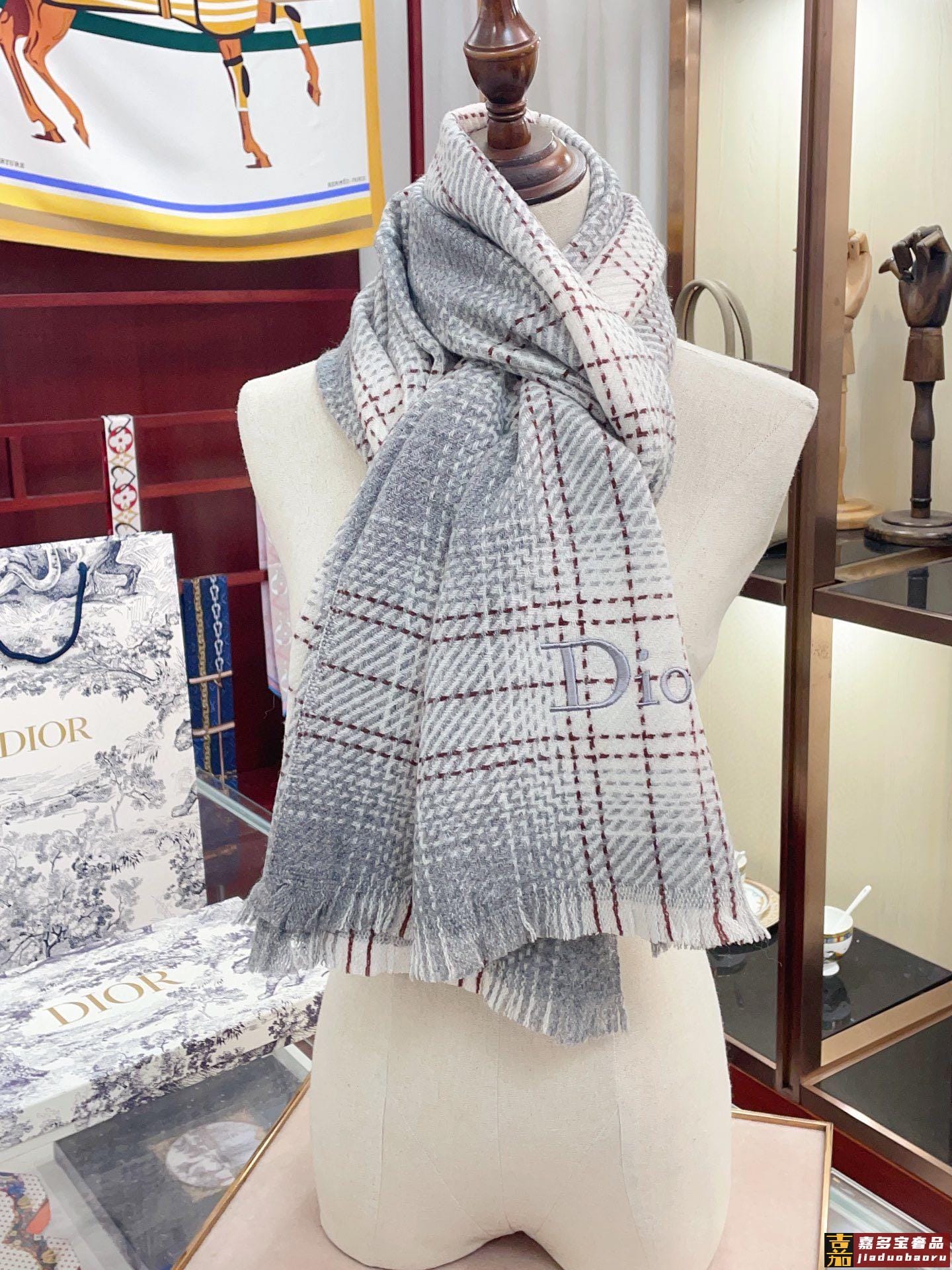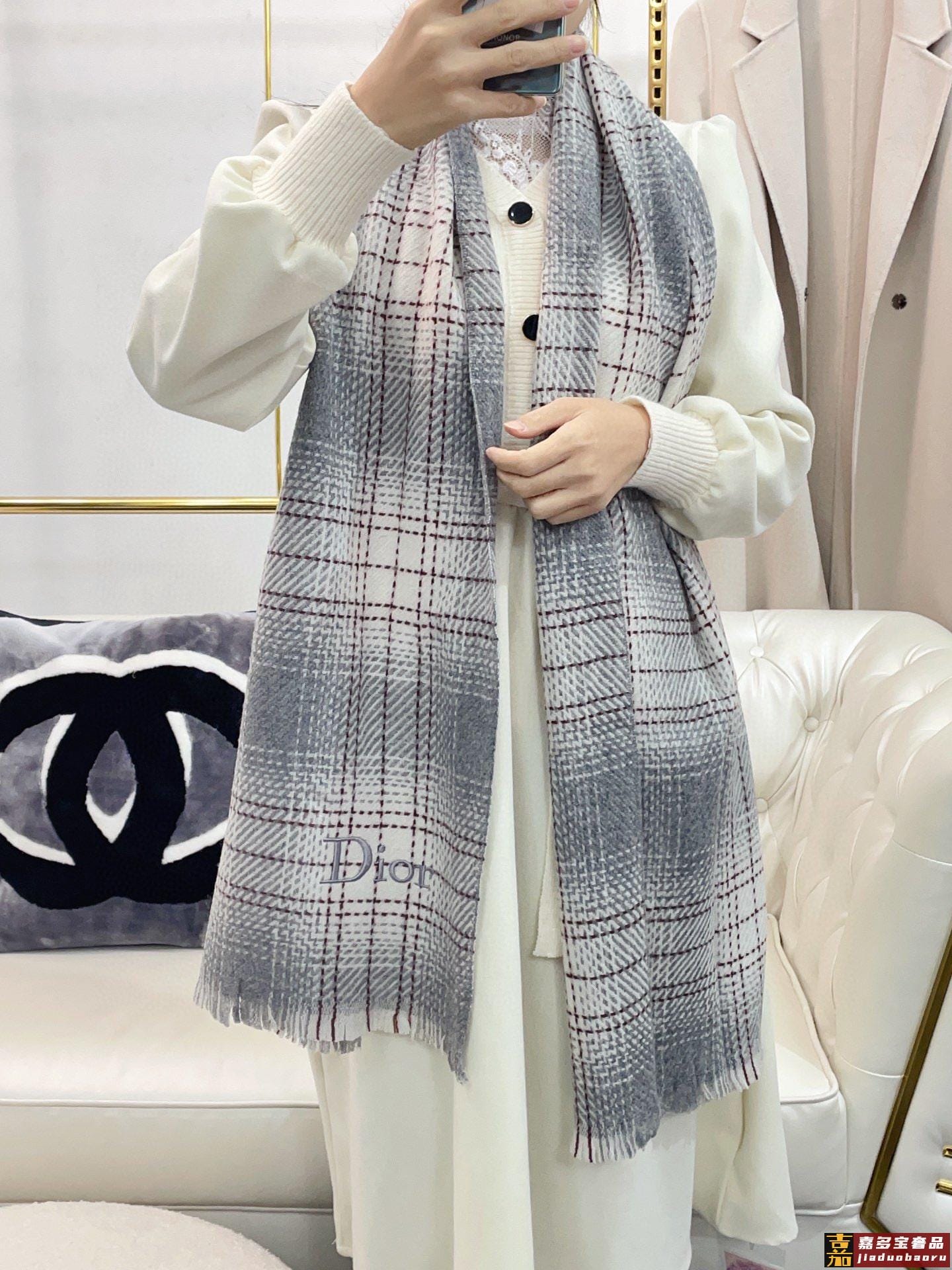 重磅推荐迪奥秋冬新品小格纹色织羊绒轻缩围巾臻选上乘的山羊绒纤
