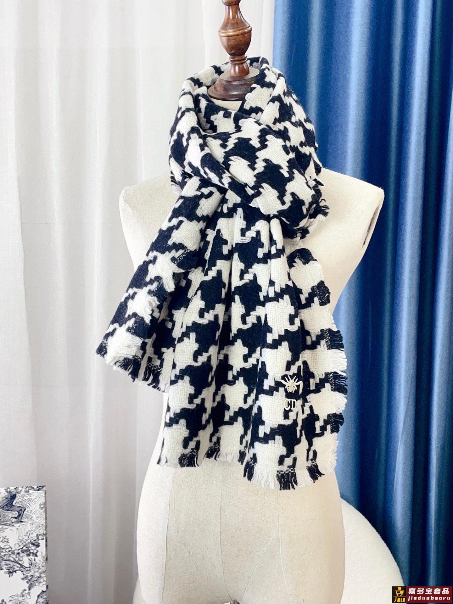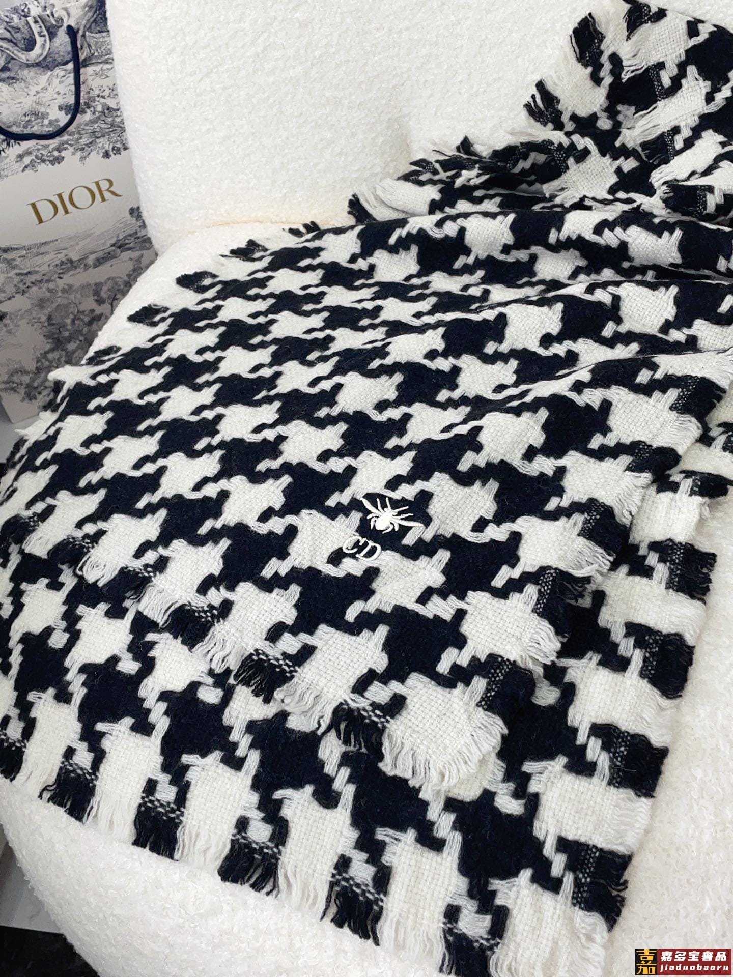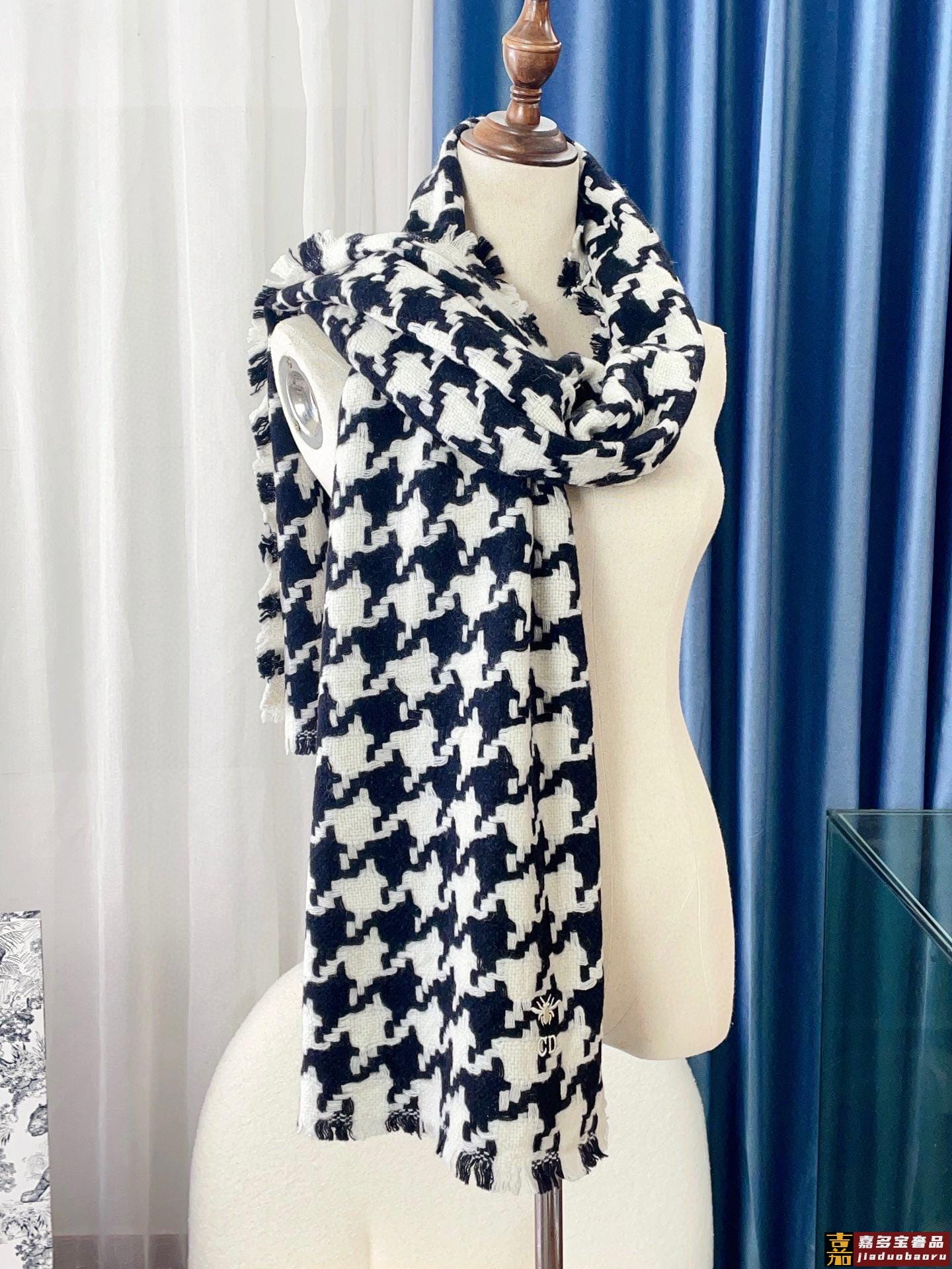 重磅推荐迪奥秋冬新品小格纹色织羊绒轻缩围巾臻选上乘的山羊绒纤