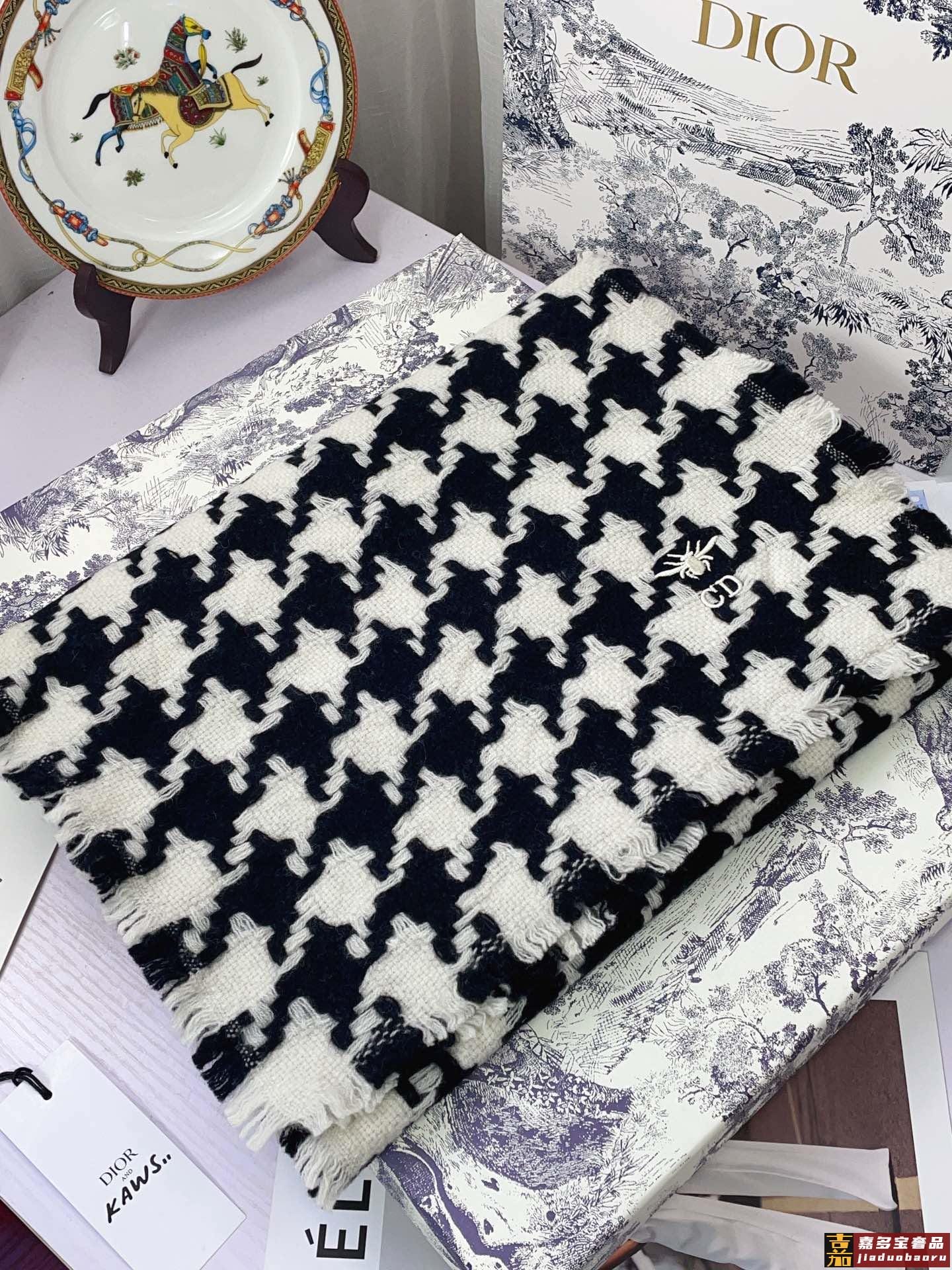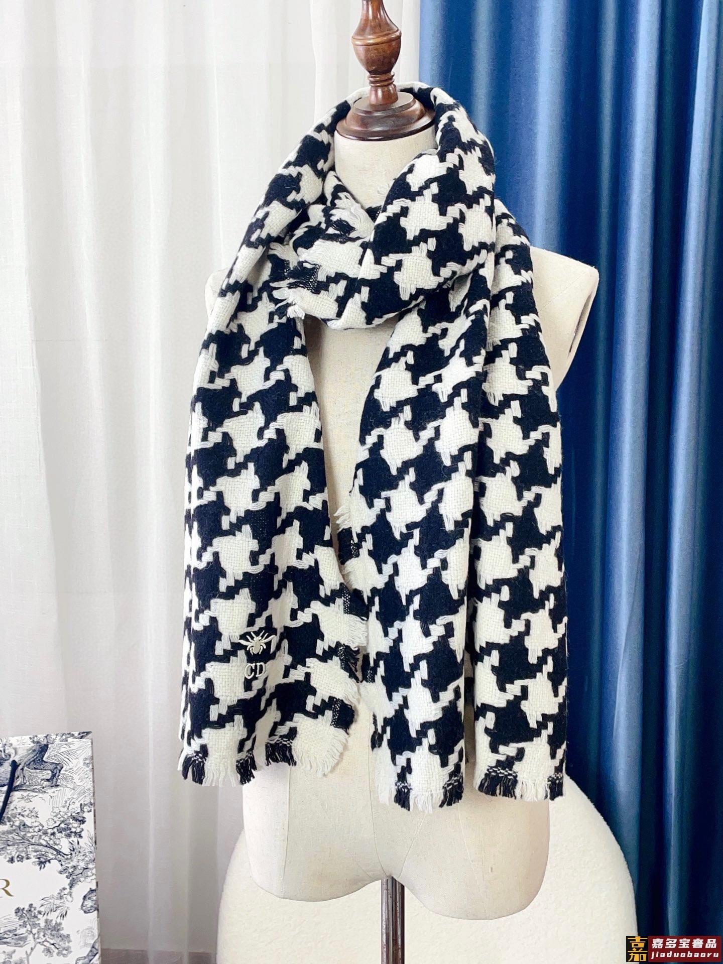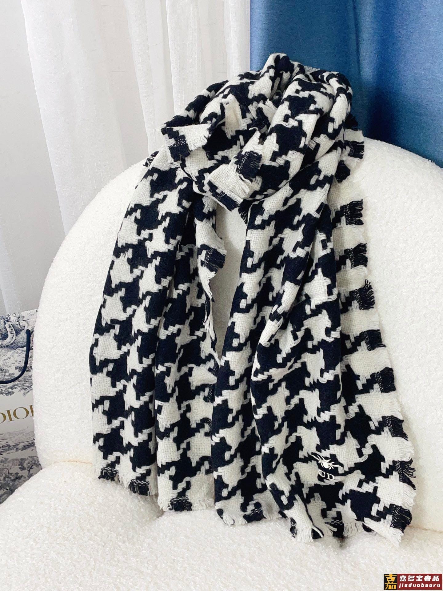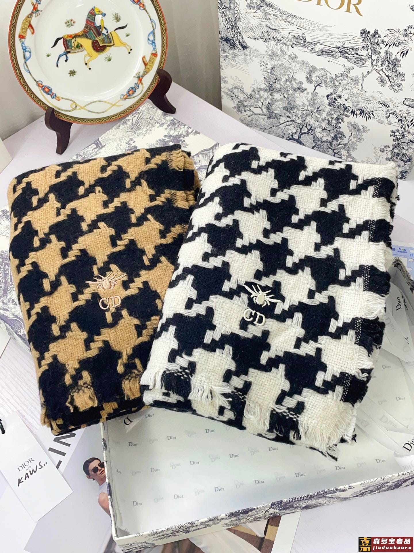 重磅推荐迪奥秋冬新品小格纹色织羊绒轻缩围巾臻选上乘的山羊绒纤
