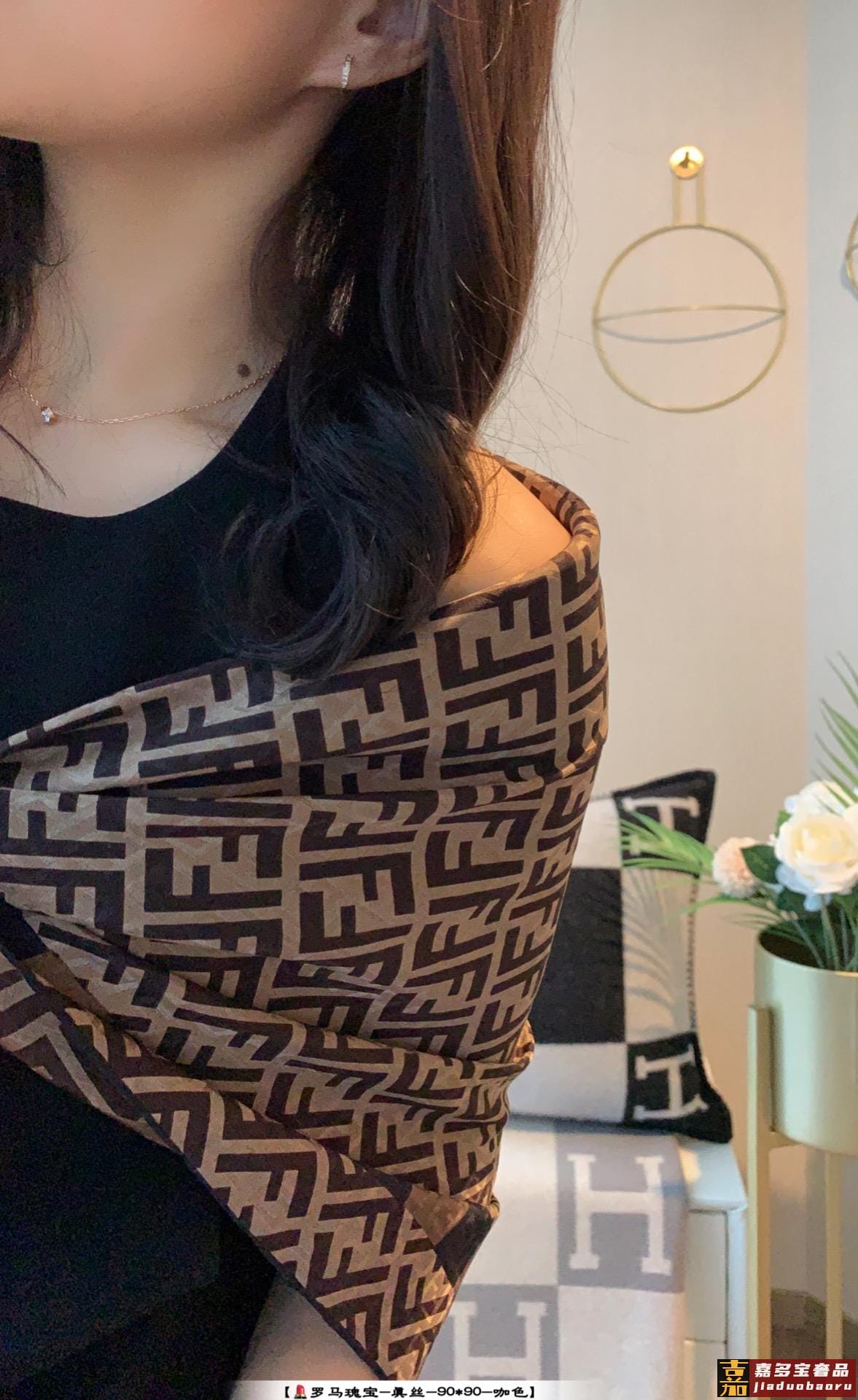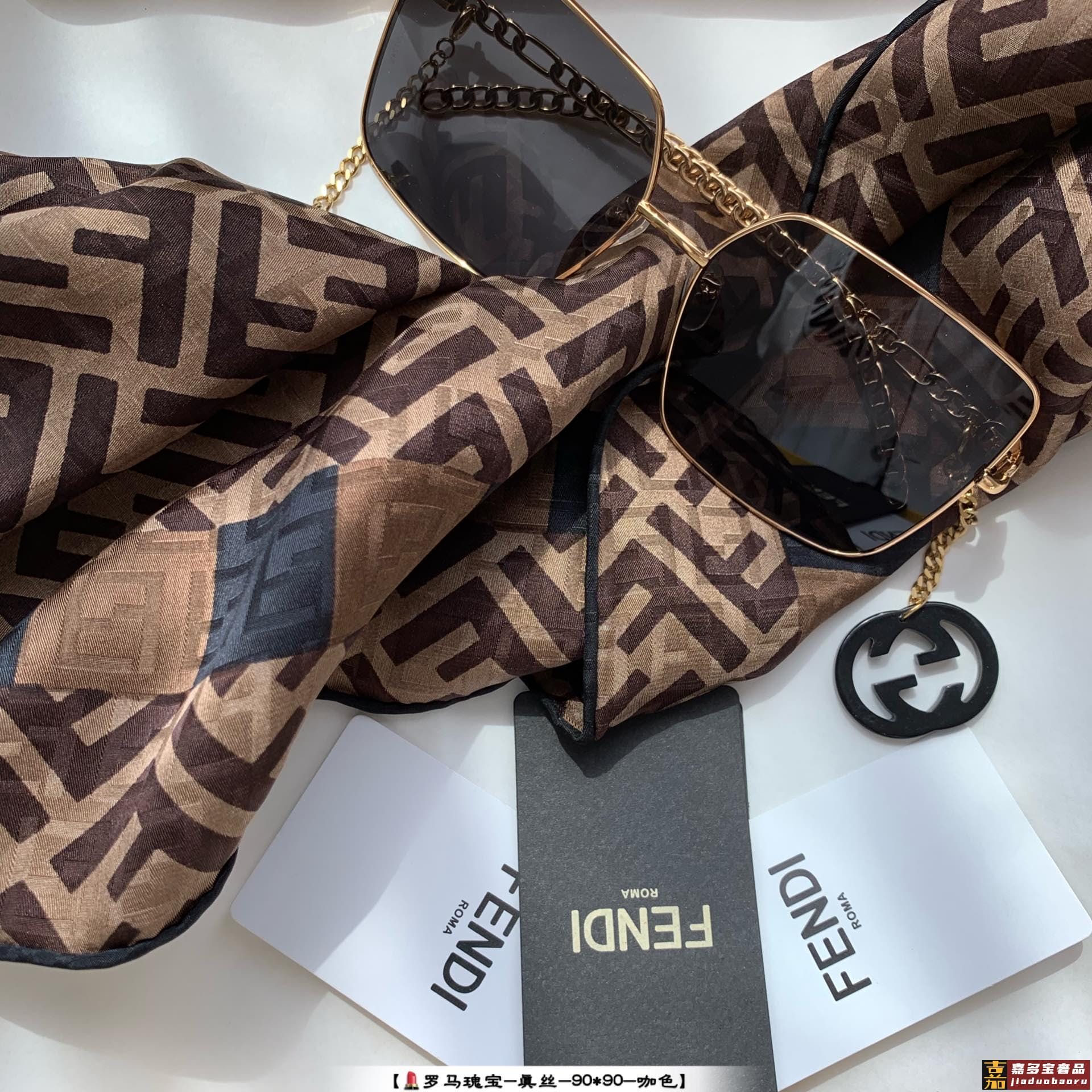 专柜同步上新最最新的专柜主打链条装饰真丝方巾度假及日常都非常
