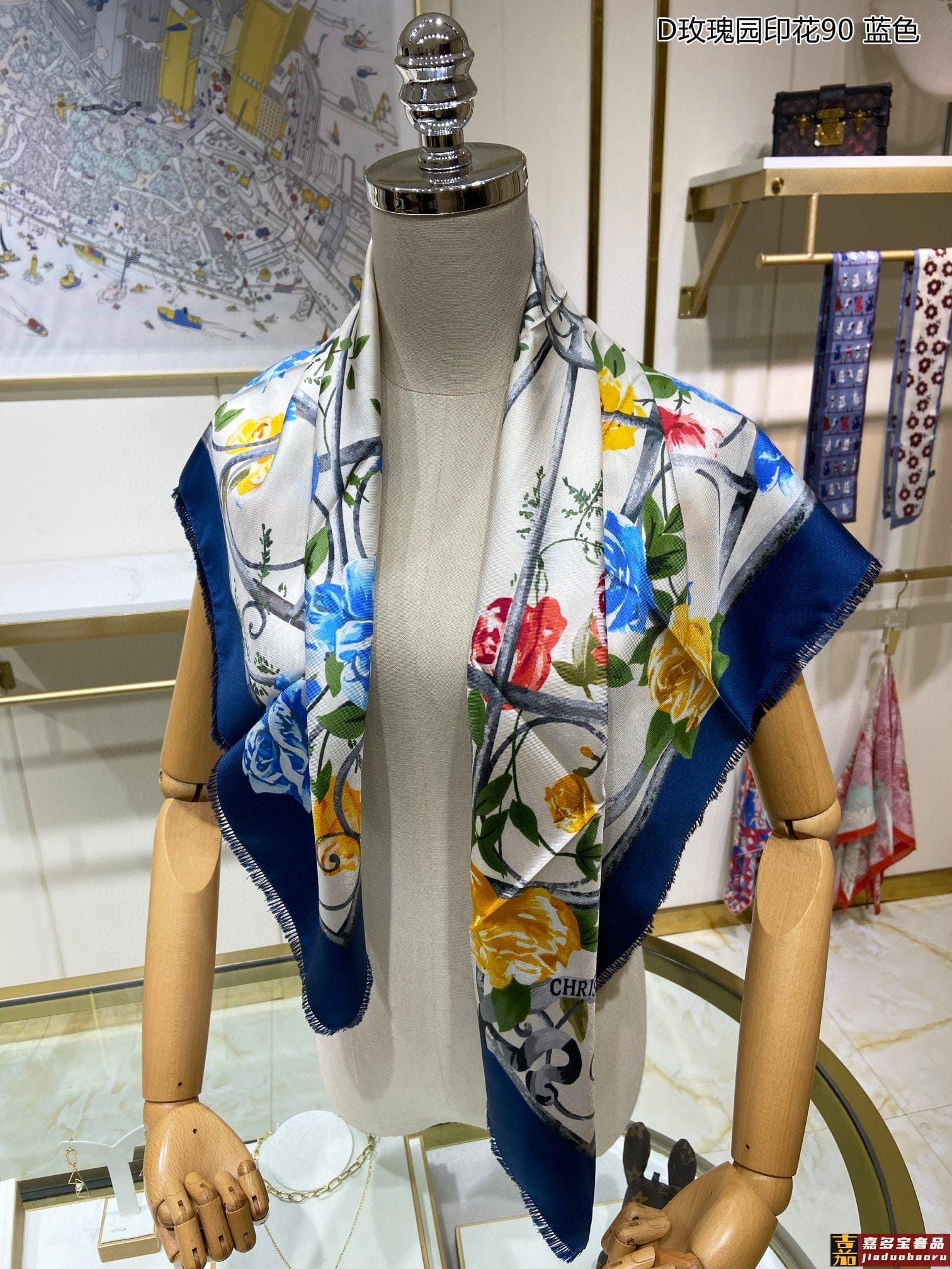 爆款真丝来啦最最新的专柜主打款玫瑰园印花真丝方巾度假及日常都