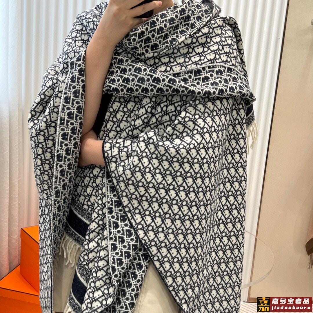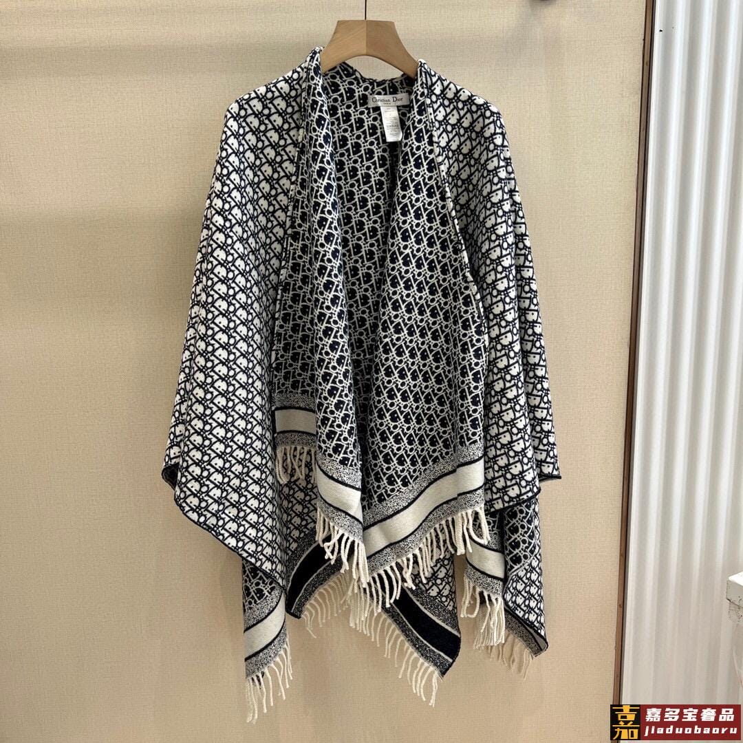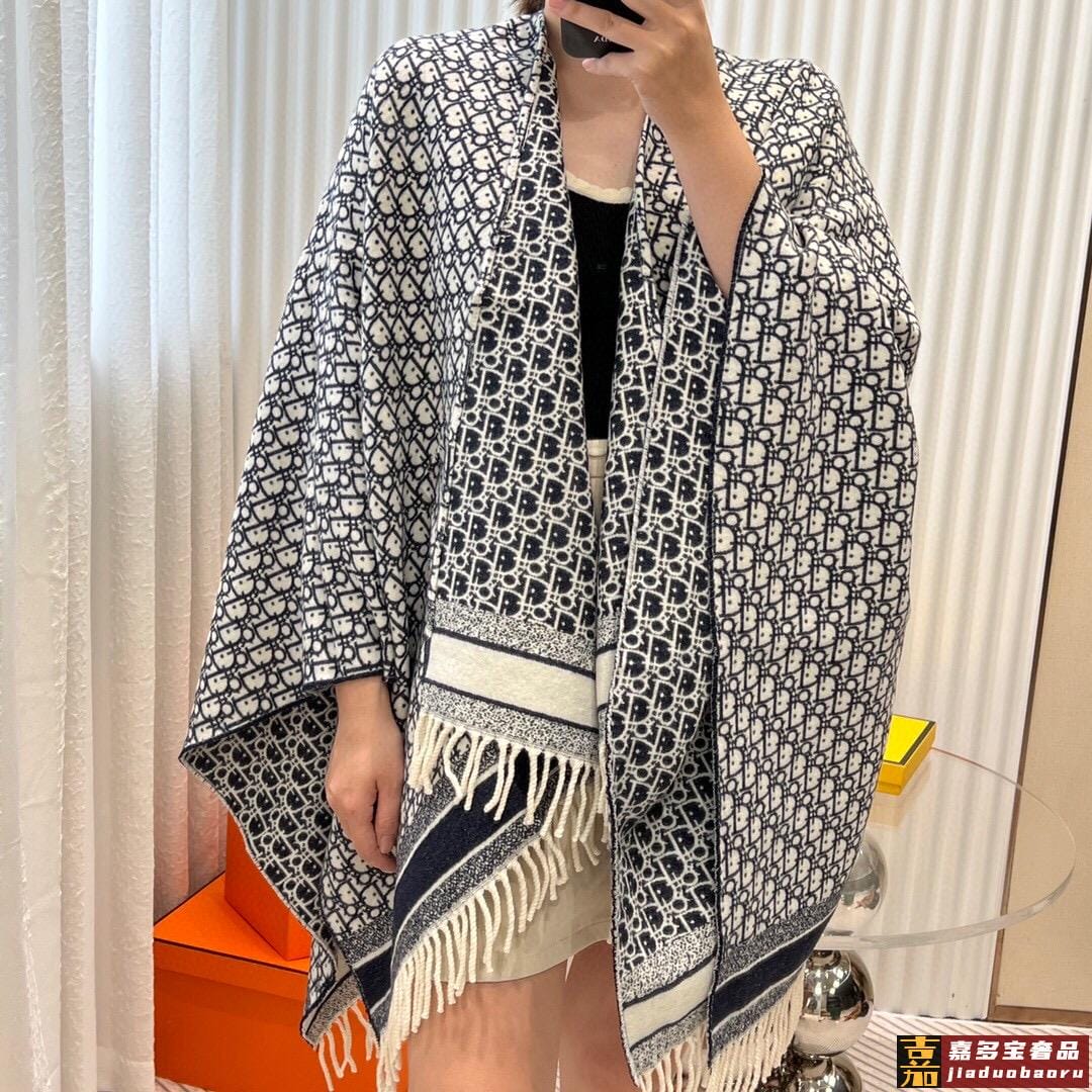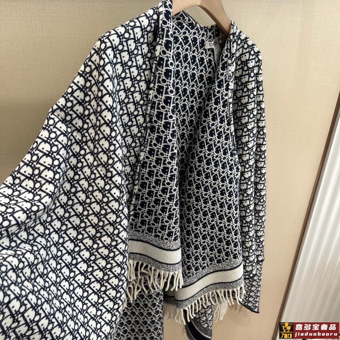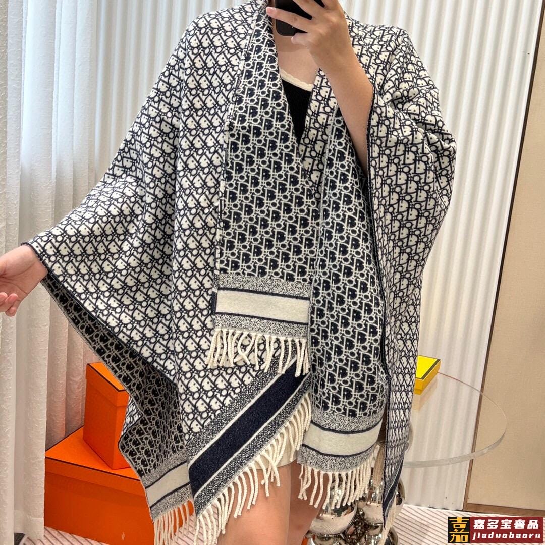 迪奥千鸟格提花印花斗篷材质克什米尔进口羊绒寸超级惊艳的一款超