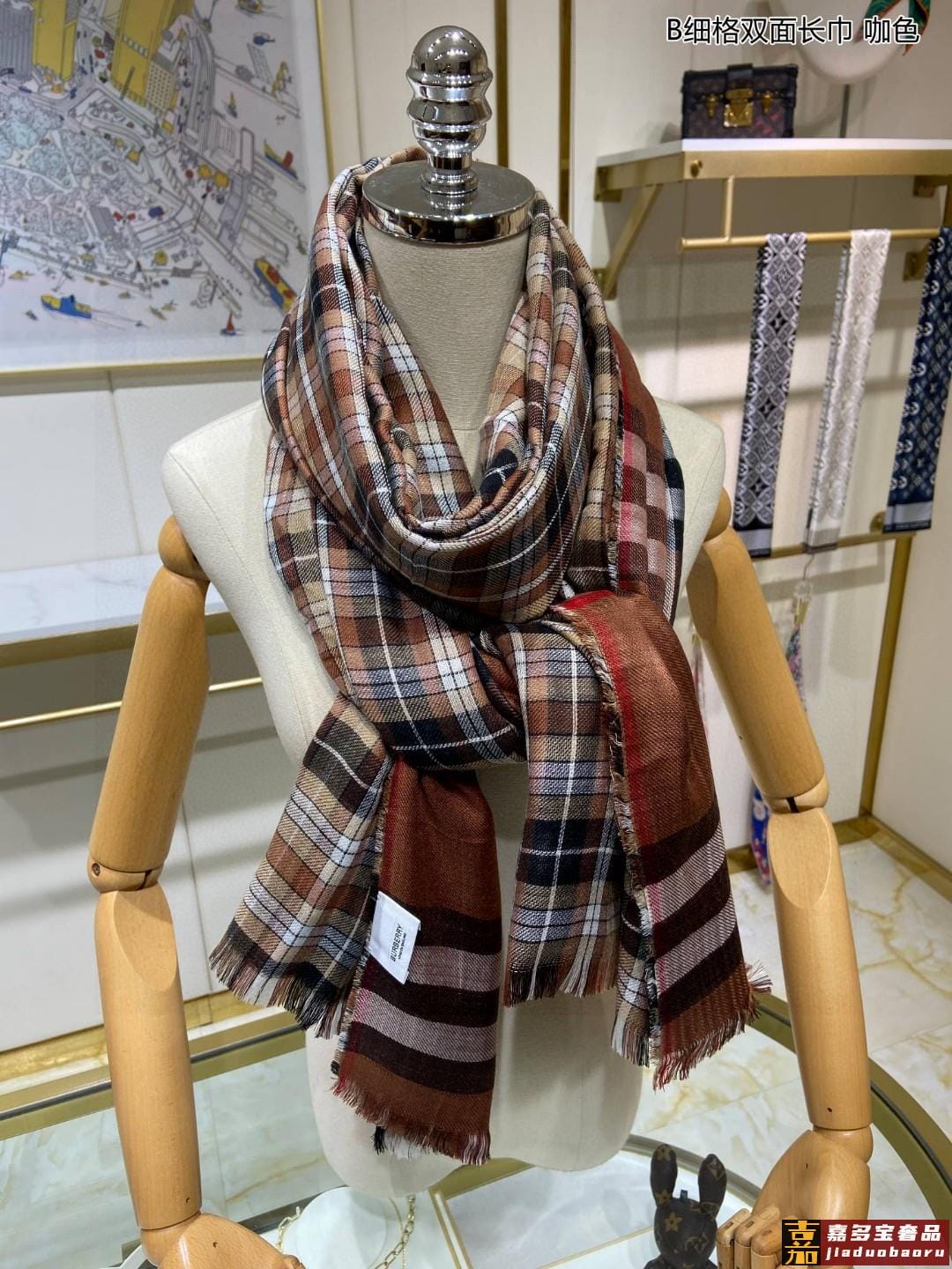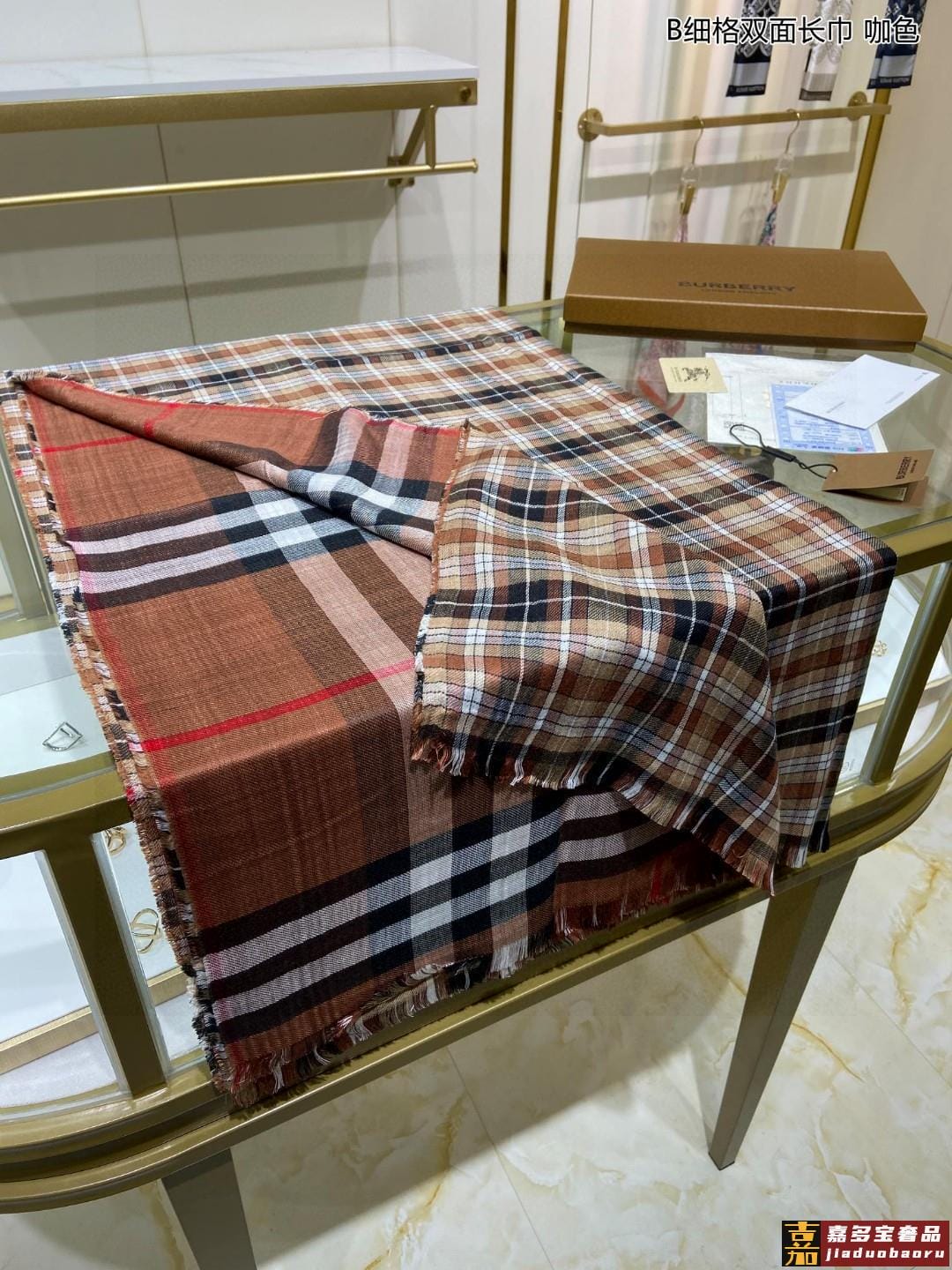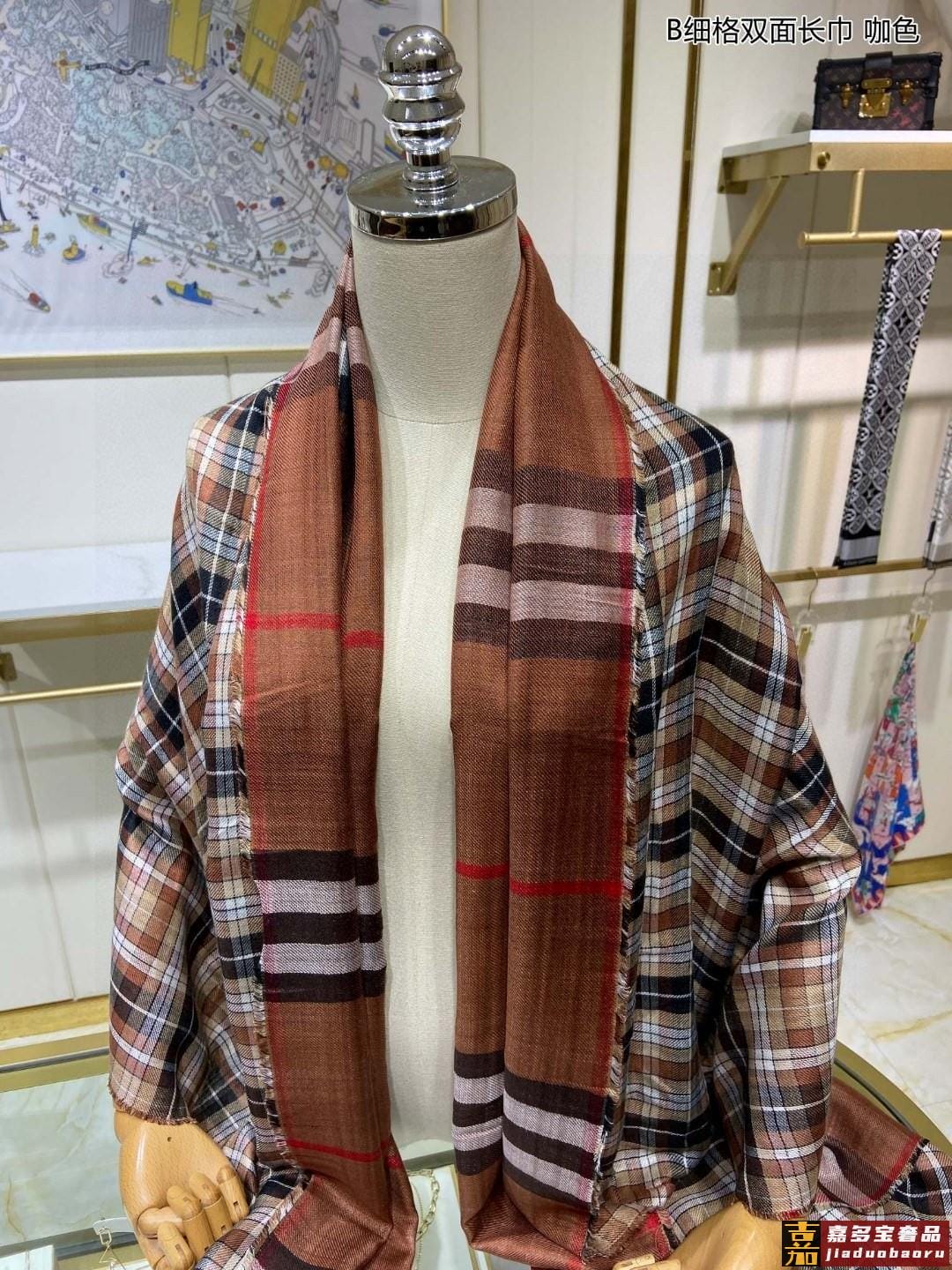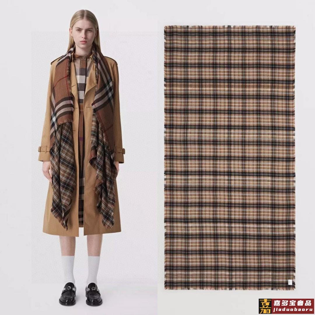 双面格纹围巾咖色羊毛真丝格纹精准有神细节满分经典格纹干练气质