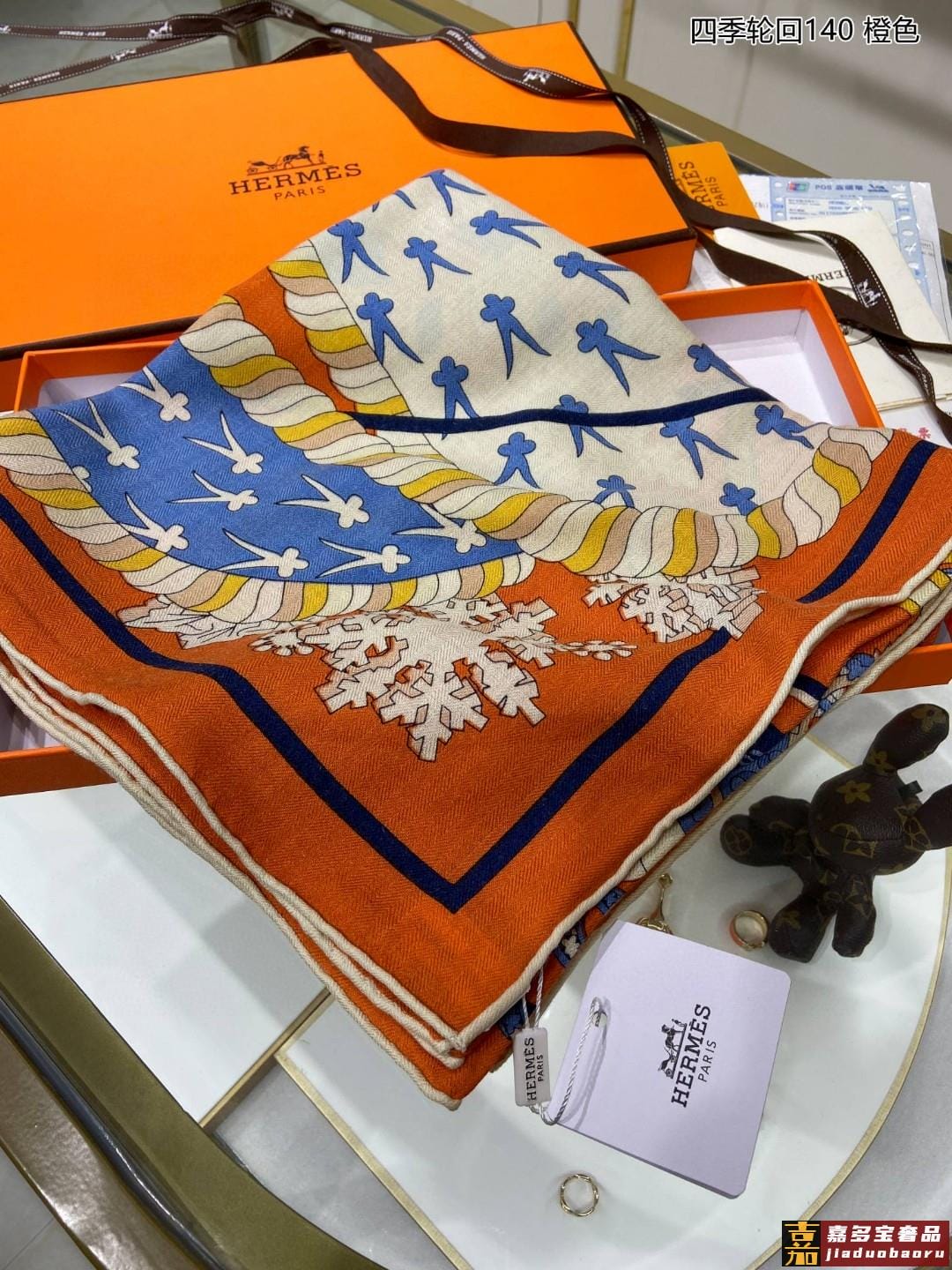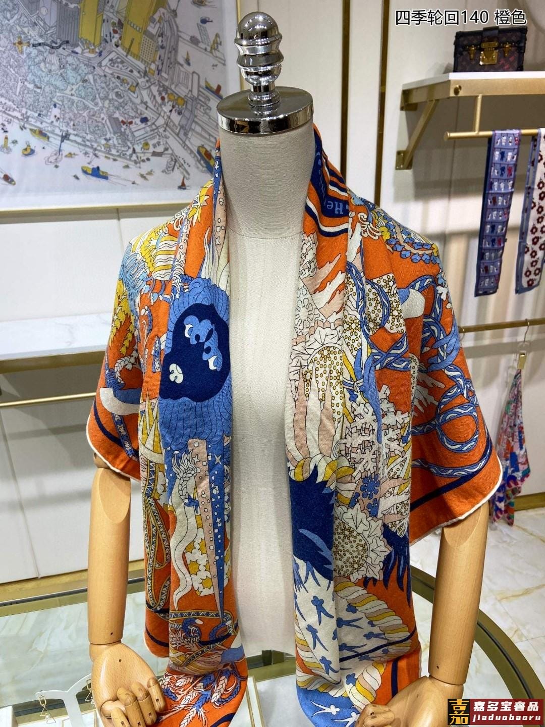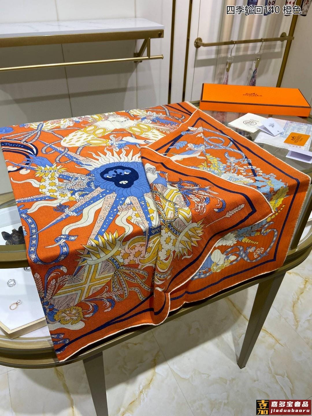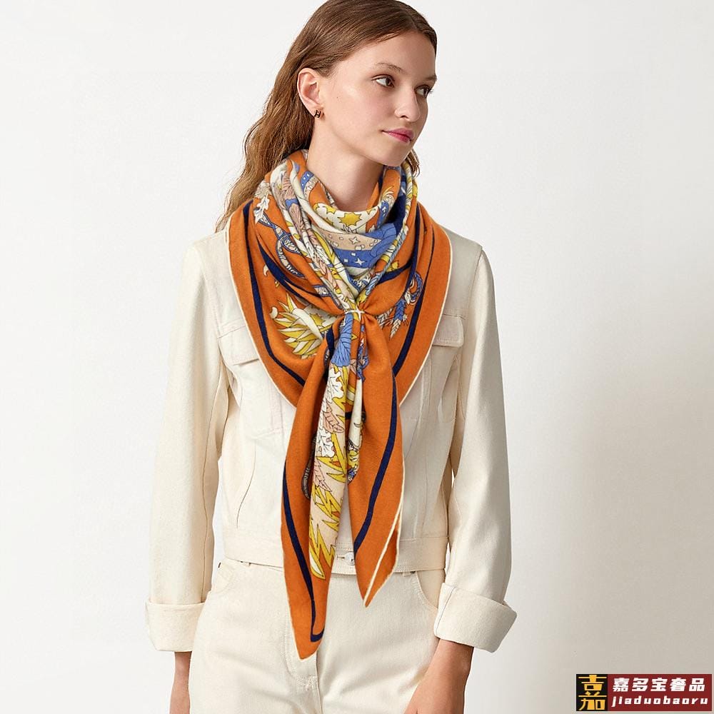 买了都说好看推荐四季轮回羊绒双面印方巾顶级工艺超值爱马仕专柜
