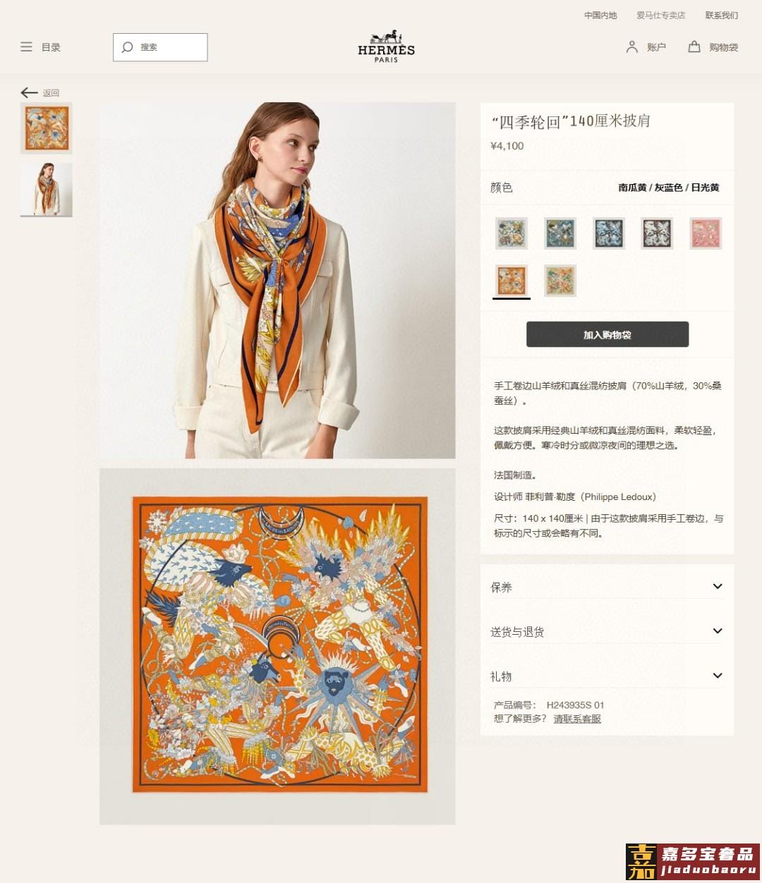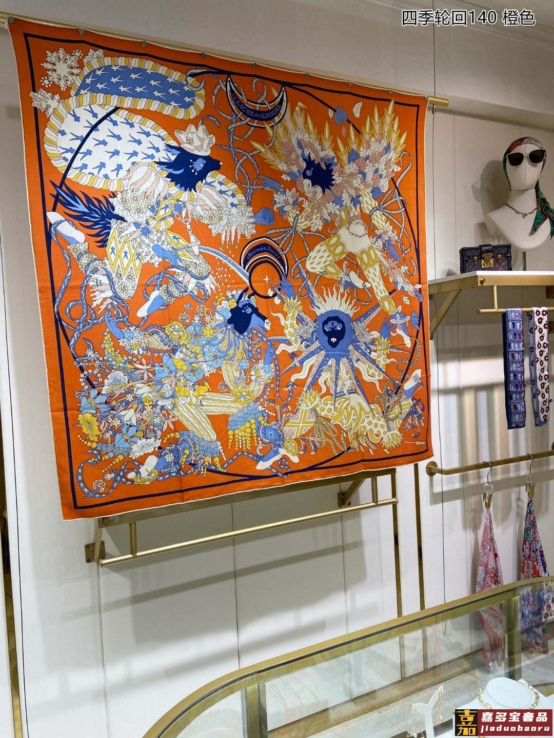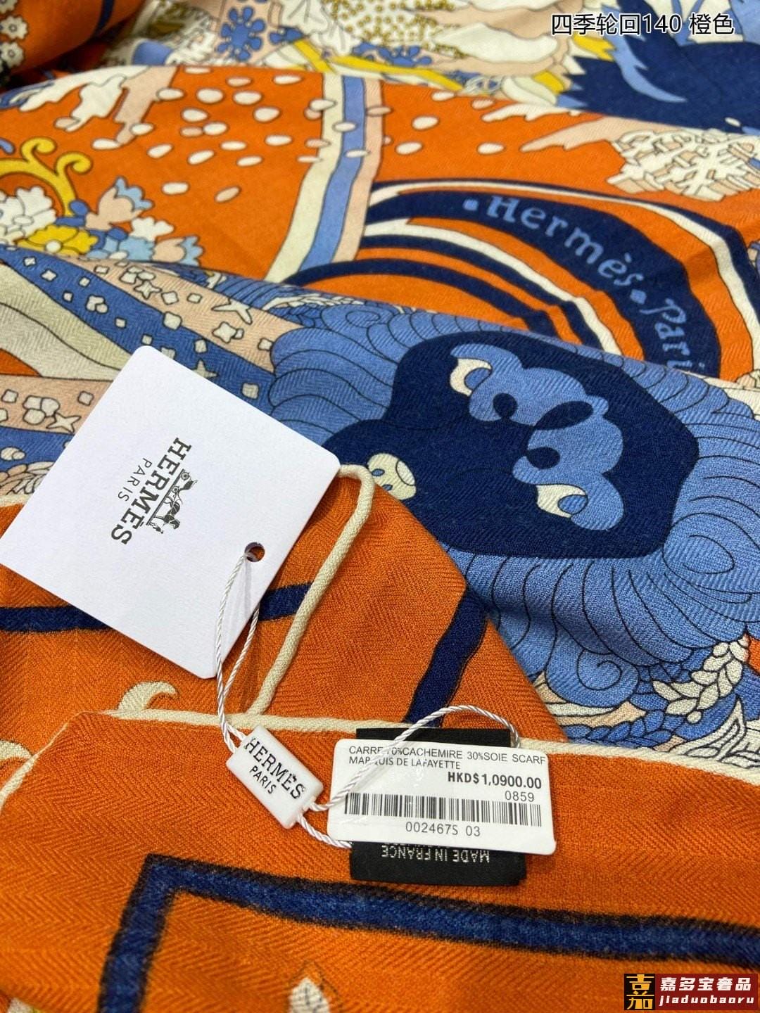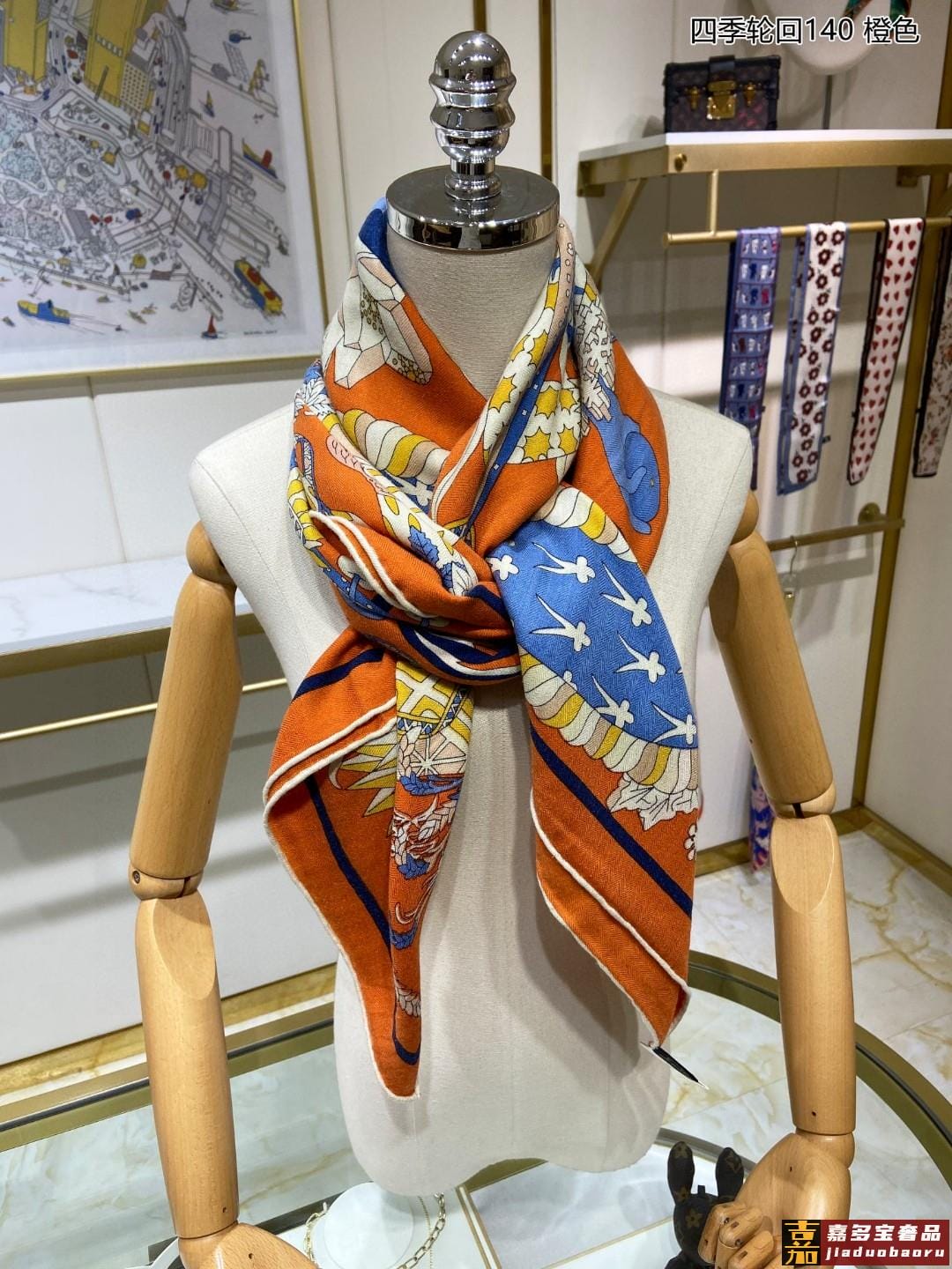 买了都说好看推荐四季轮回羊绒双面印方巾顶级工艺超值爱马仕专柜