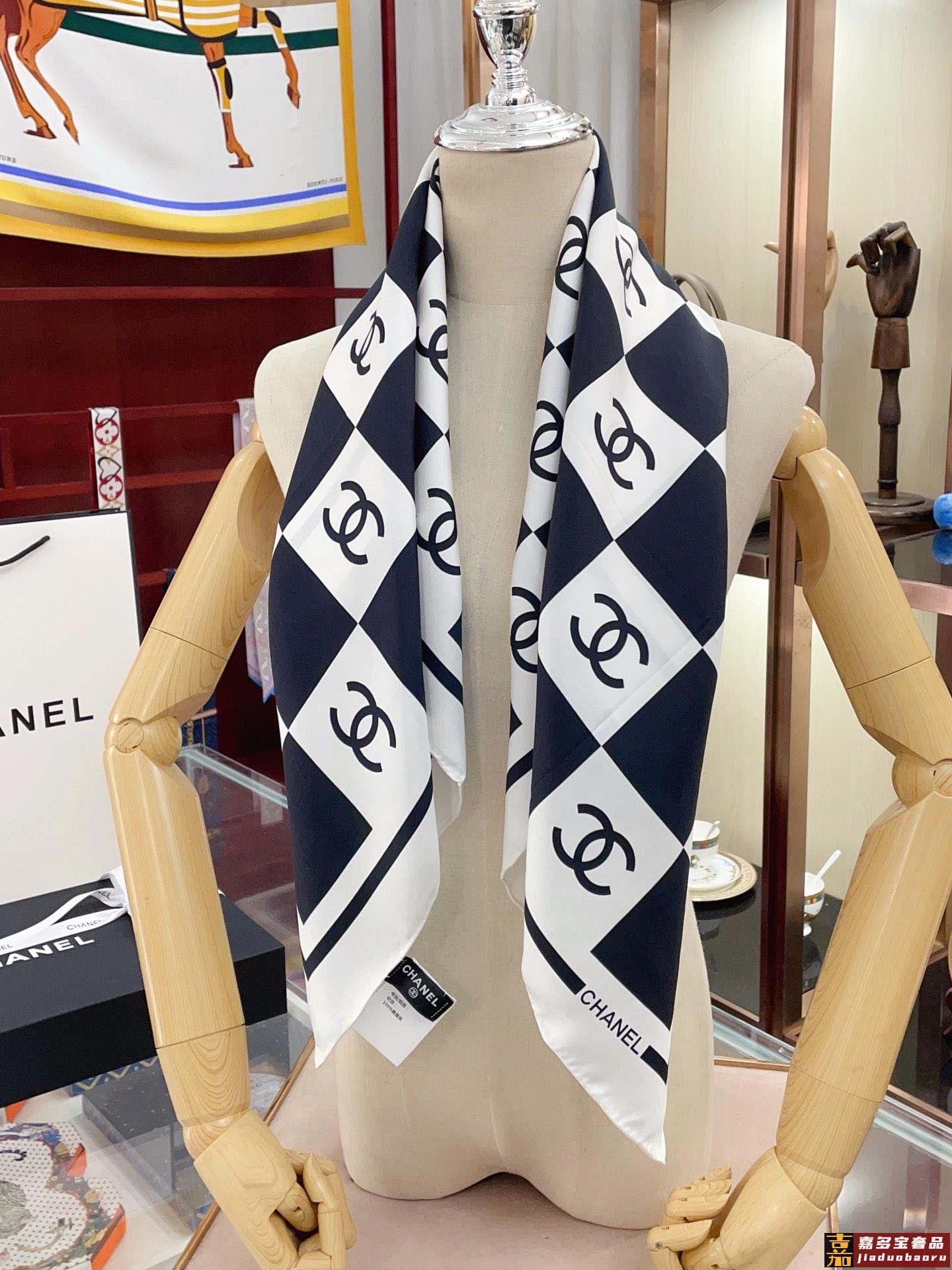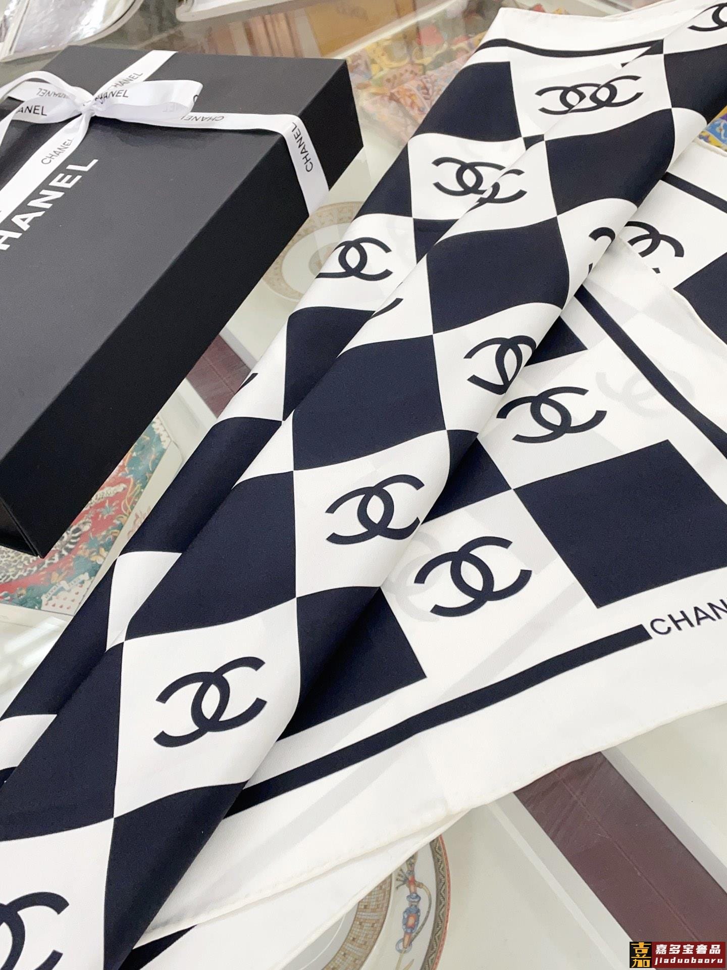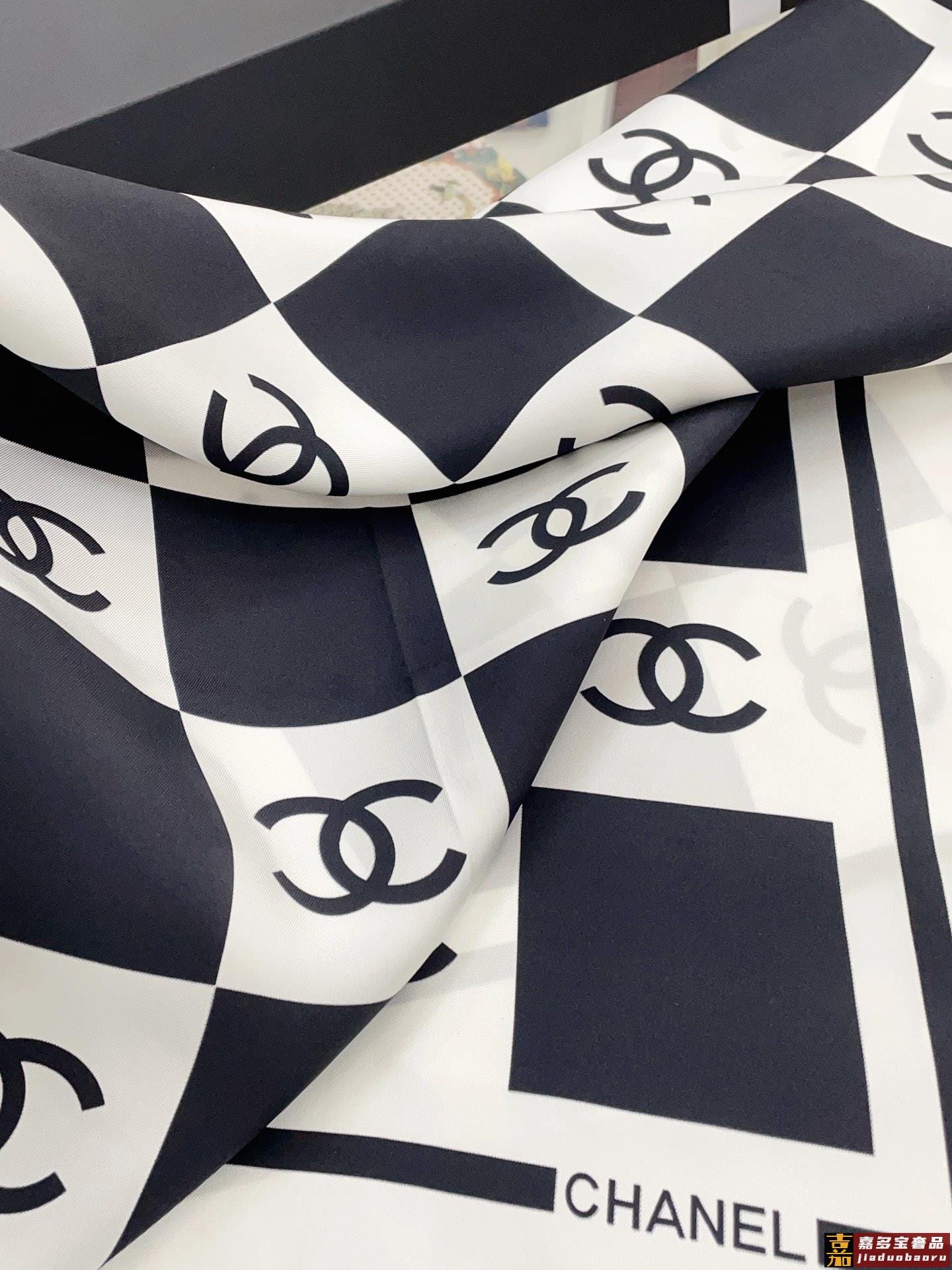 姆米这条黑白配色的棋盘格丝巾好高级香奈儿中最吸睛的丝巾简简单