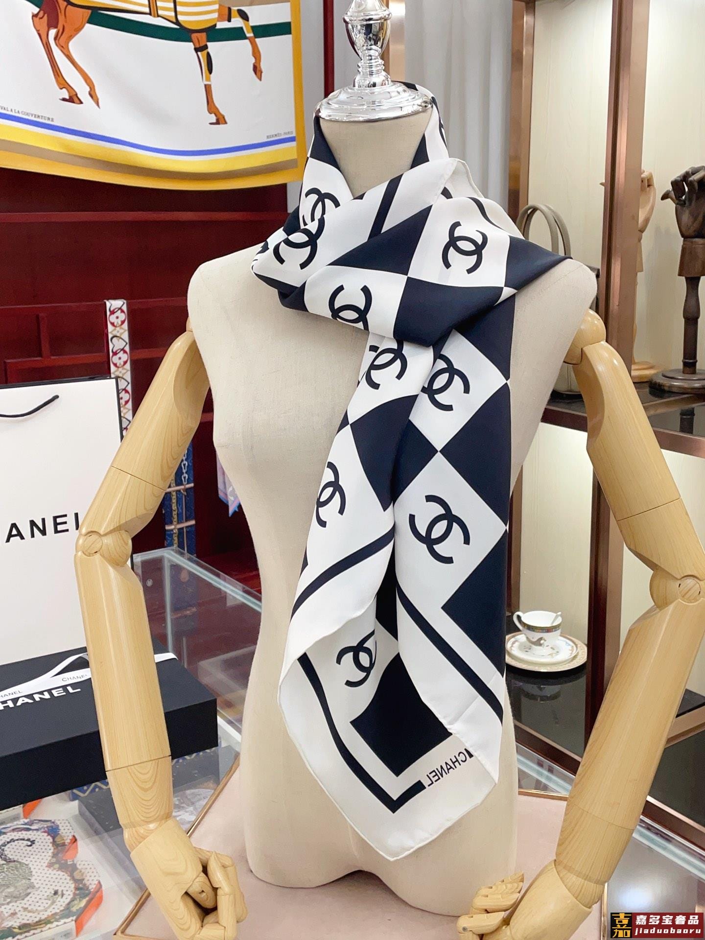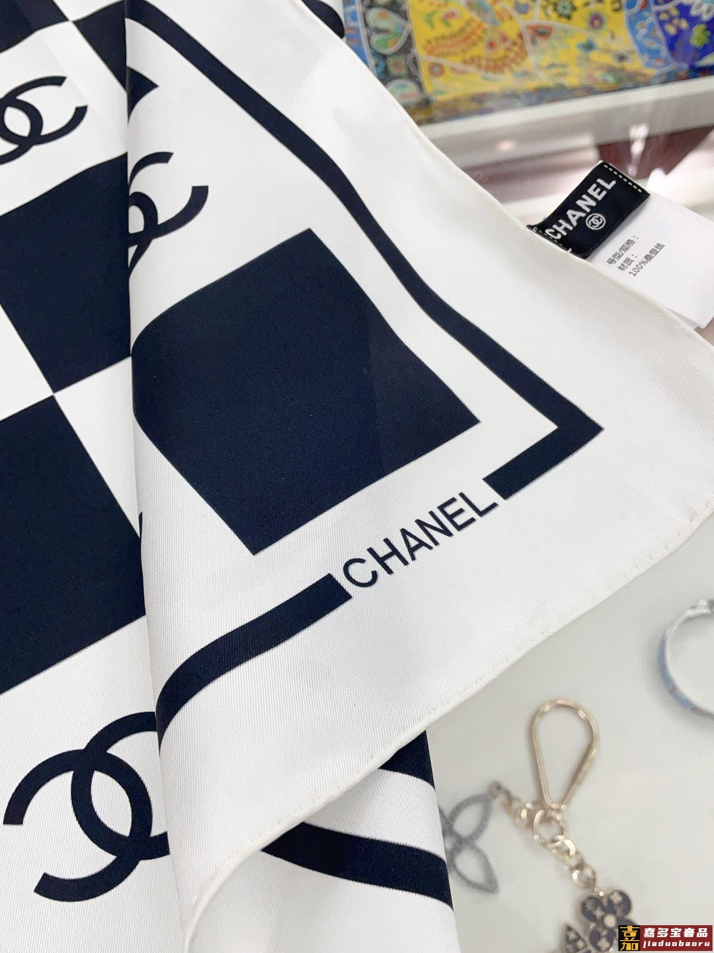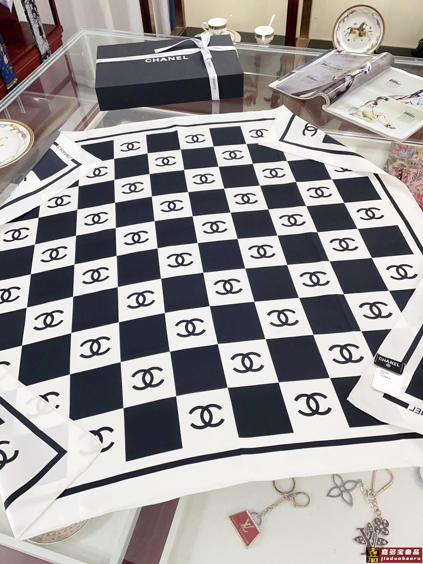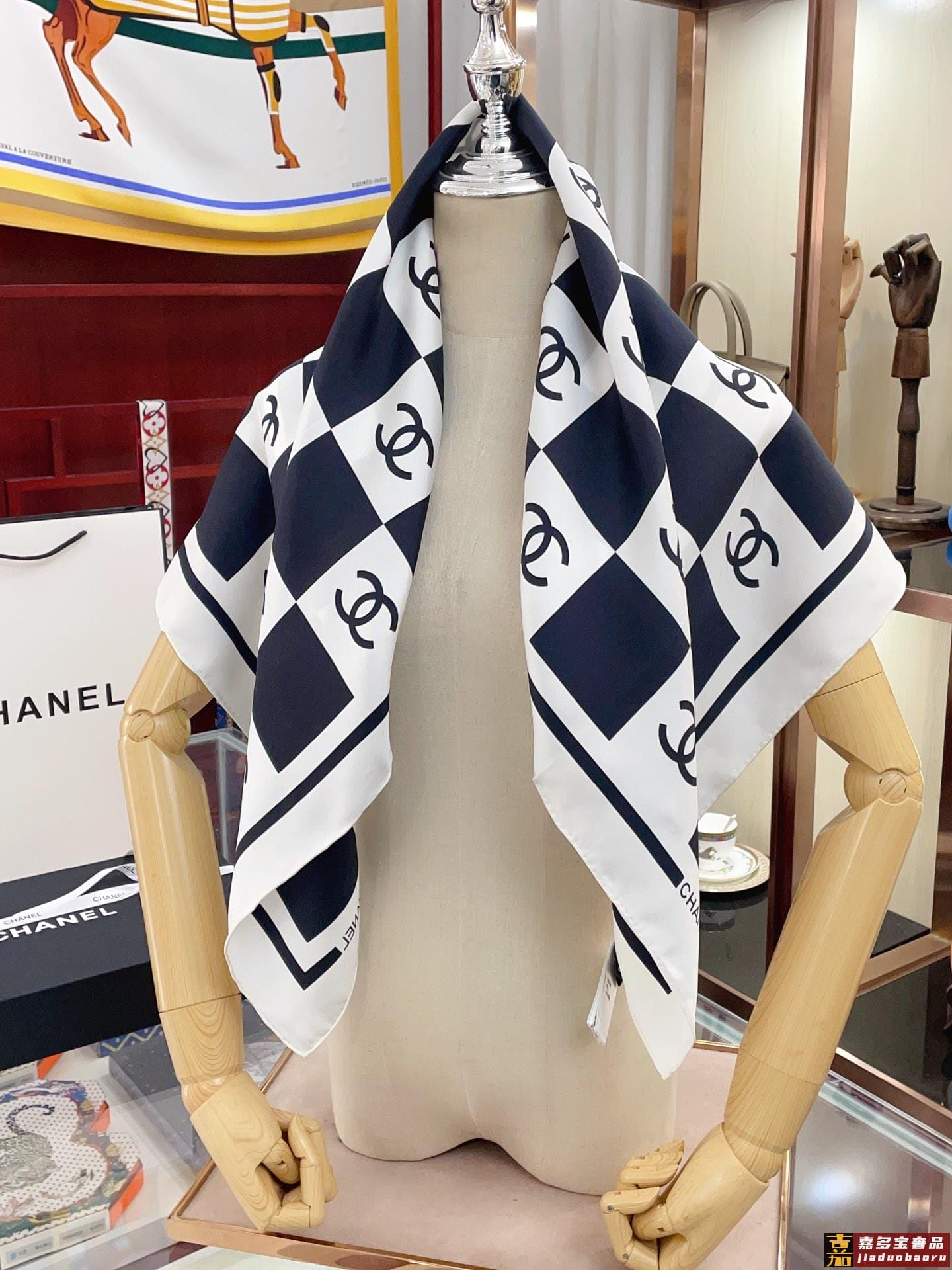 姆米这条黑白配色的棋盘格丝巾好高级香奈儿中最吸睛的丝巾简简单