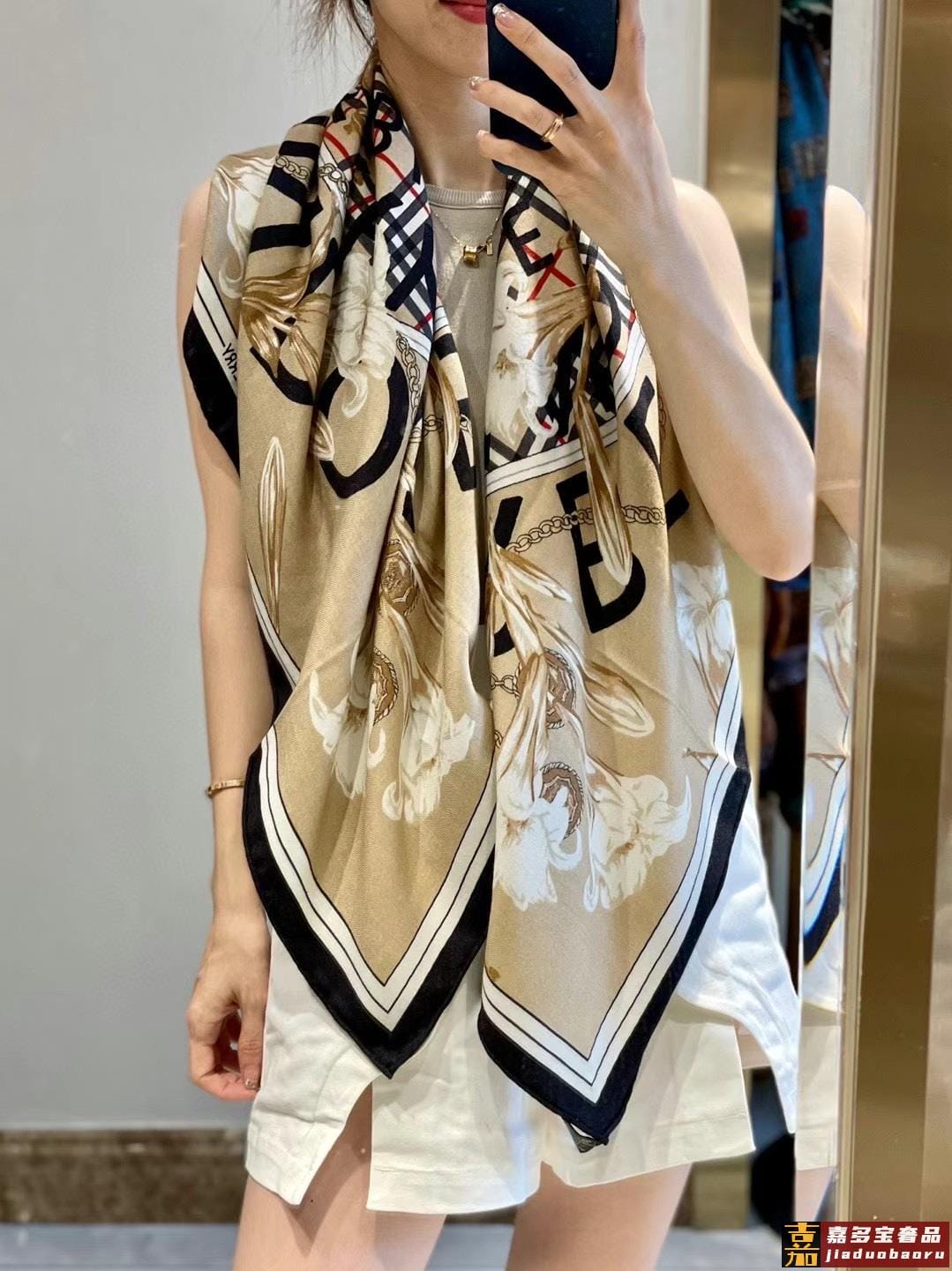 姆米这条黑白配色的棋盘格丝巾好高级香奈儿中最吸睛的丝巾简简单
