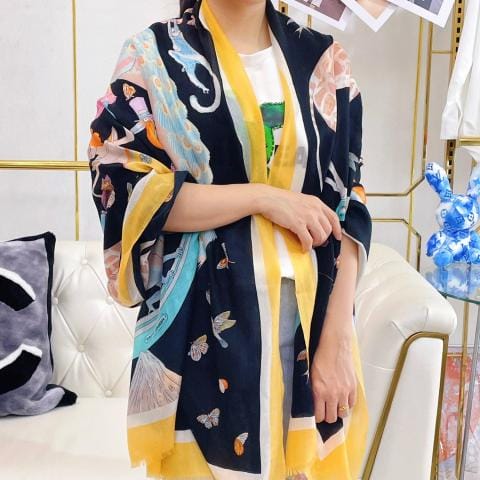 方巾家披肩经典动物图案搭配丝毛混纺的华美质感与成衣和配饰系列