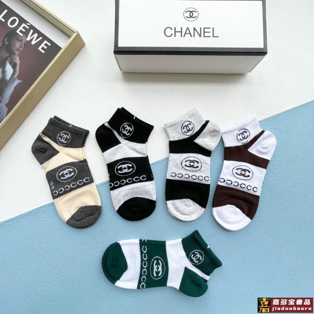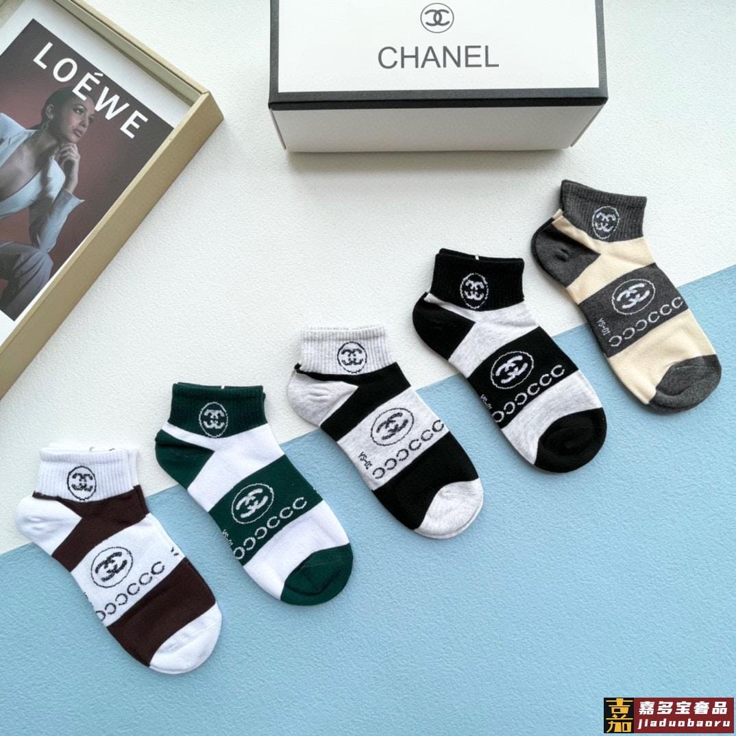 配包装一盒五双香奈儿爆款字母短筒袜高版本好看到爆炸欧美大牌短