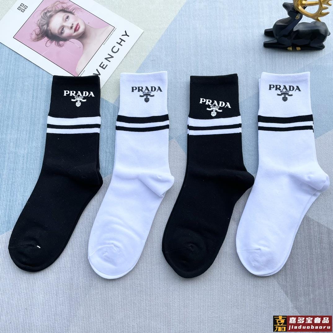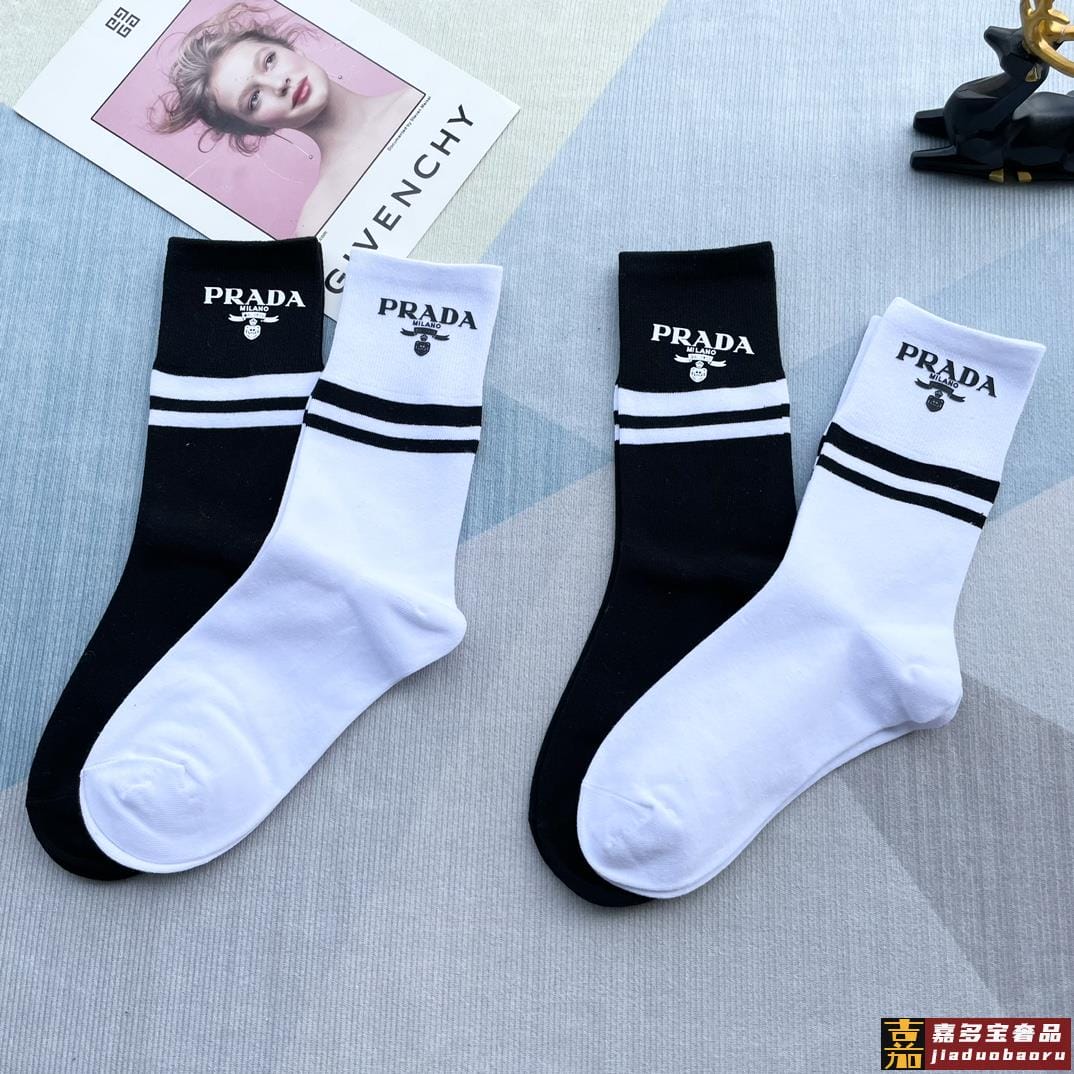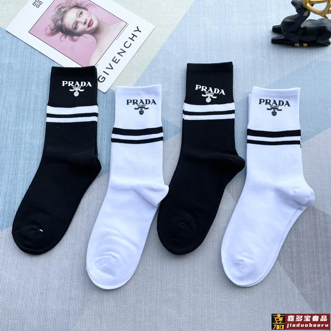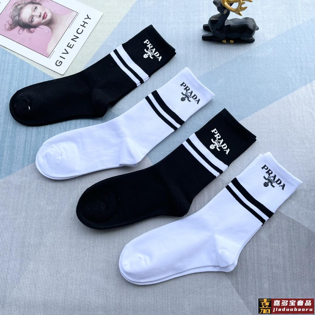 配包装普拉达新款中长款袜子一盒双专柜同步筒袜袜子大牌出街潮人